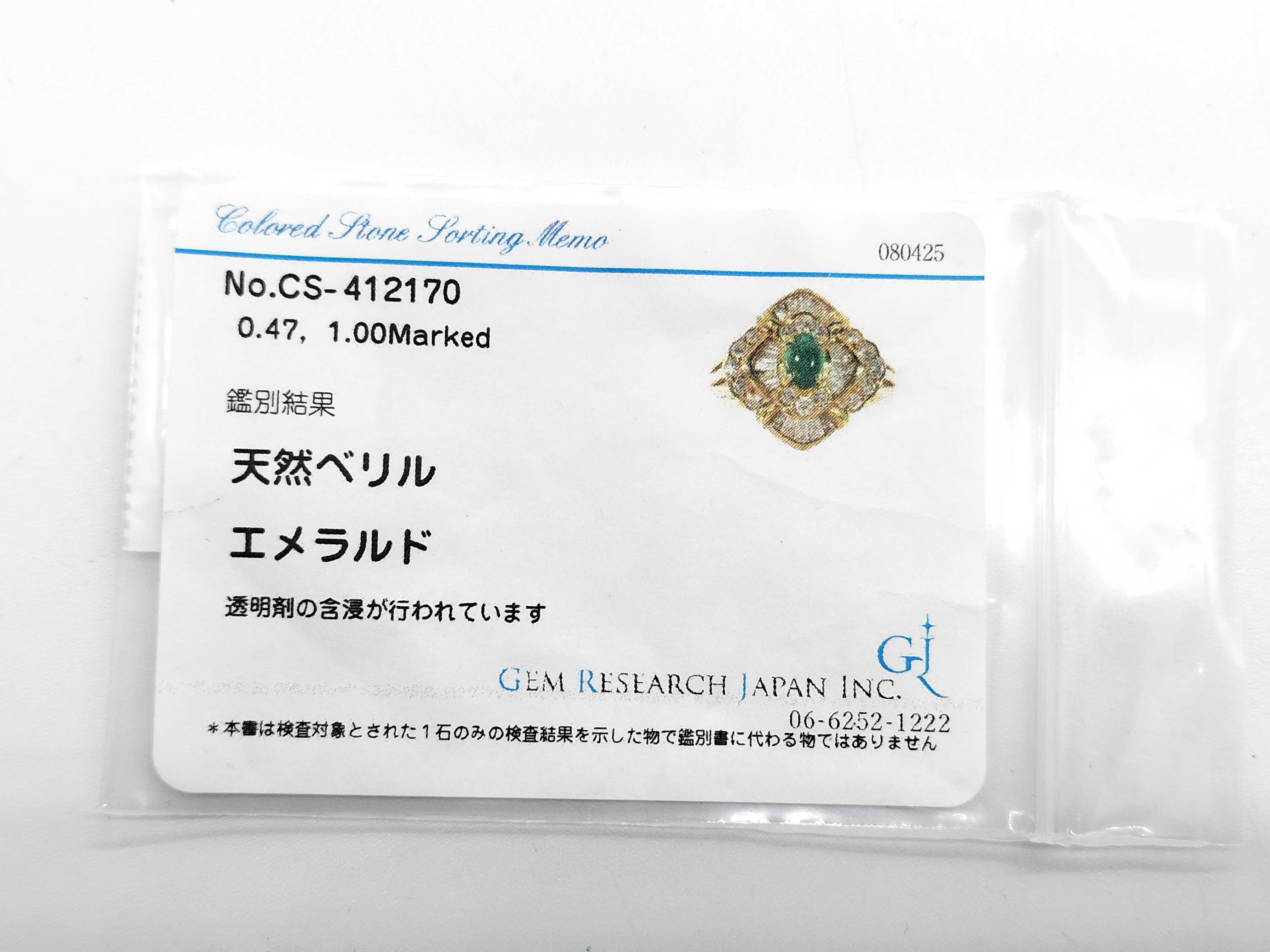 新品仕上げ済み. カボションエメラルド評価 B (GRJソ/面キズあり). ダイヤ評価 B【付属品