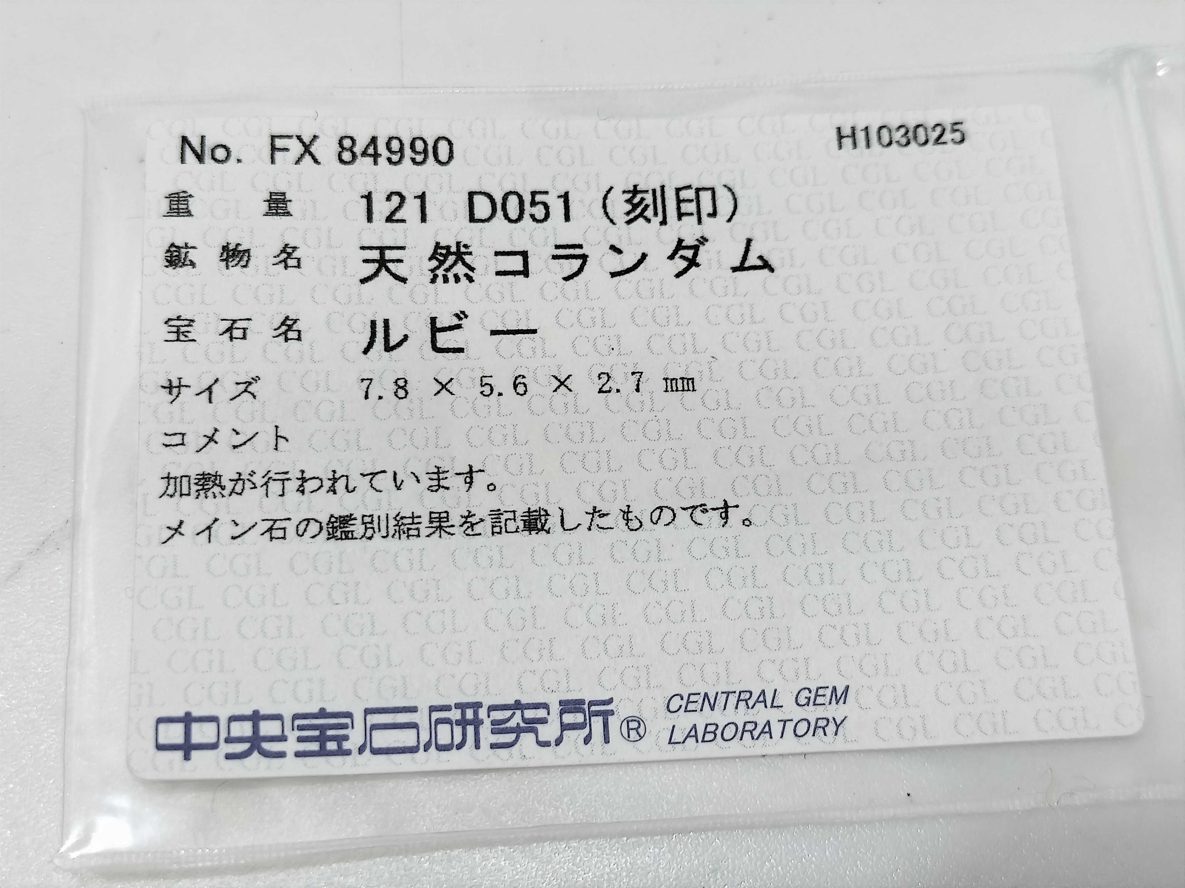 仕上げ済み. ルビー評価⇒【色