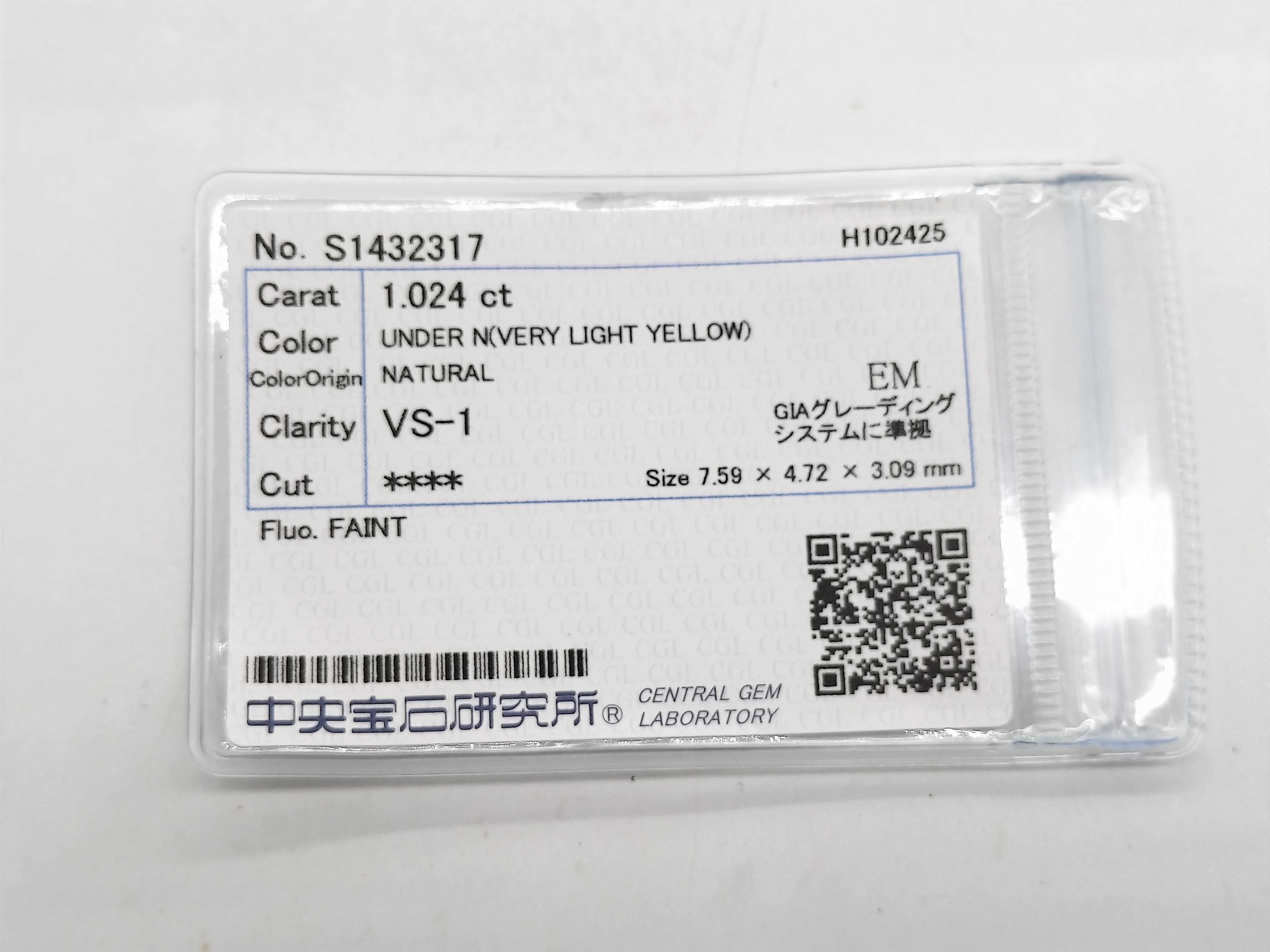 新品仕上げ済み. 主石ダイヤ評価 ⇒UNDER N (VERY LIGHT YELLOW)-VS1-****-FAINT (CGLソ). 脇石ダイヤ評価 AB【付属品