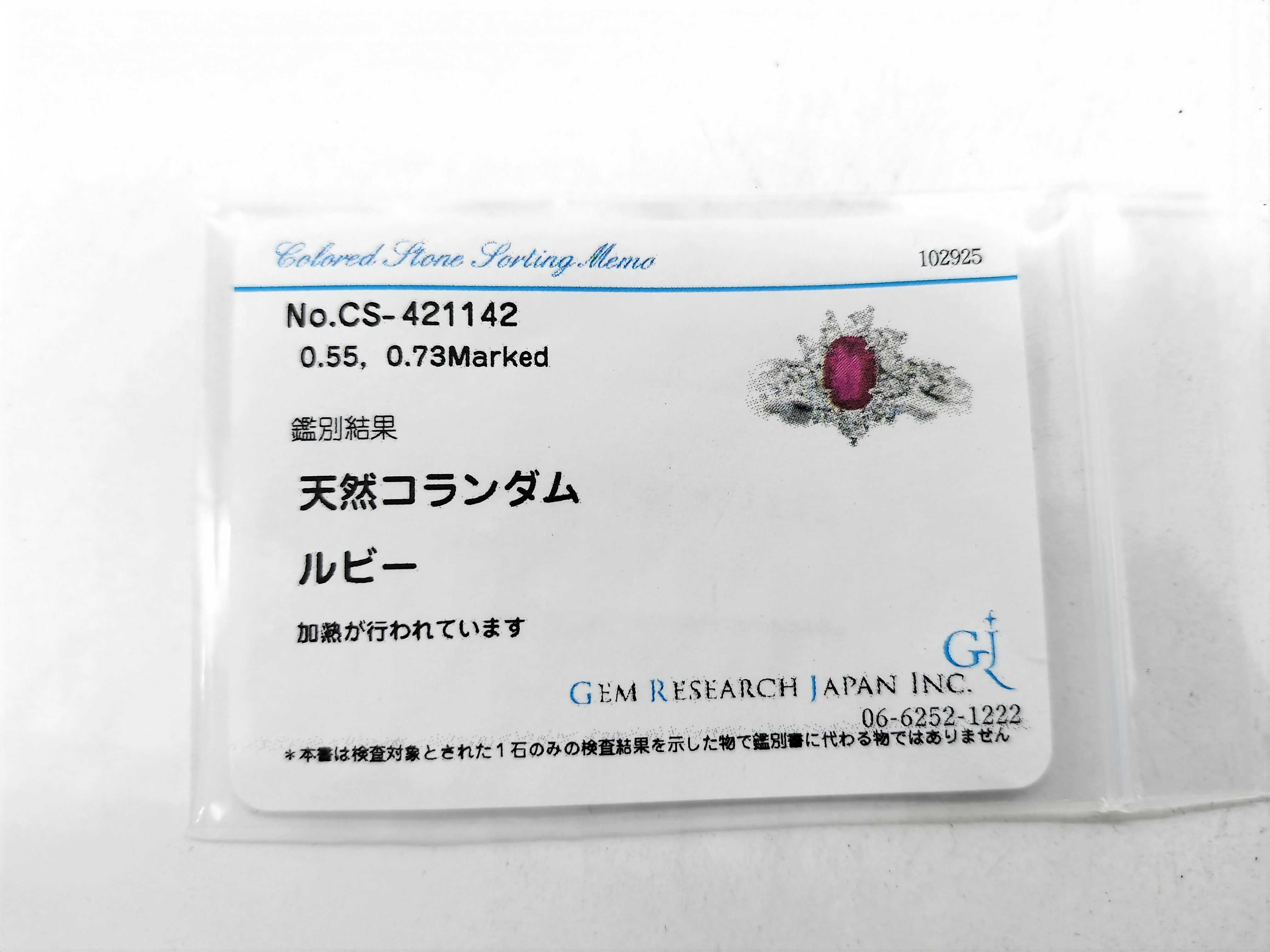 新品仕上げ済み. ルビー評価=B. ダイヤ評価=BC. 【付属品