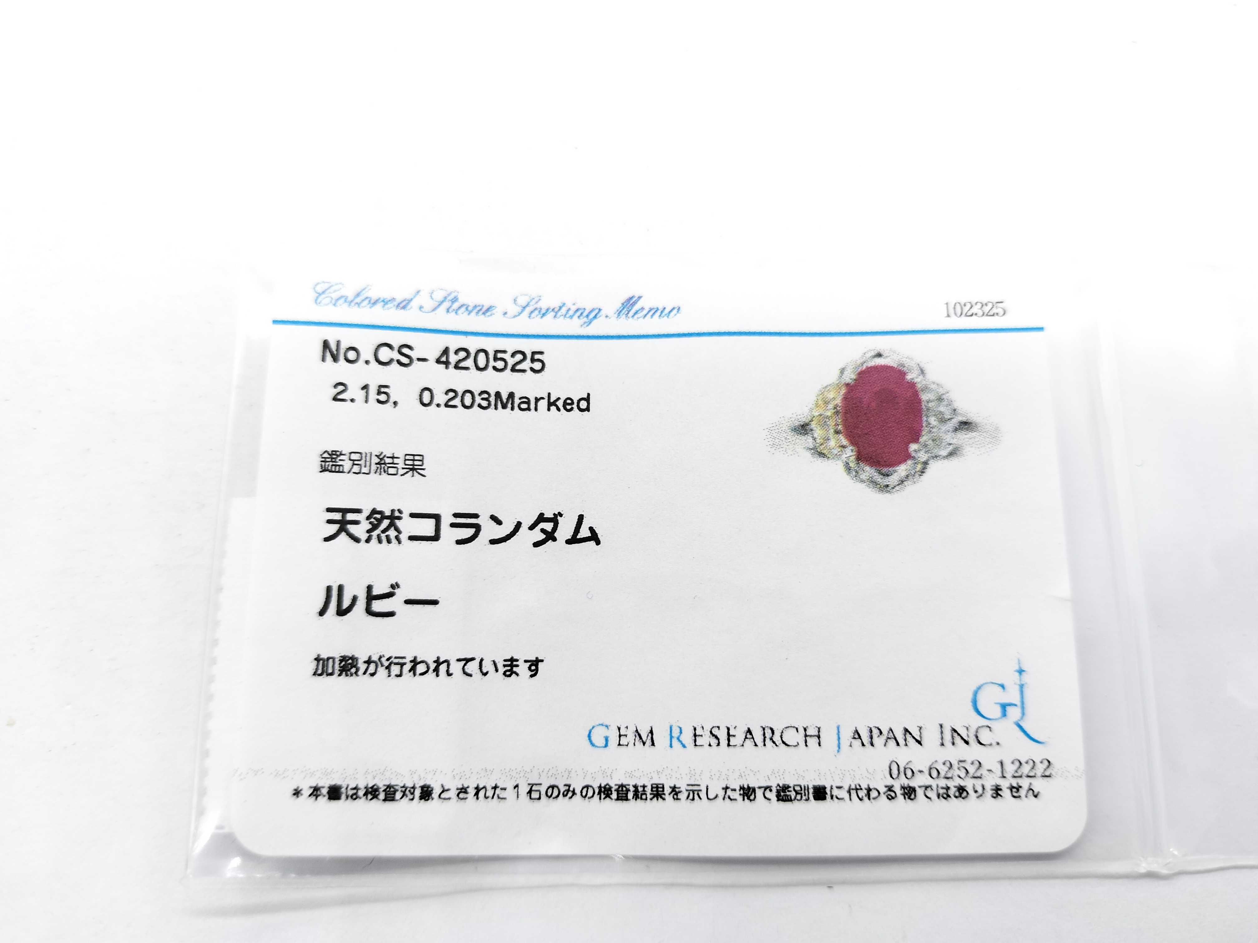 新品仕上げ済み. ルビー評価=【色