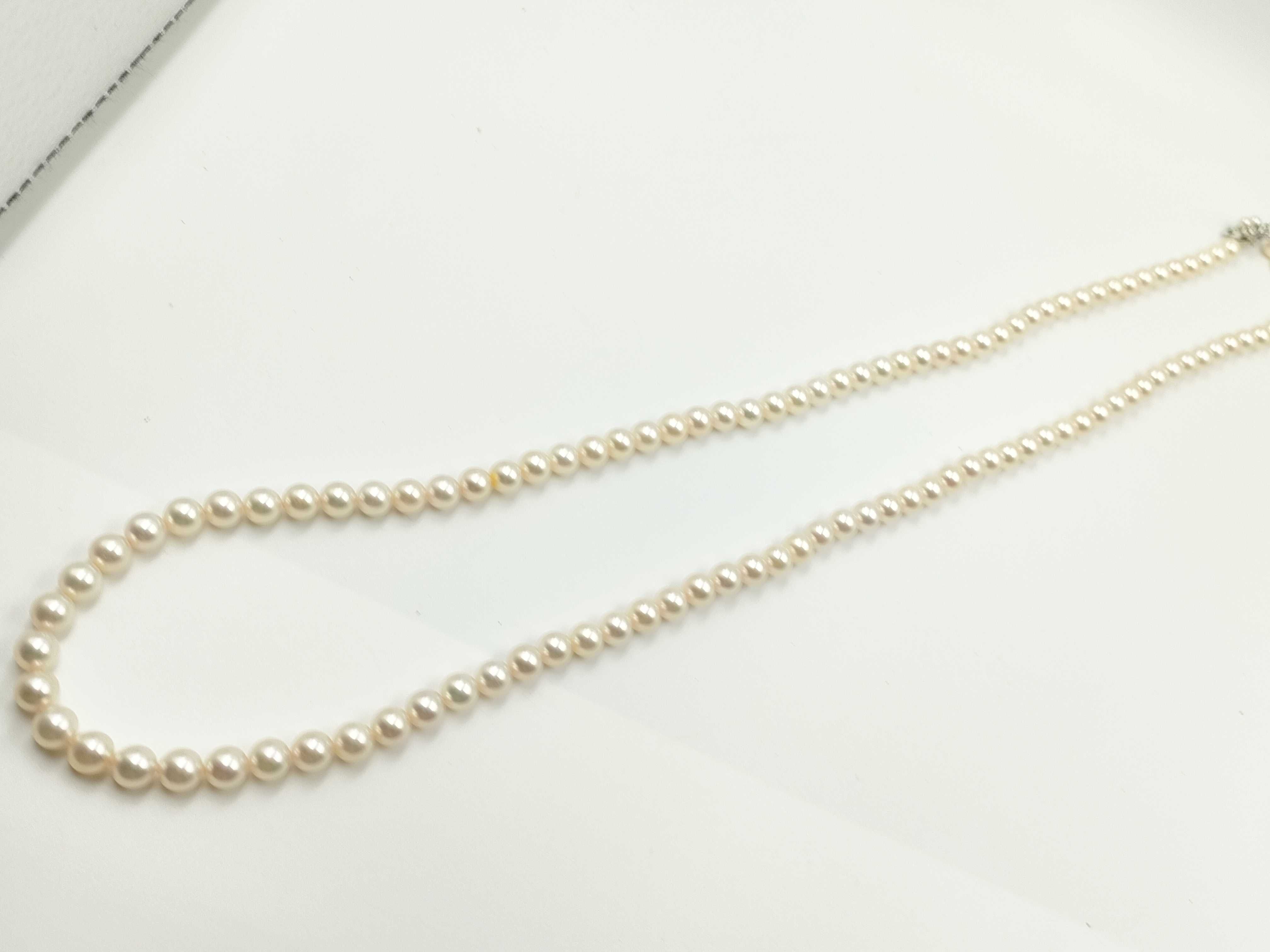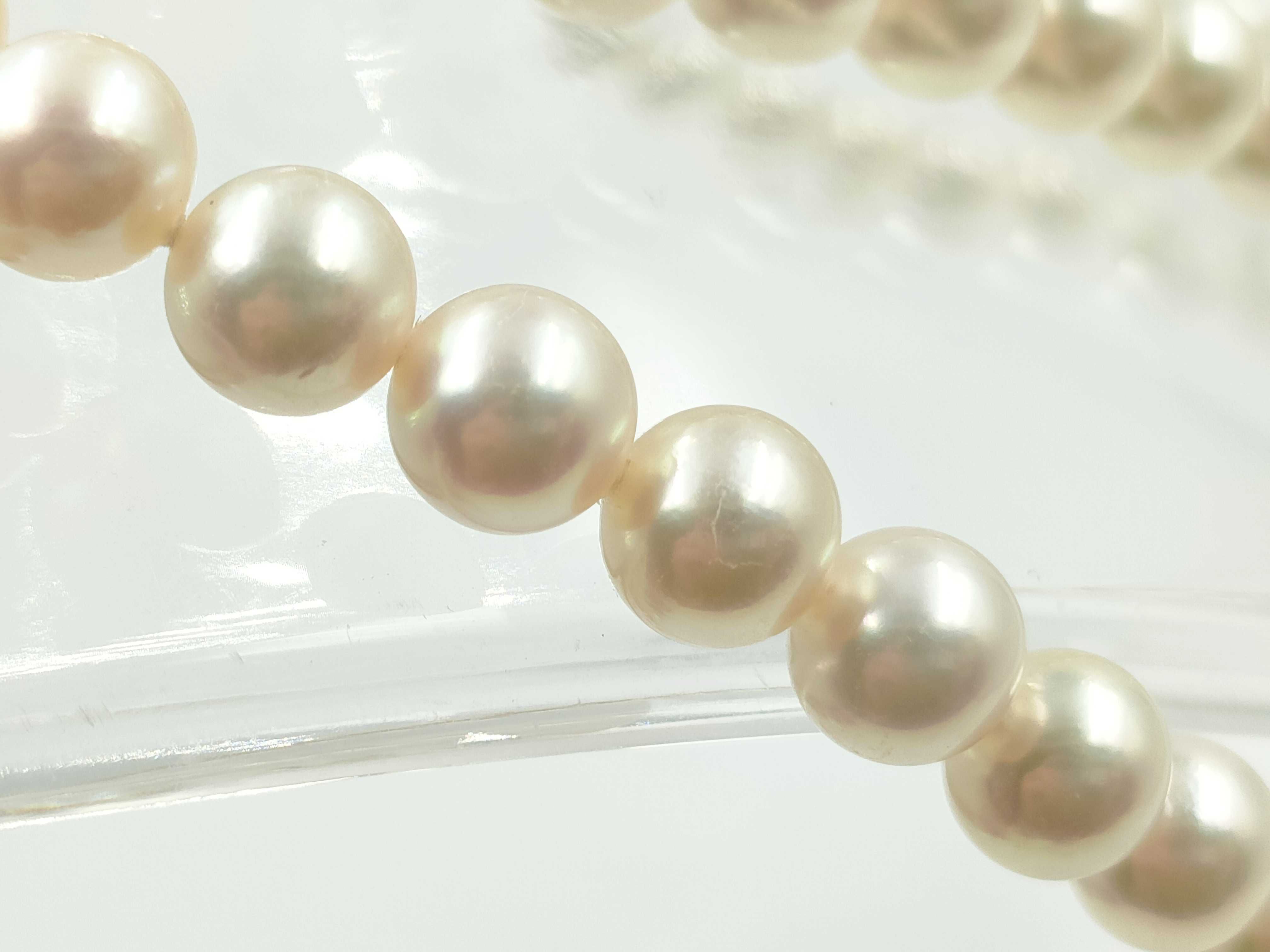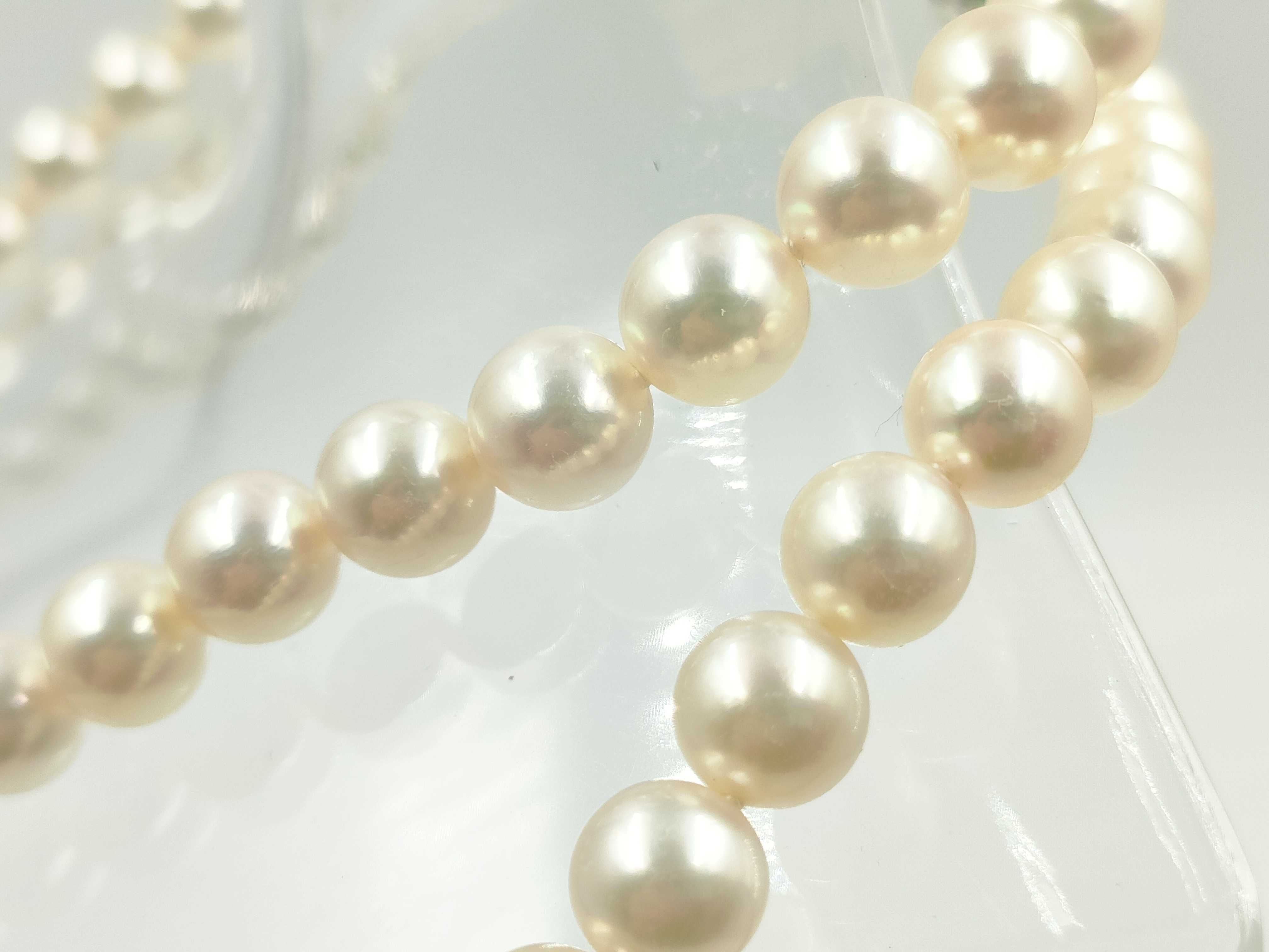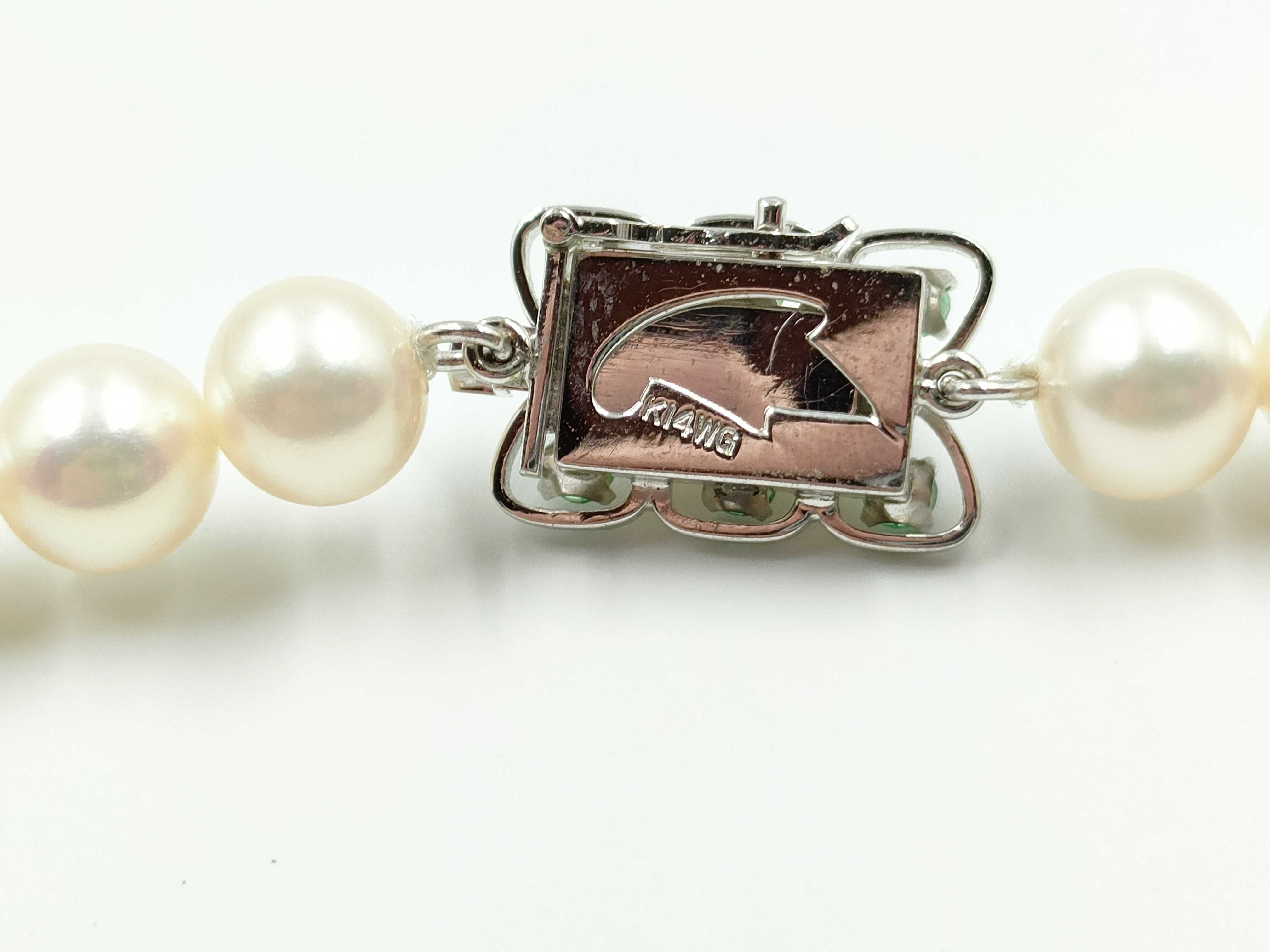 (P_0326)ロング アコヤパール 直径 約7.4-7.7mm エメラルド K14WG 72.5g ネックレス(貴金属)