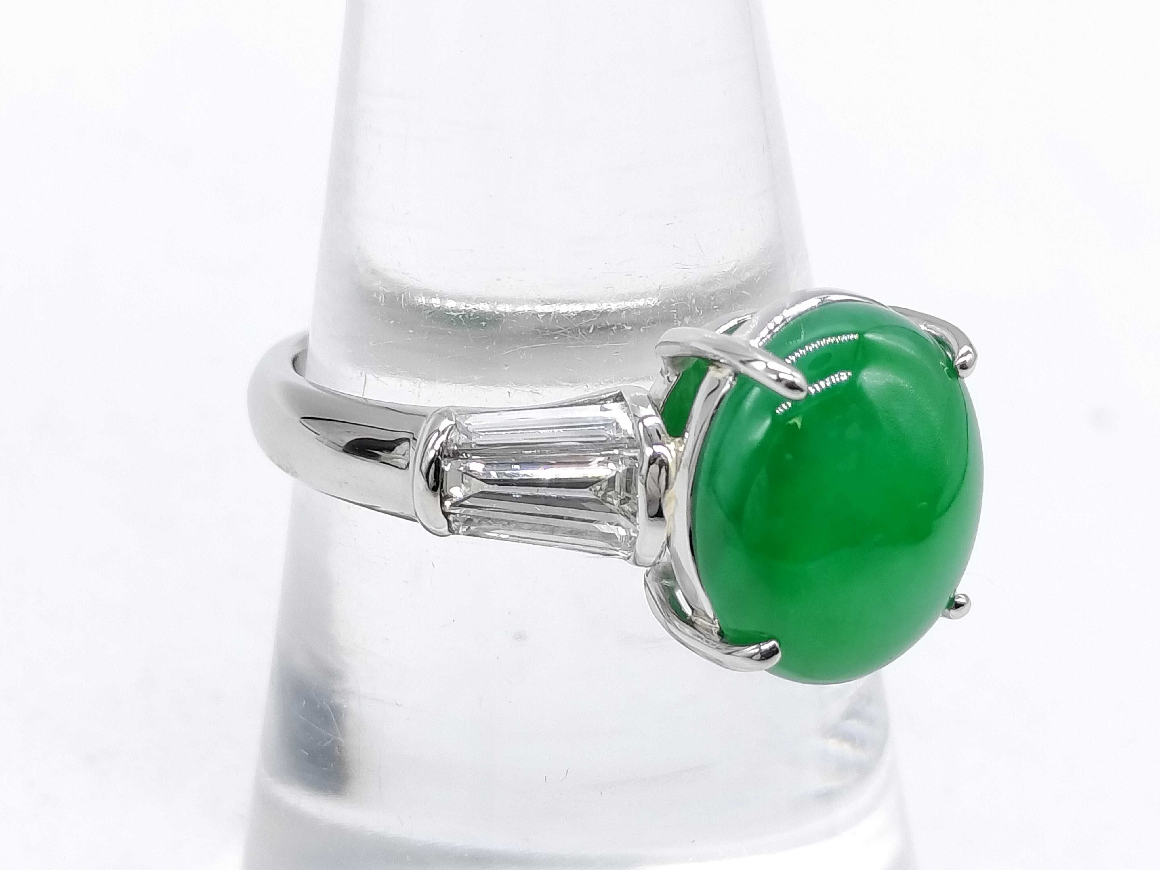 (P_0344)翡翠4.48ct D0.647ct Pt900 6.4g リング(貴金属)