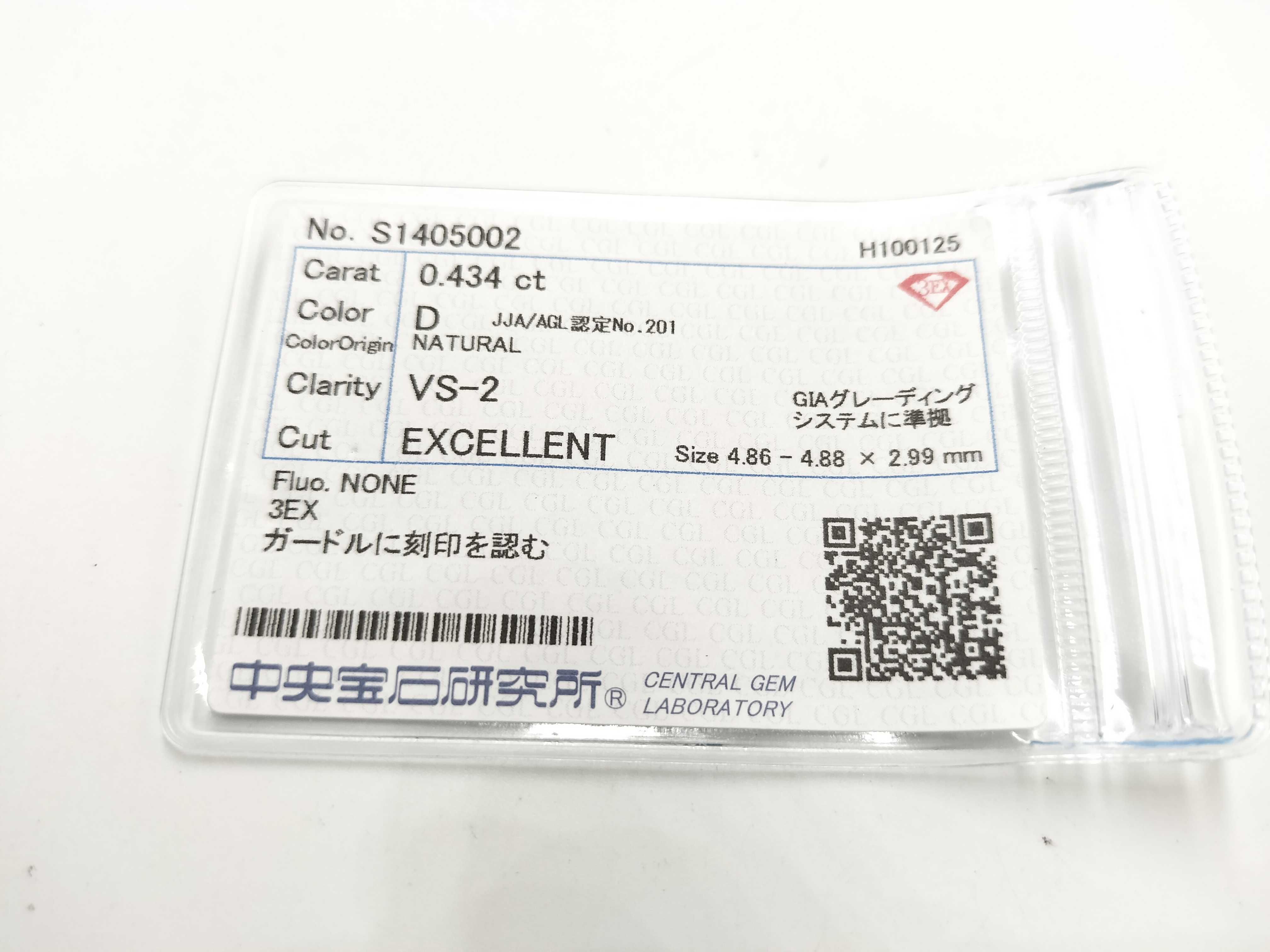 新品仕上げ済み. ダイヤ評価=D-VS2-3EX-NONE(CGLソ). 脇石ダイヤ評価=AB. 1279820刻印あり. 【付属品