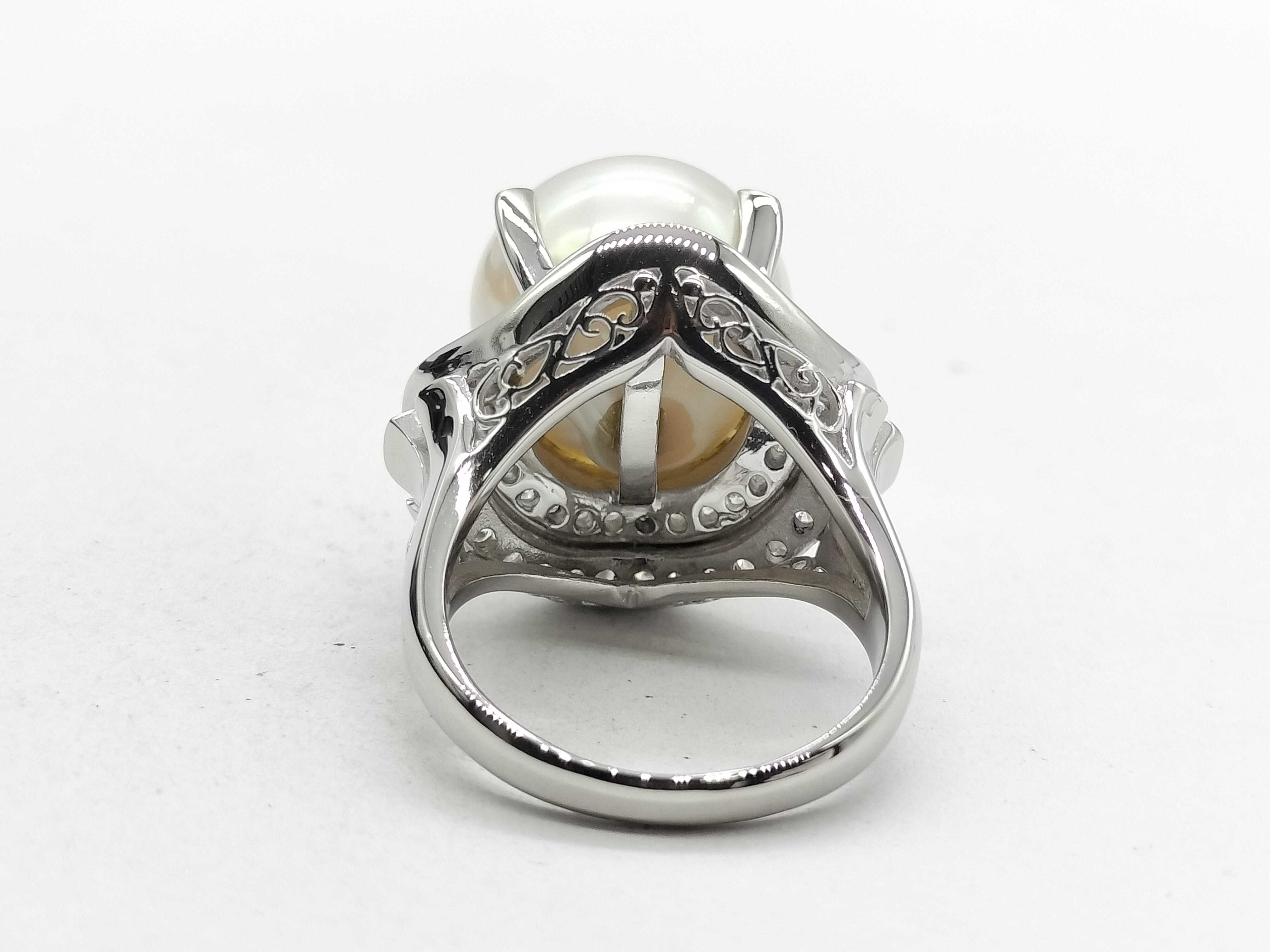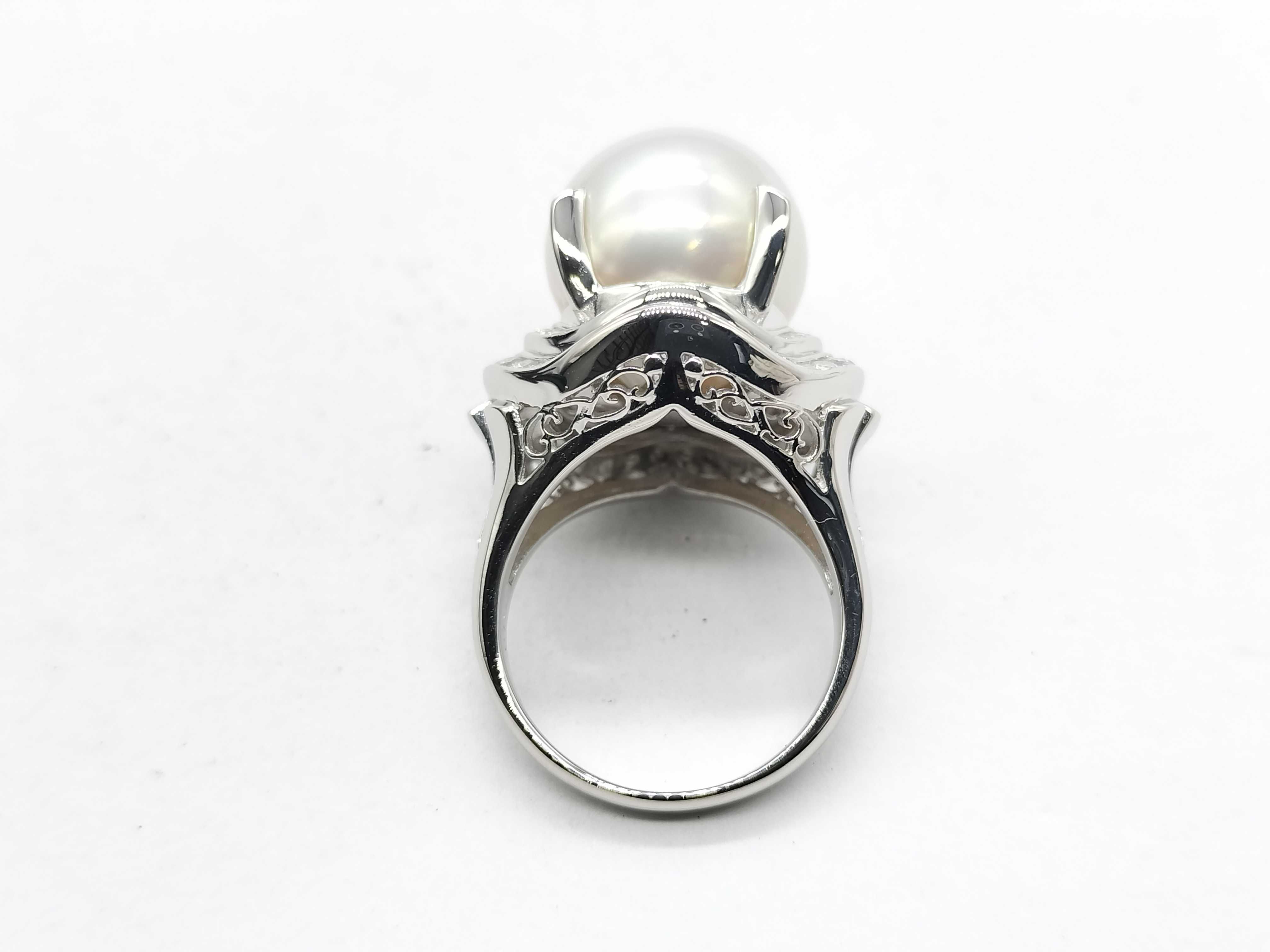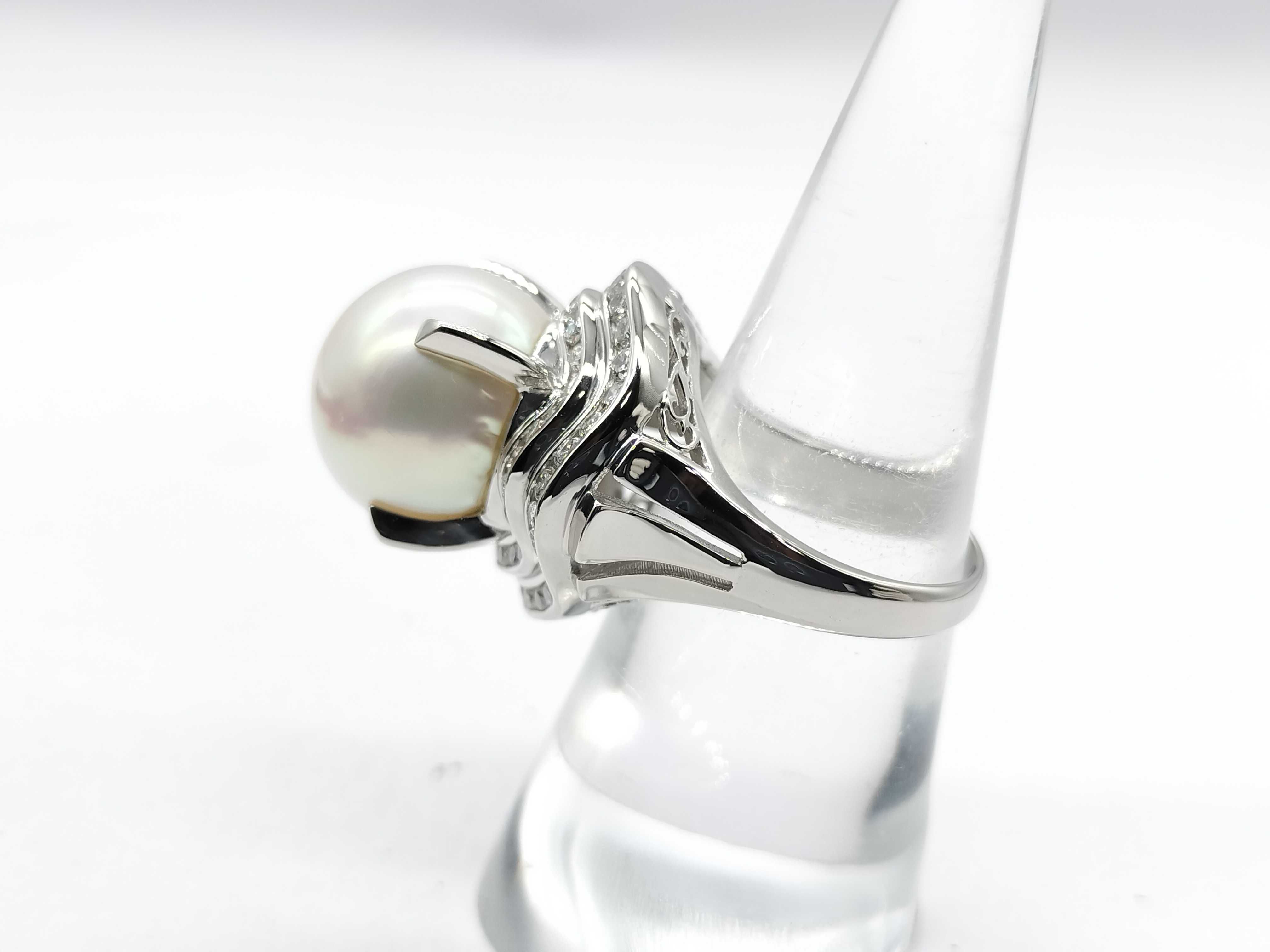 (P_0444)南洋セミラウンドパール 直径 約14.9mm D1.10ct Pt900 21.9g リング(貴金属)