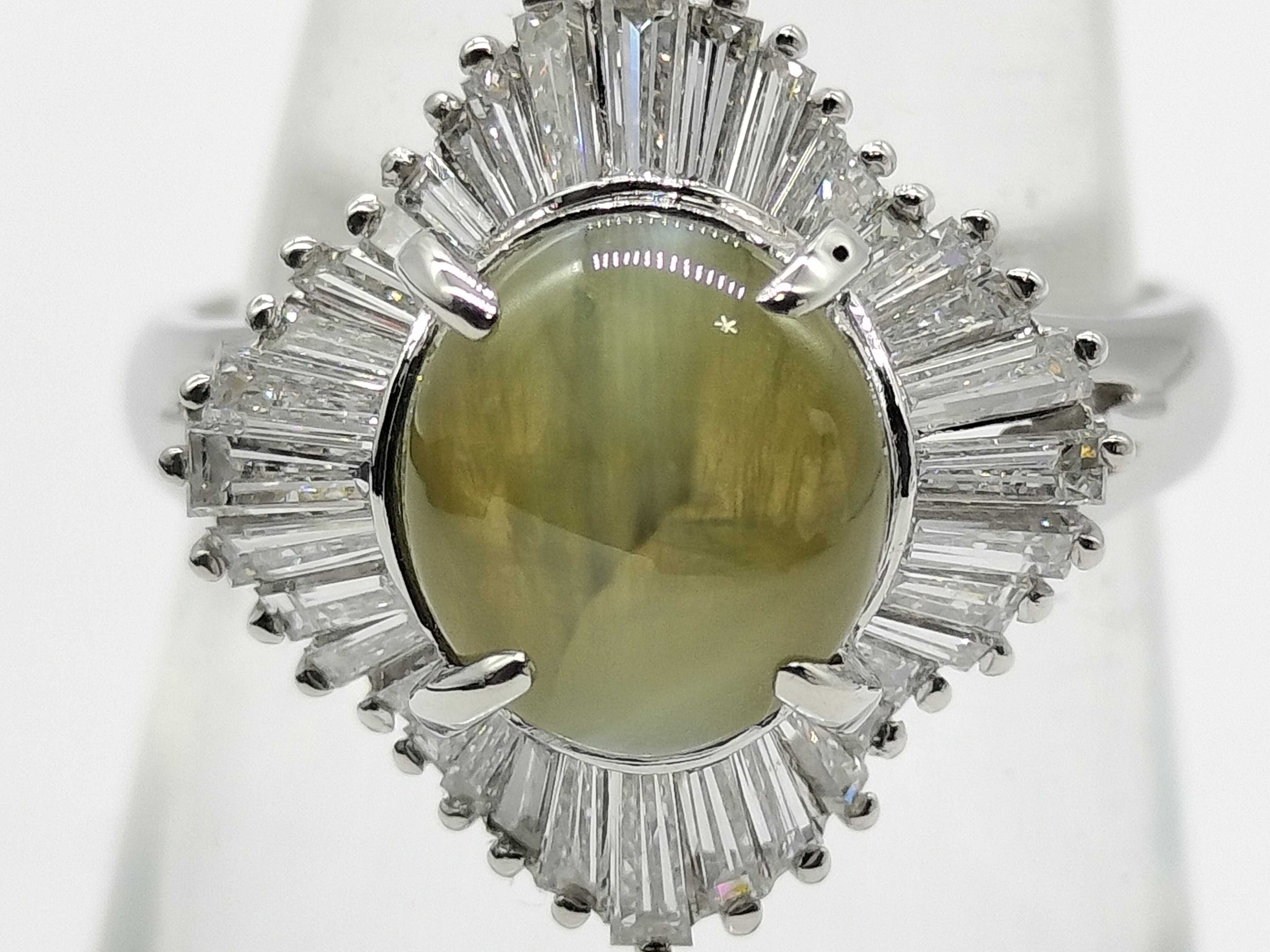 (P_0459)クリソベリルキャッツアイ2.41ct D0.82ct Pt900 7.2g リング(貴金属)