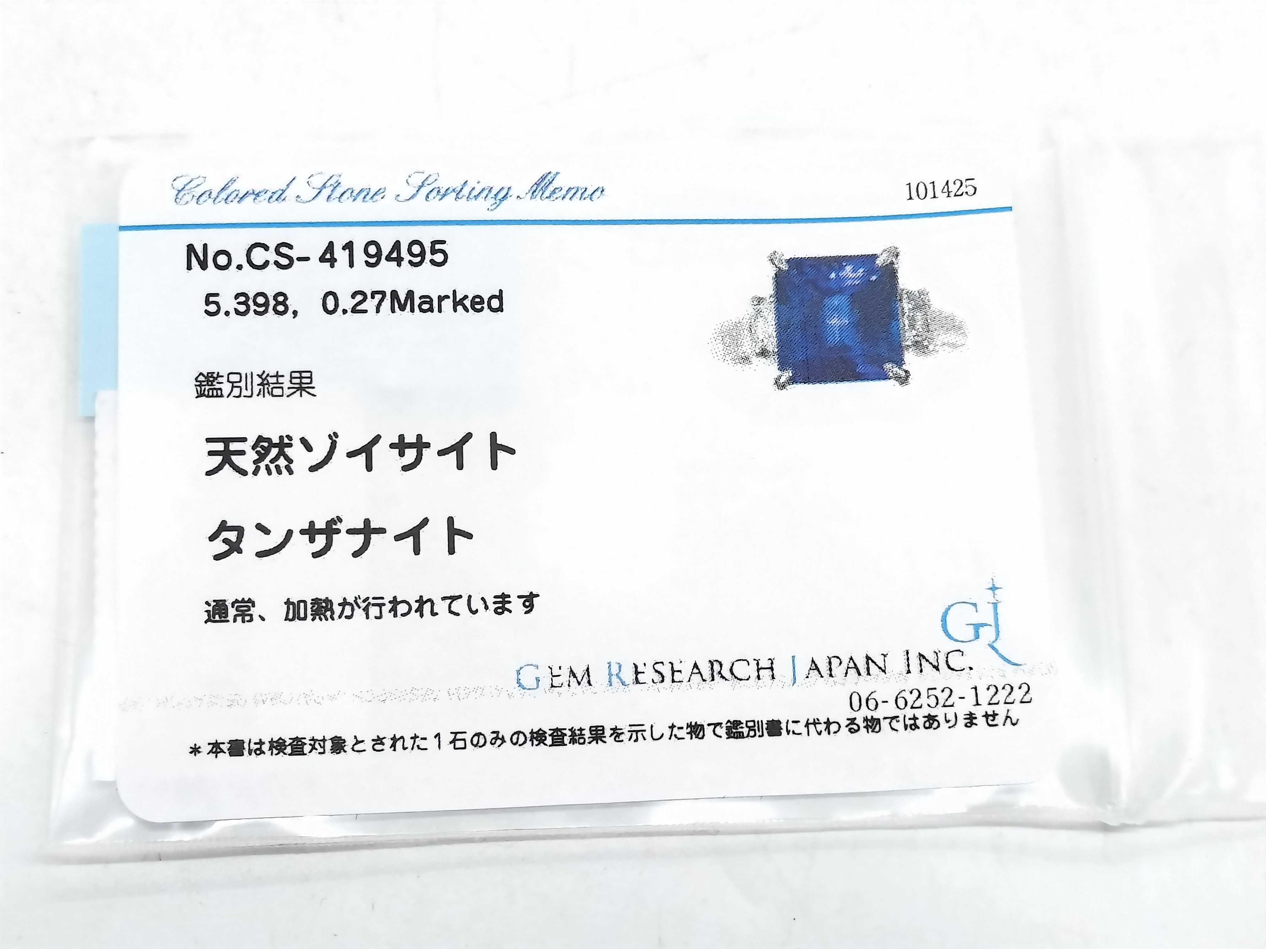 新品仕上げ済み. タンザナイト評価= 【色