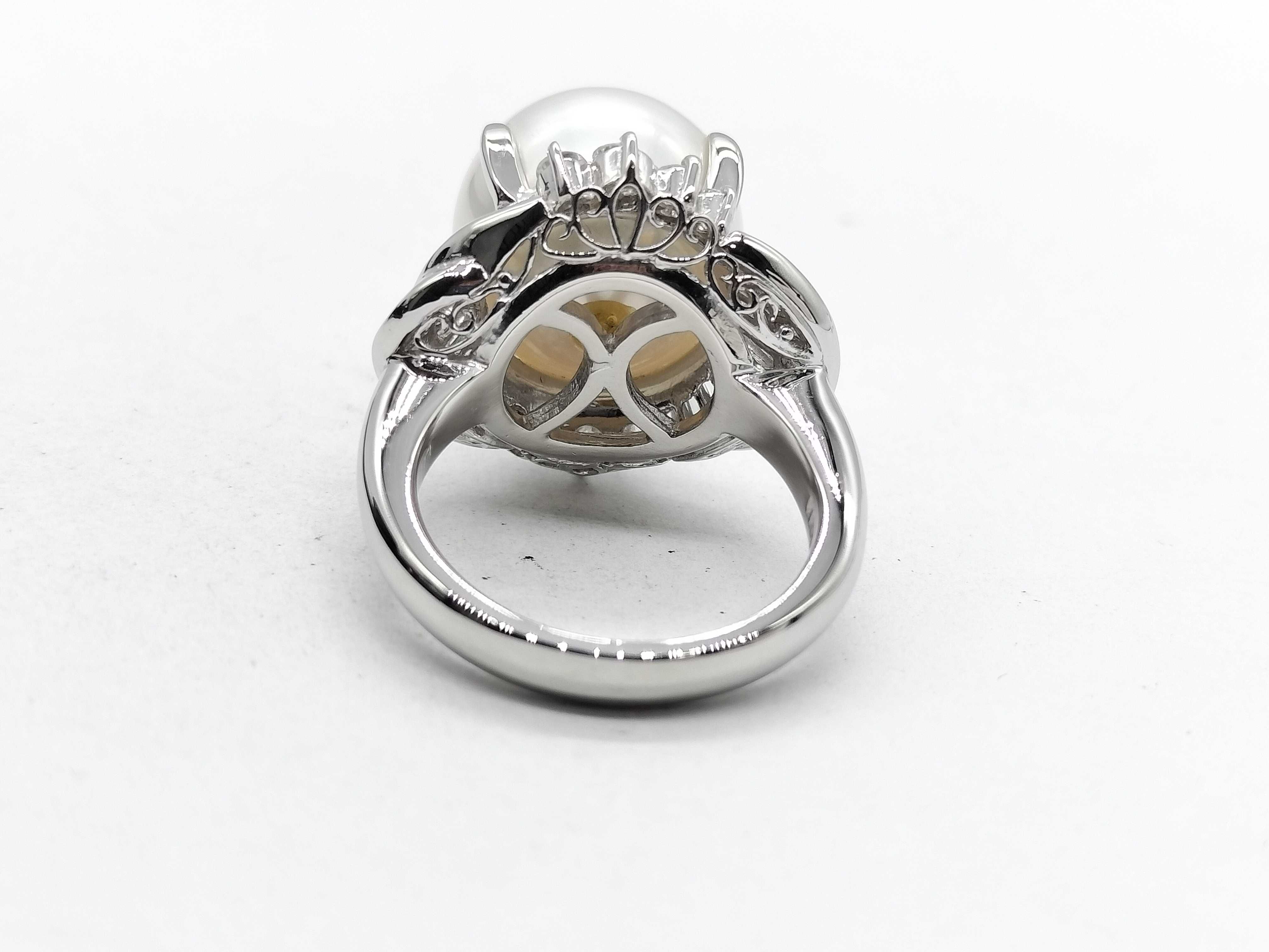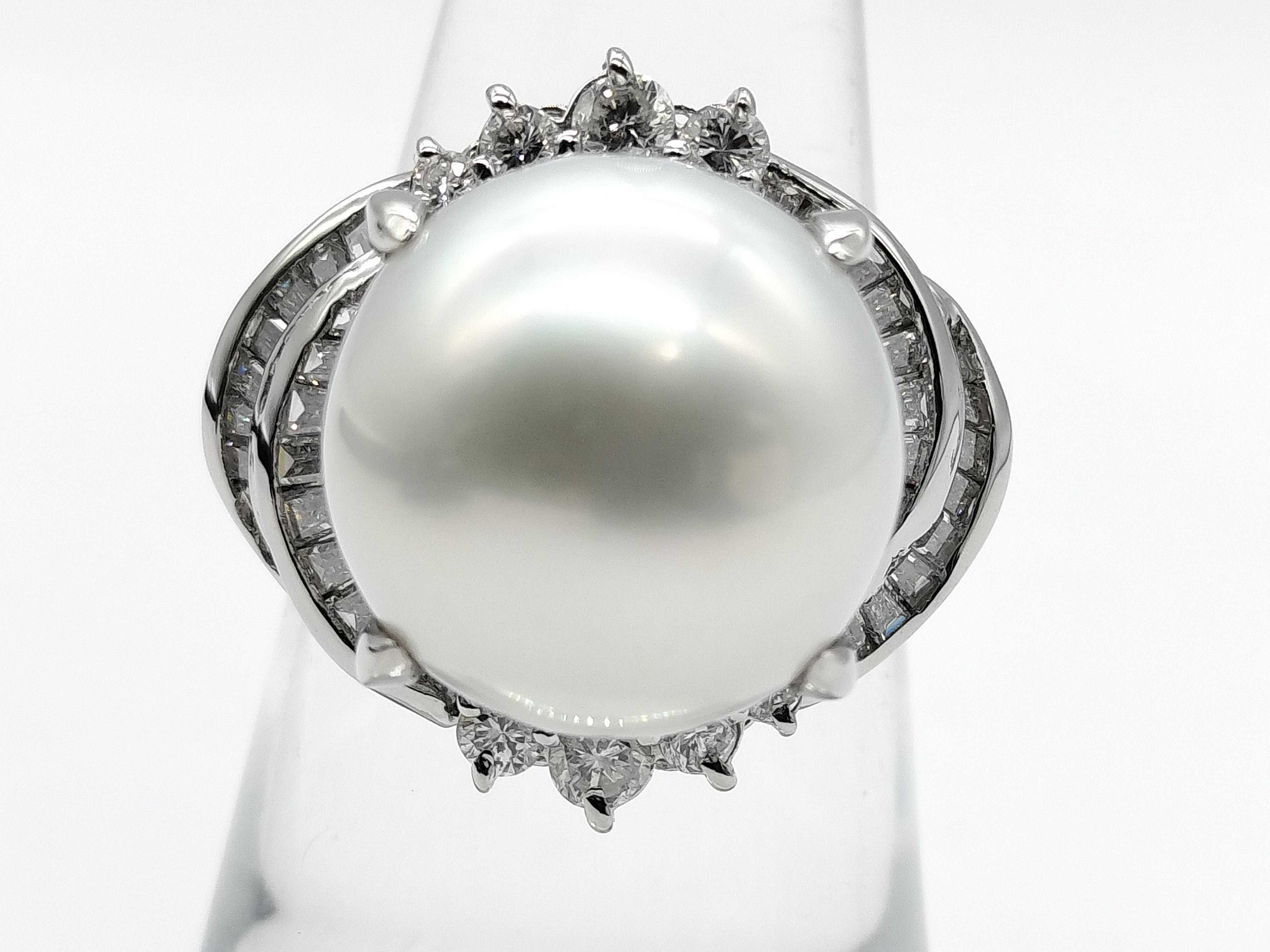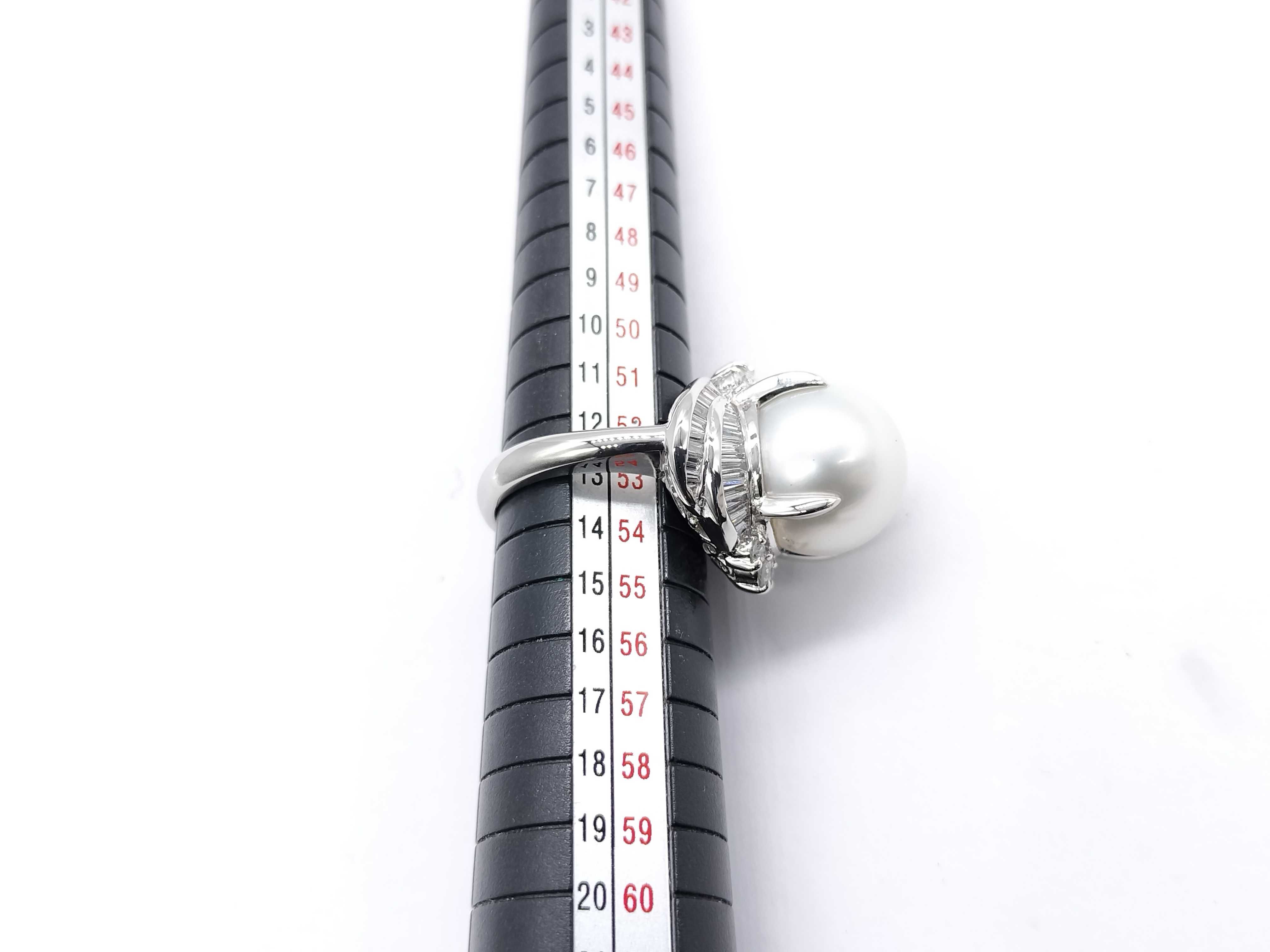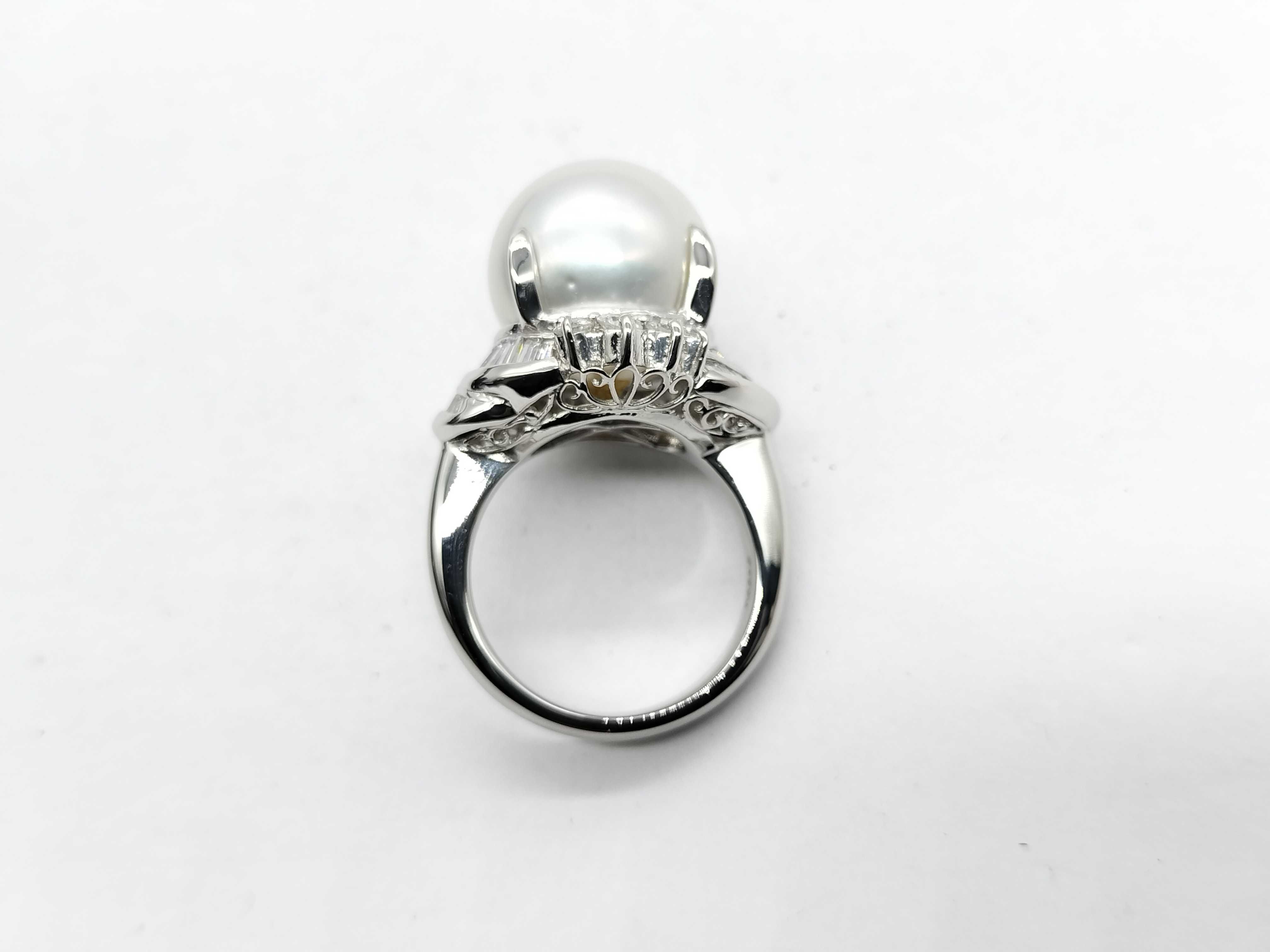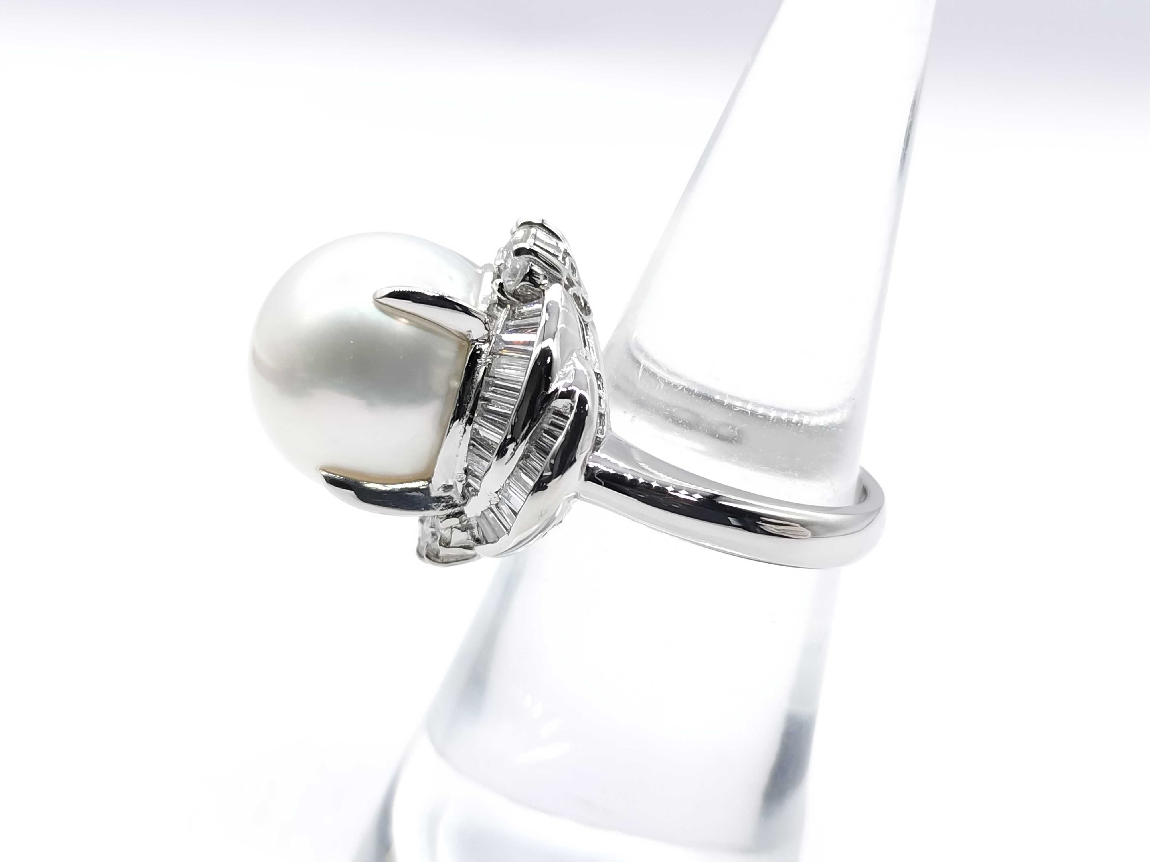 (P_0541)南洋パール 直径 約14.1mm D1.12ct Pt900 18.4g リング(貴金属)