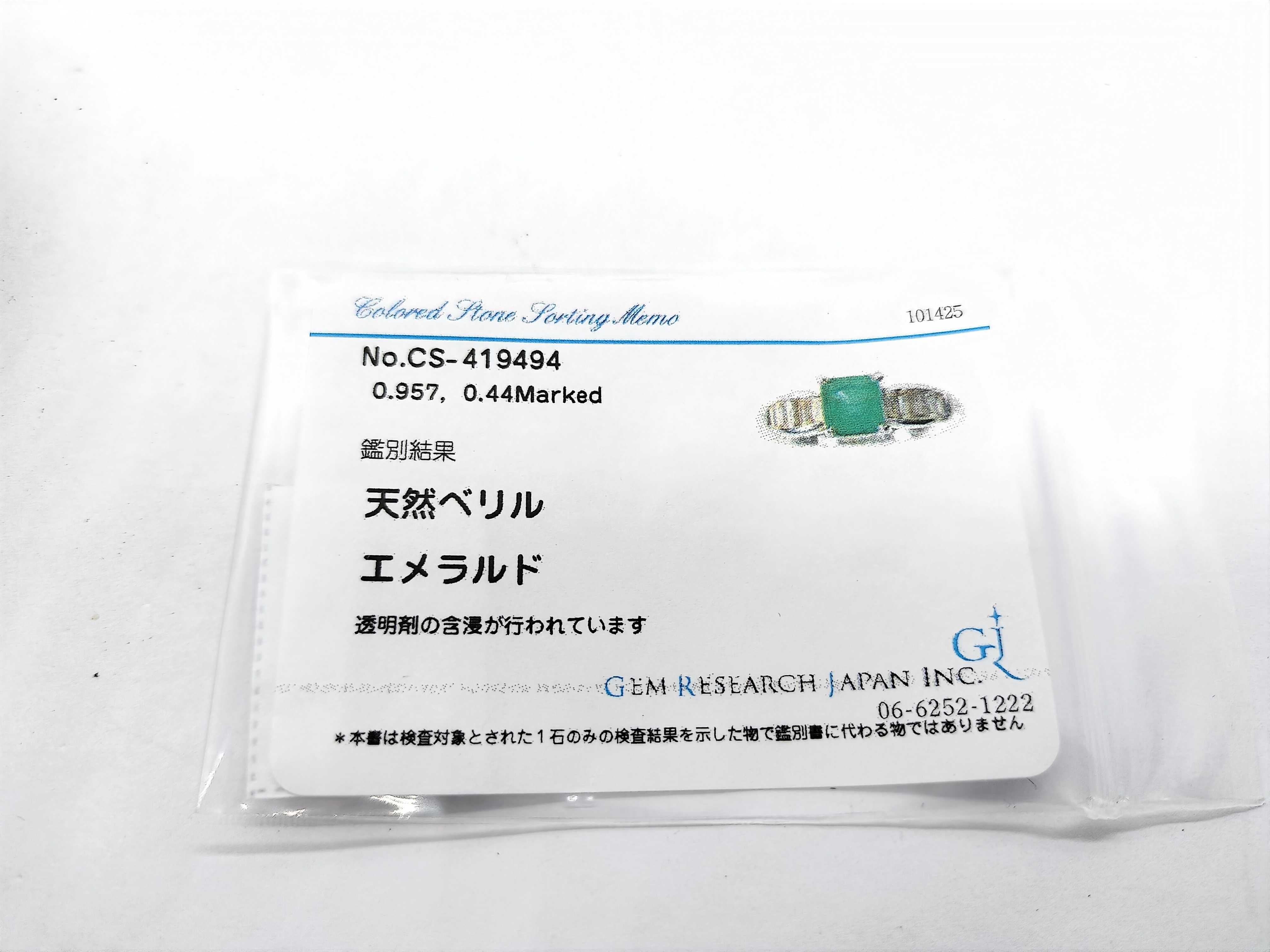 仕上げ済み. エメラルド評価 BC (面キズ/面カケあり). ダイヤ評価 AB【付属品