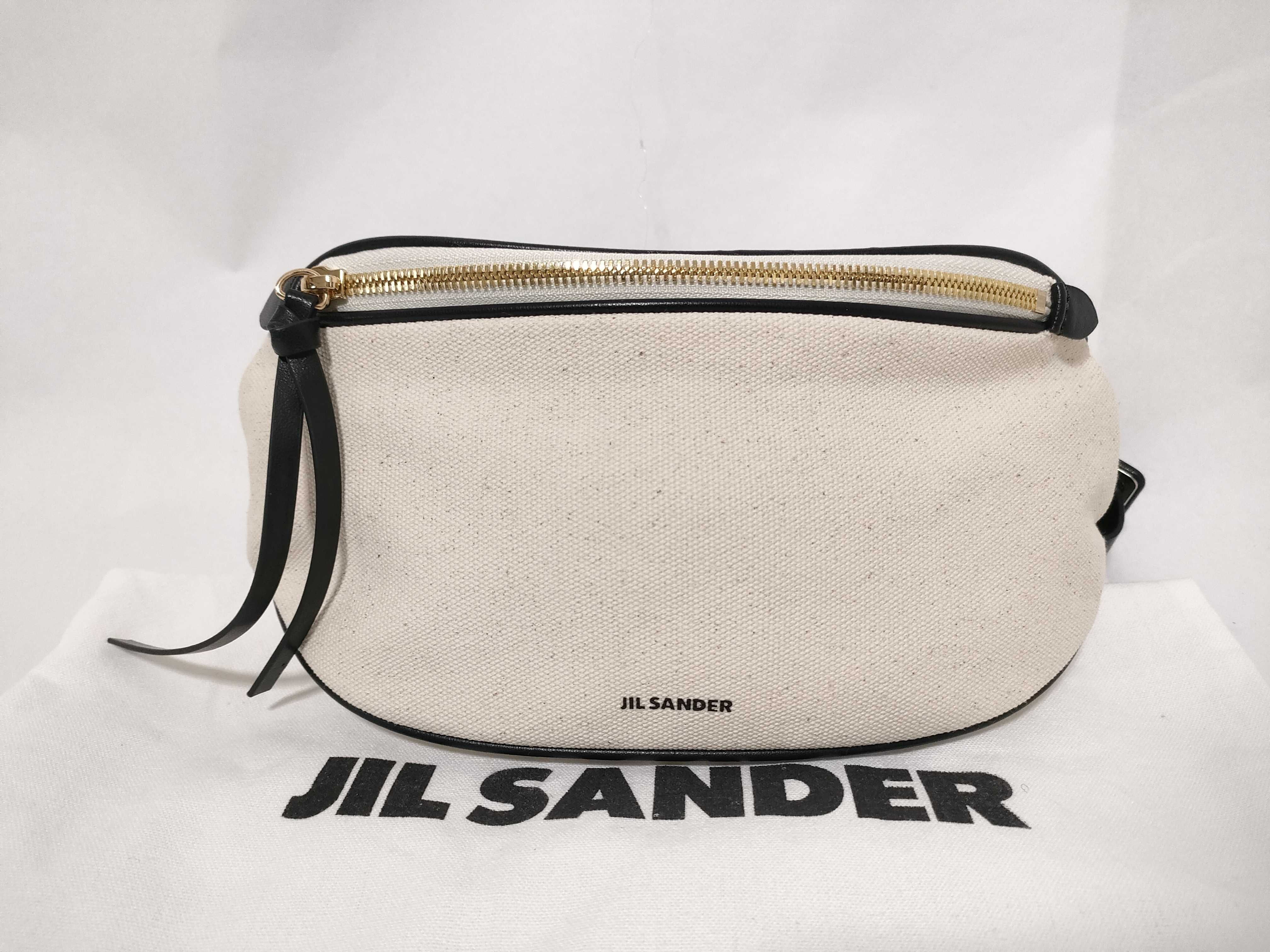 (F_0576)JILSANDER キャンバス×レザークロスボディバッグ ナチュラル 保存袋付 ウエストバッグ