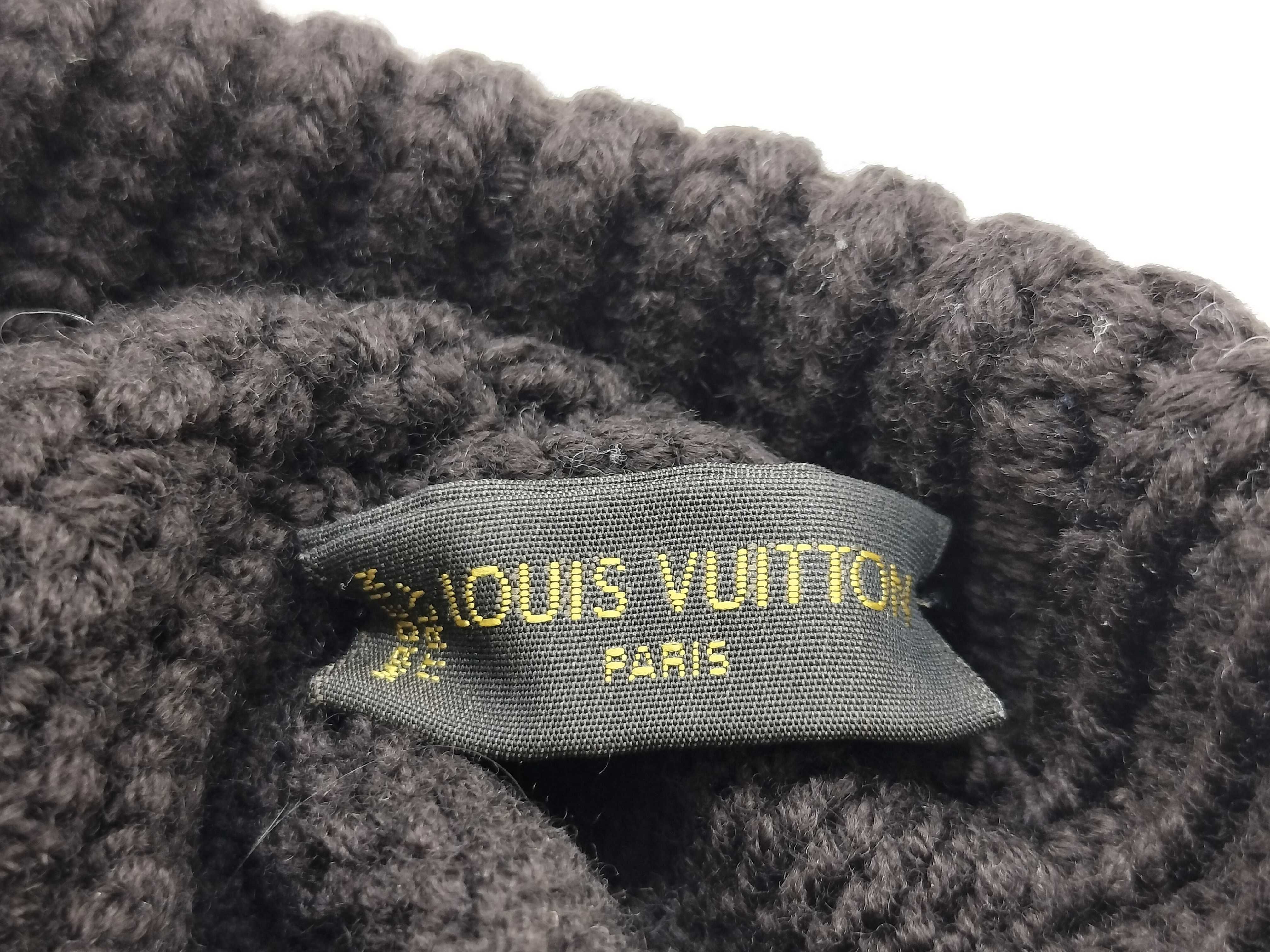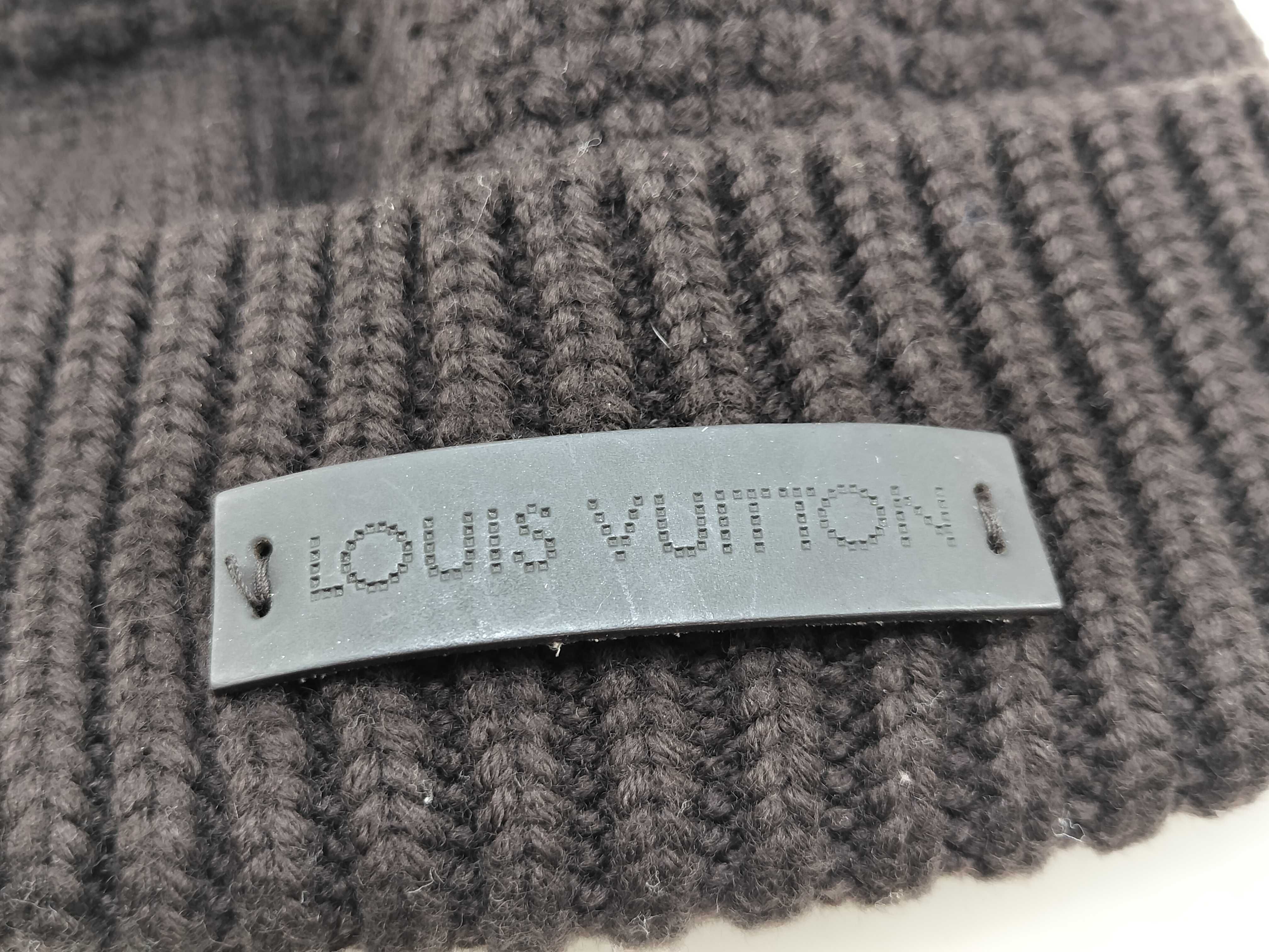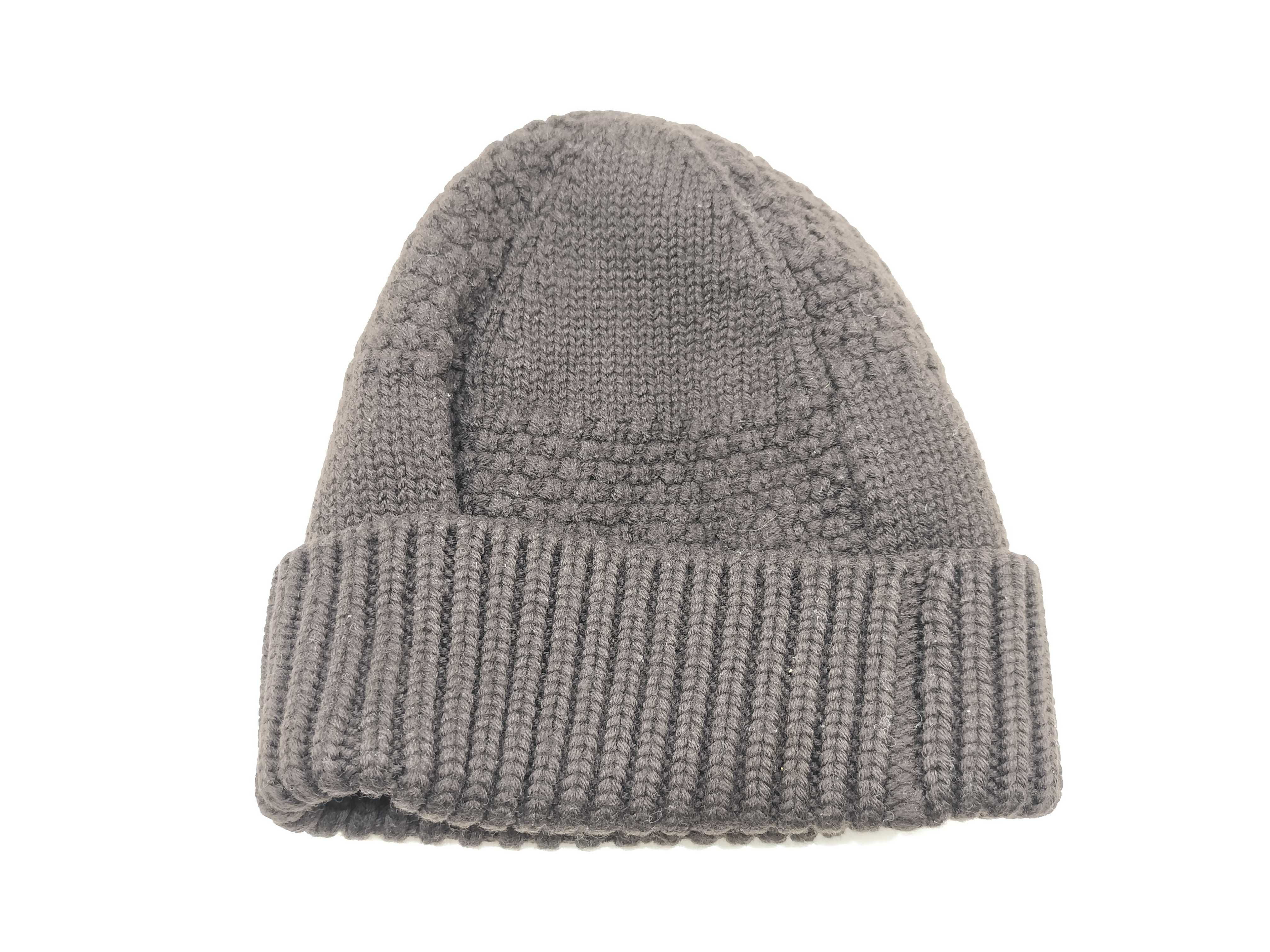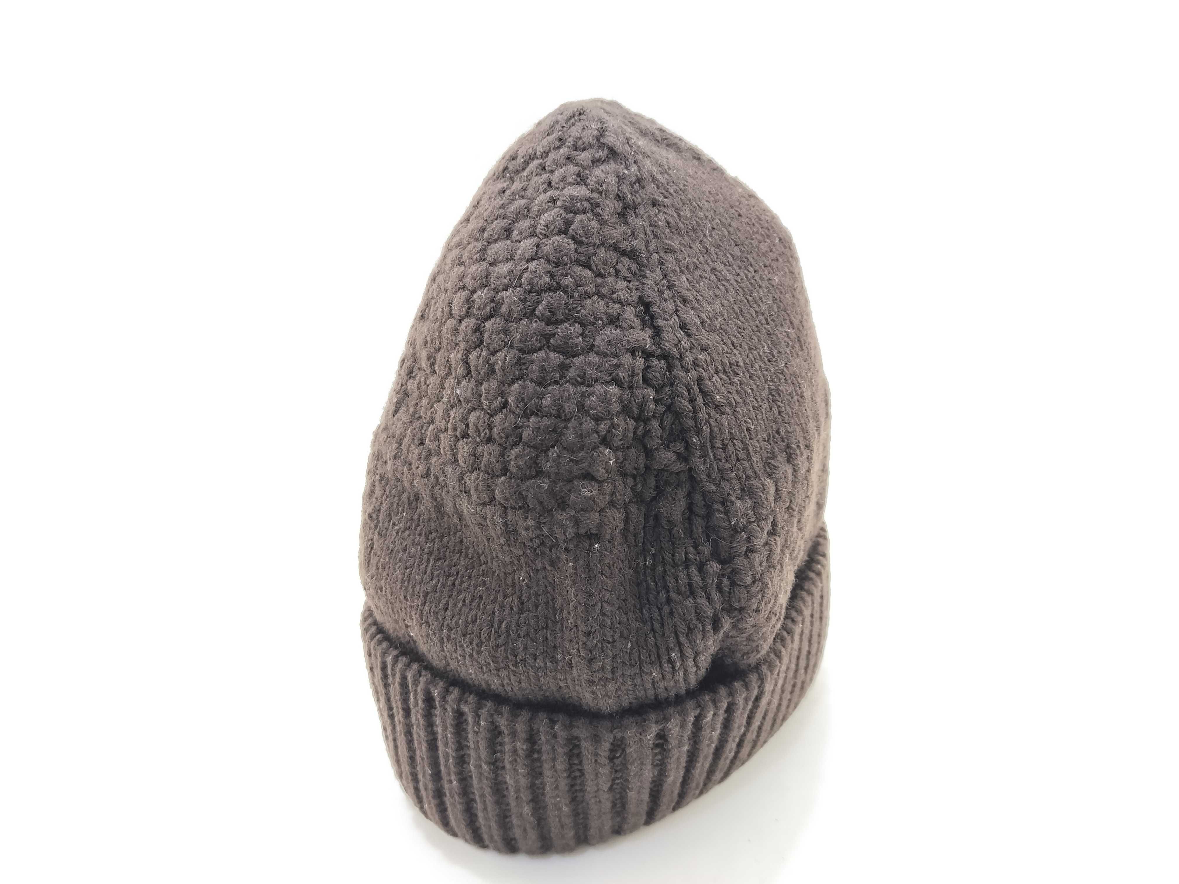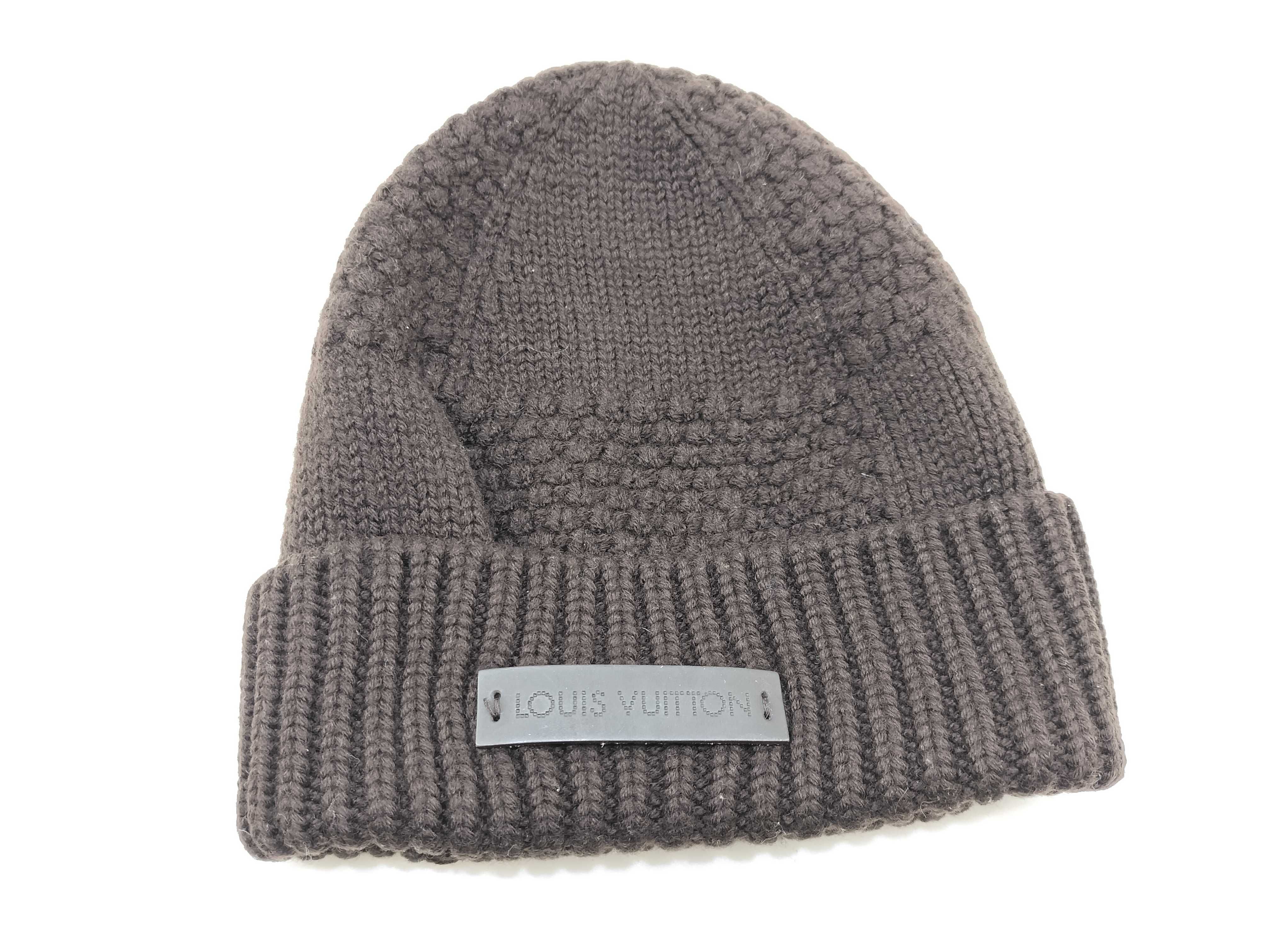 (I_0551)LOUIS VUITTON LOUIS VUITTON ルイ ヴィトン レザーロゴパッチ ニット帽 ウール 100% ブラウン その他アパレル