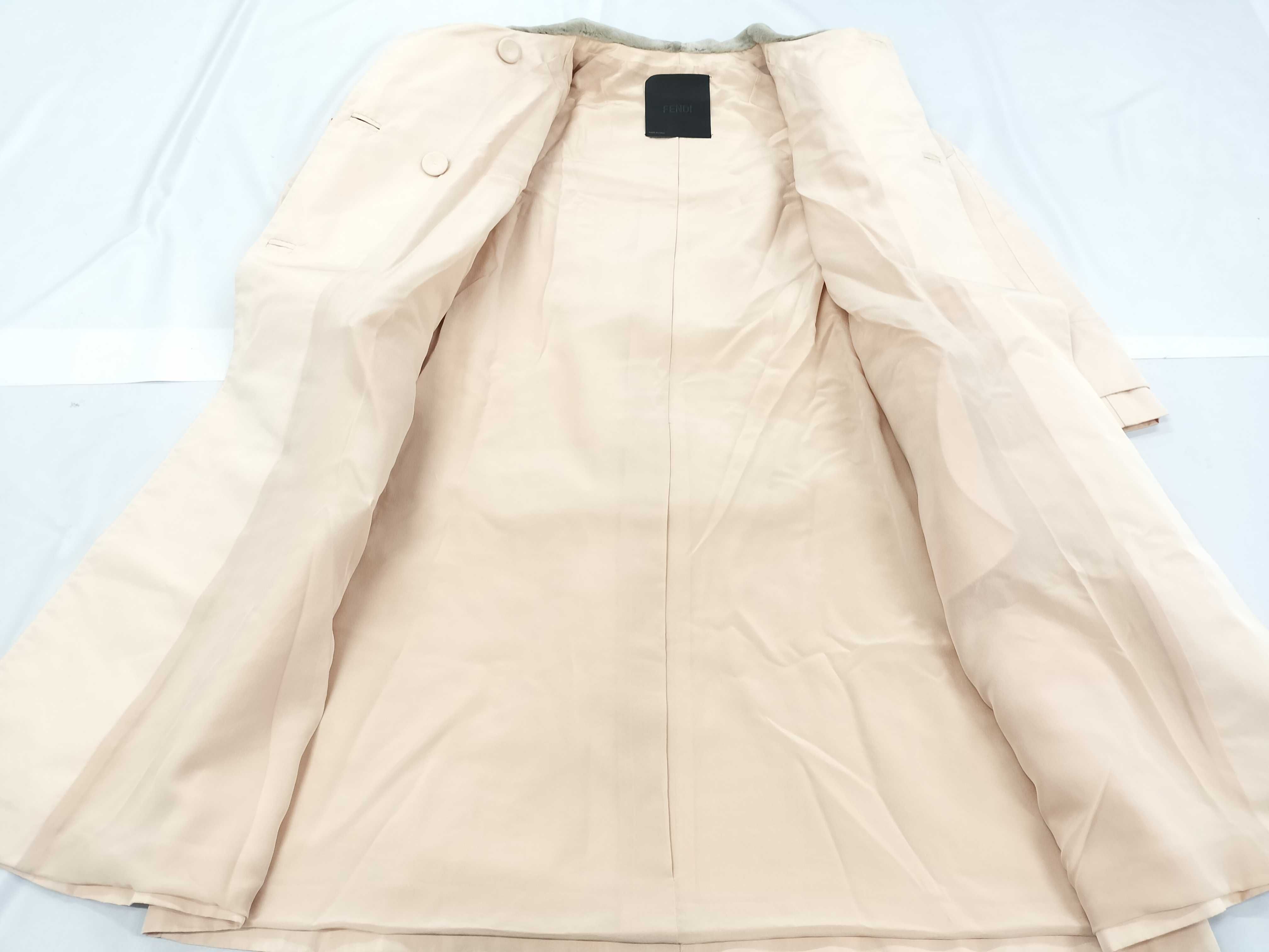 (I_0682)▼FENDI FENDI フェンディ シルク ロングコート ジャケット ファー襟 ライトピンク 40 イタリア製 絹100% スプリング レディース 40 コート