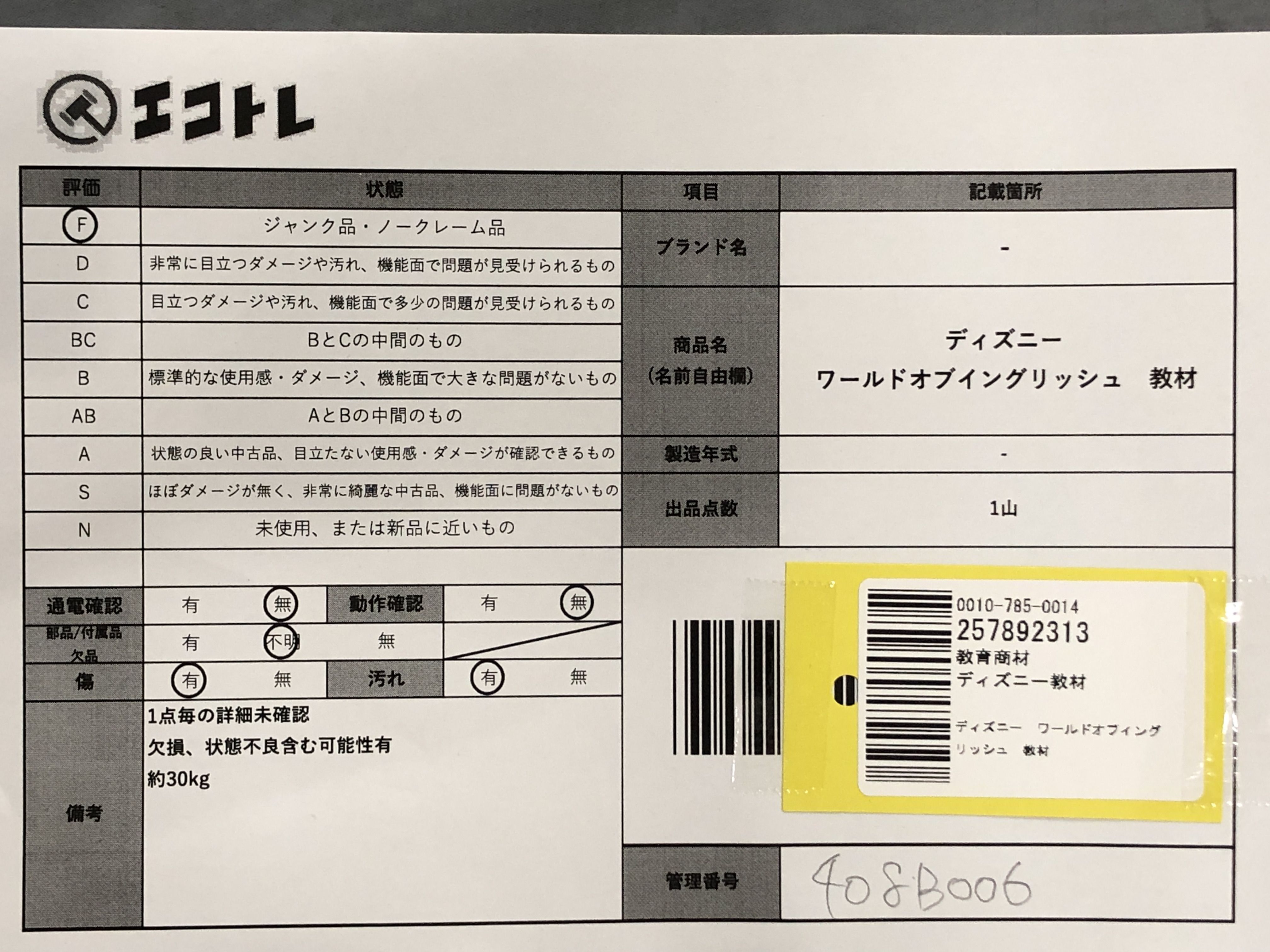 商品内容によって、JITBOXなどでの発送となる可能性がございます事ご理解下さい。年式などの商品情報詳細は写真にてご確認願います。※ご入札の際はご利用規約をよくお読みになってからのご参加お願いします。","タイプライン":"","カテゴリ":"教育","形状コード":"ディズニー教材","付属品コード":"","シリアル・シール・型番":""