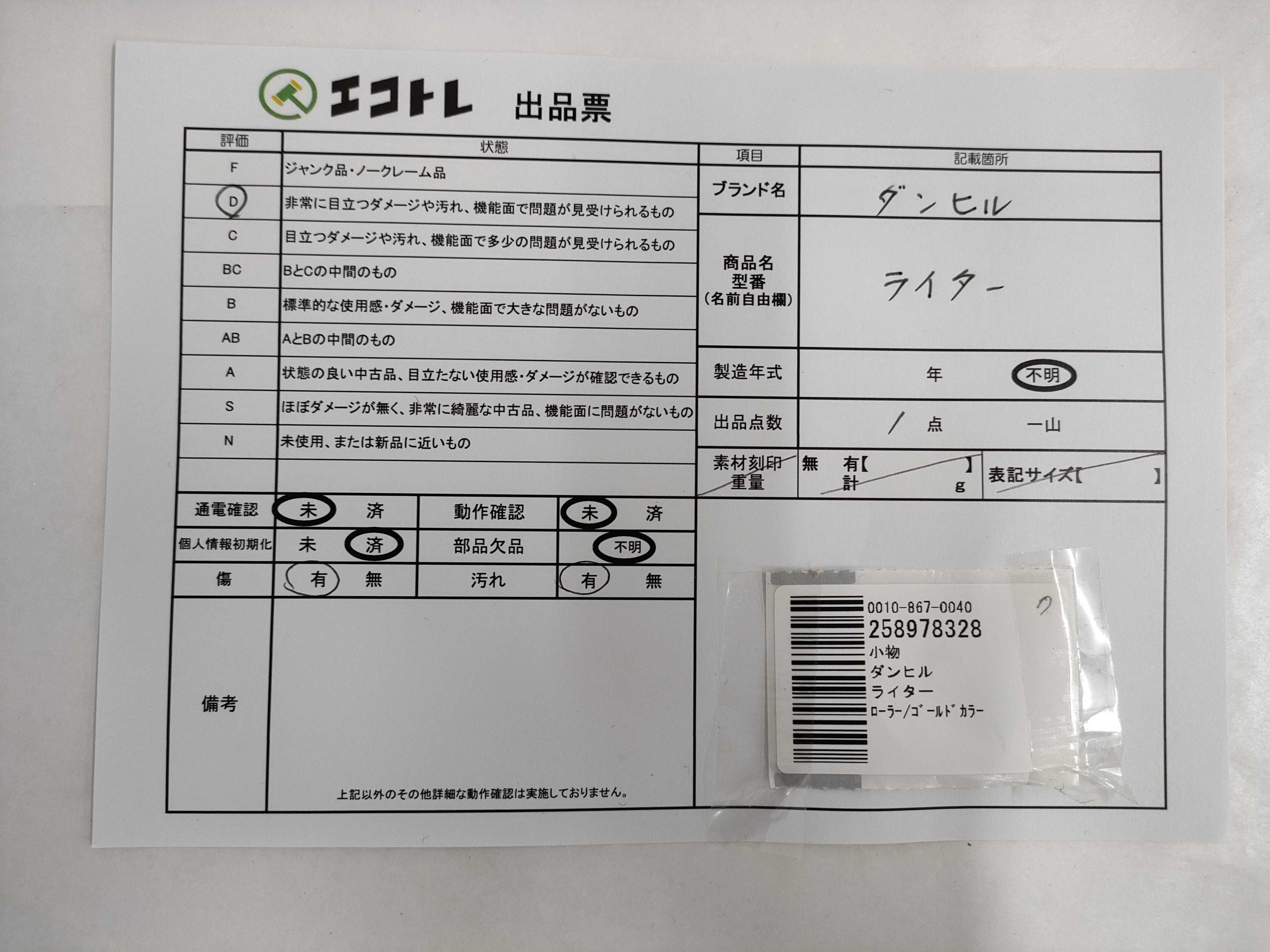▼SHIPPING TO JPN ONLY▼▼dunhill ローラー/ゴールドカラー ライター","タイプライン":"","カテゴリ":"喫煙具","形状コード":"ライター","付属品コード":"","シリアル・シール・型番":""