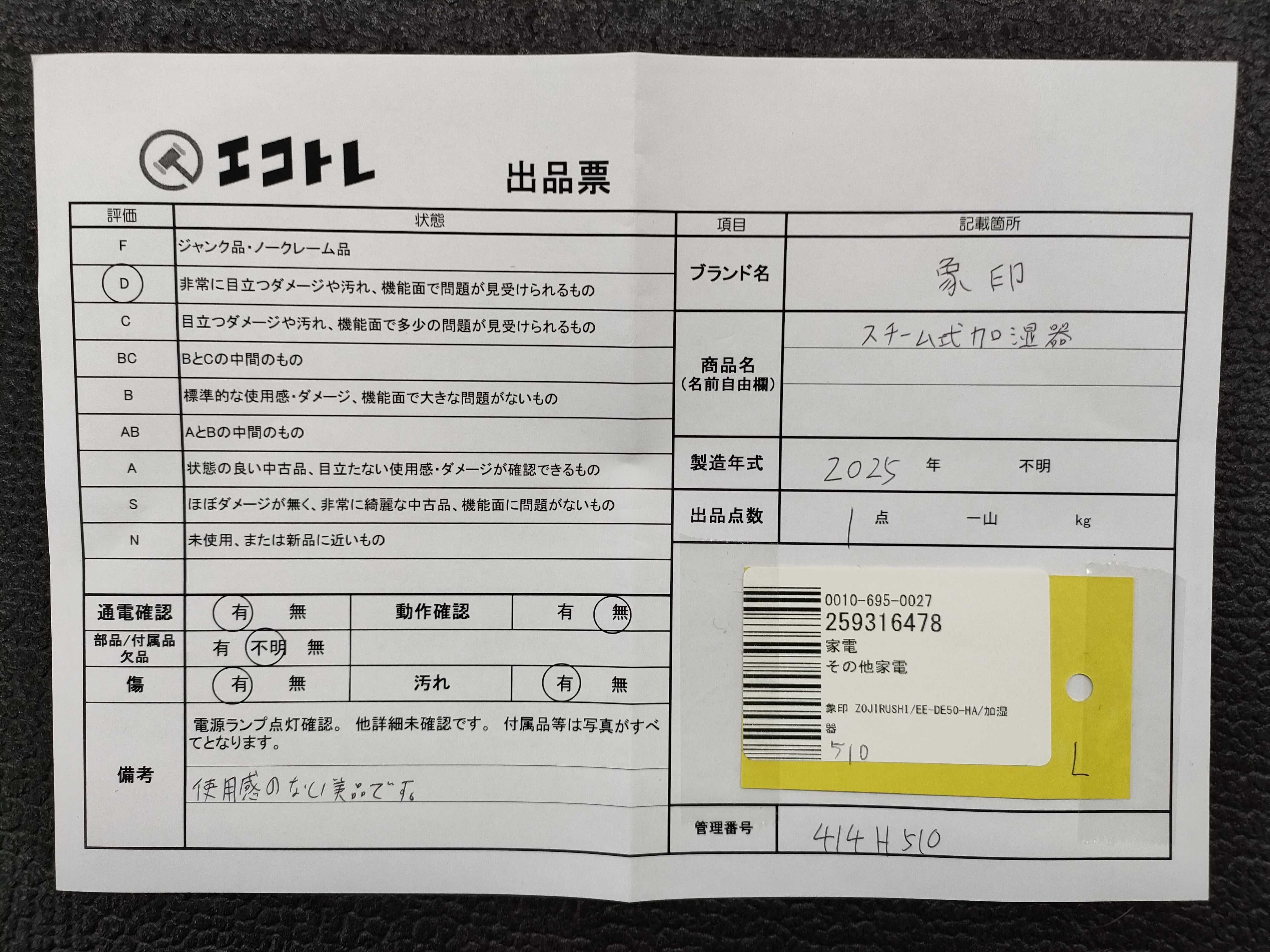 商品内容によって、JITBOXなどでの発送となる可能性がございます事ご理解下さい。年式などの商品情報詳細は写真にてご確認願います。※ご入札の際はご利用規約をよくお読みになってからのご参加お願いします。","タイプライン":"","カテゴリ":"家電","形状コード":"キッチン","付属品コード":"","シリアル・シール・型番":""