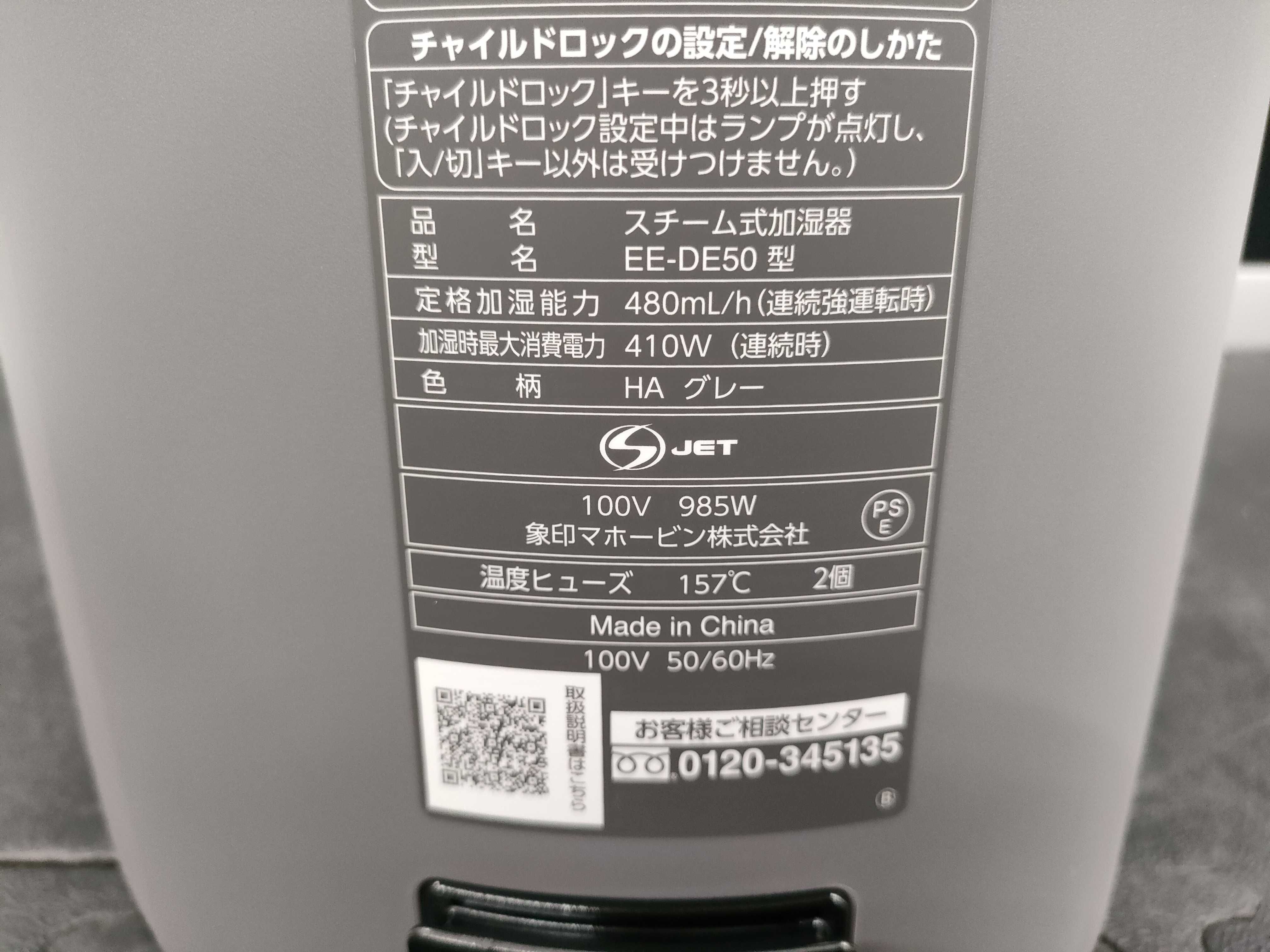 (E_0395)▼象印 ZOJIRUSHI/EE-DE50-HA/加湿器 キッチン