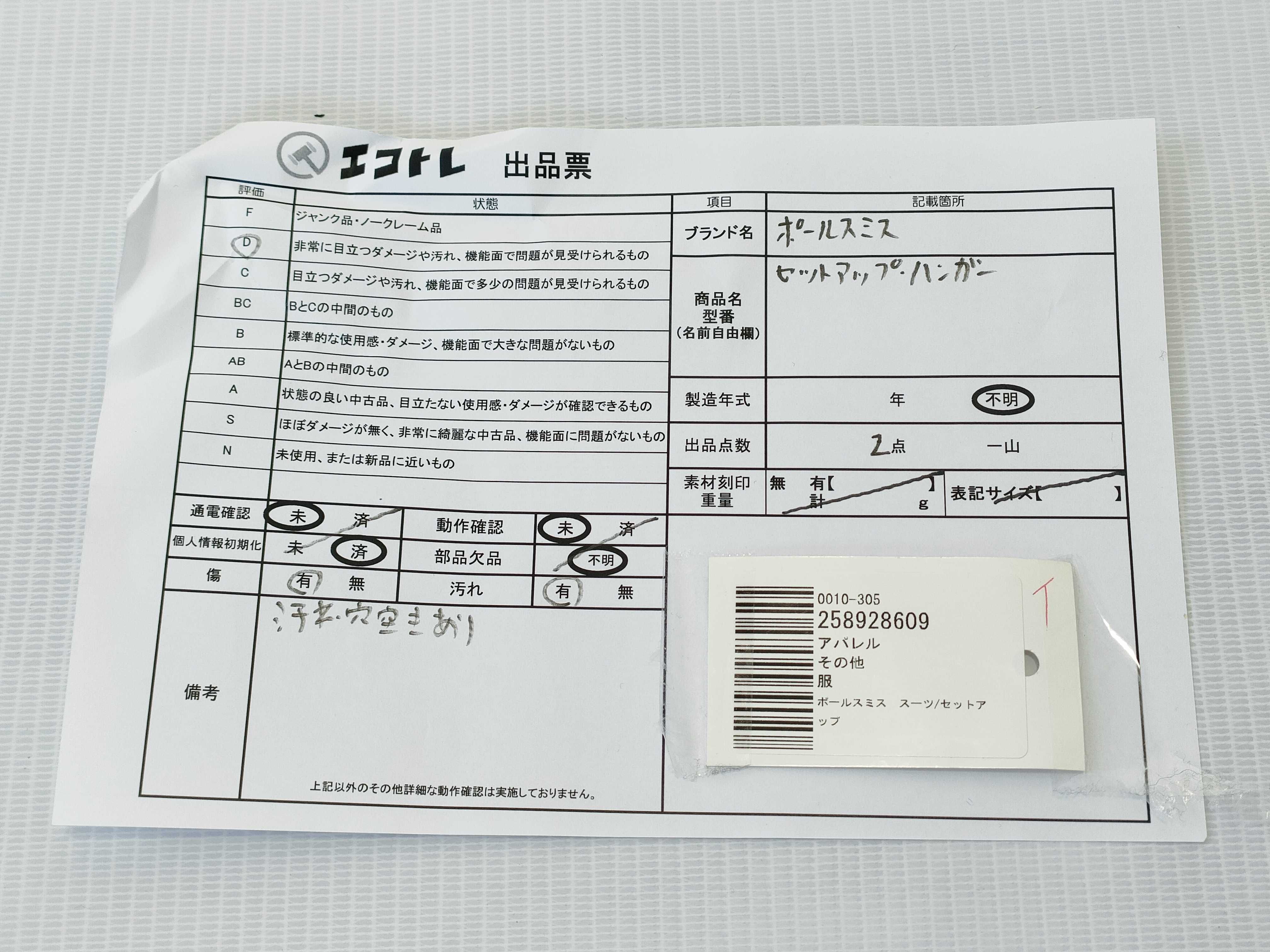 商品内容によって、JITBOXなどでの発送となる可能性がございます事ご理解下さい。年式などの商品情報詳細は写真にてご確認願います。※ご入札の際はご利用規約をよくお読みになってからのご参加お願いします。","タイプライン":"","カテゴリ":"アパレル","形状コード":"ジャケット","付属品コード":"","シリアル・シール・型番":""