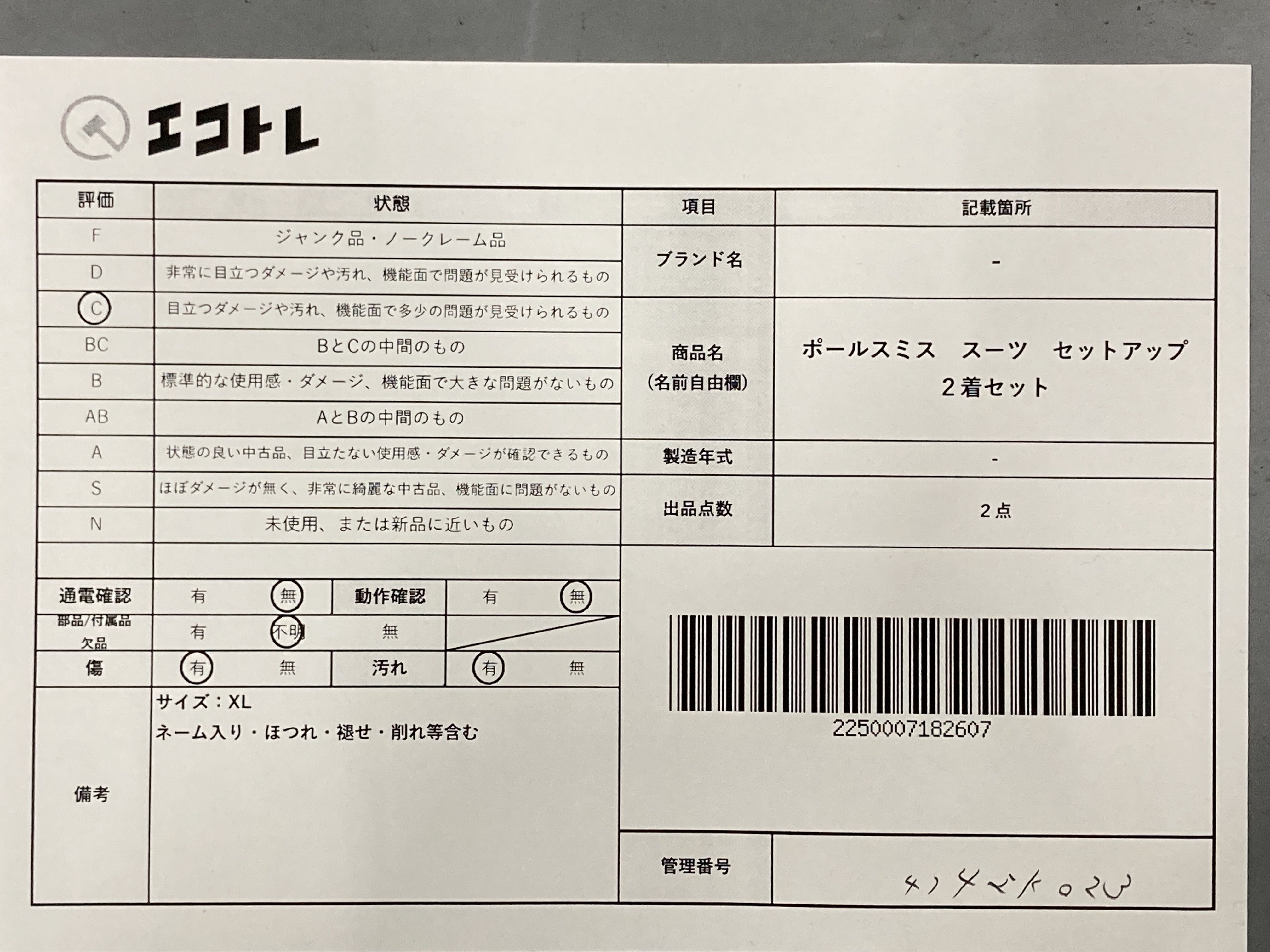 (A_0150)▼ポールスミス スーツ セットアップ 2着セット その他アパレル