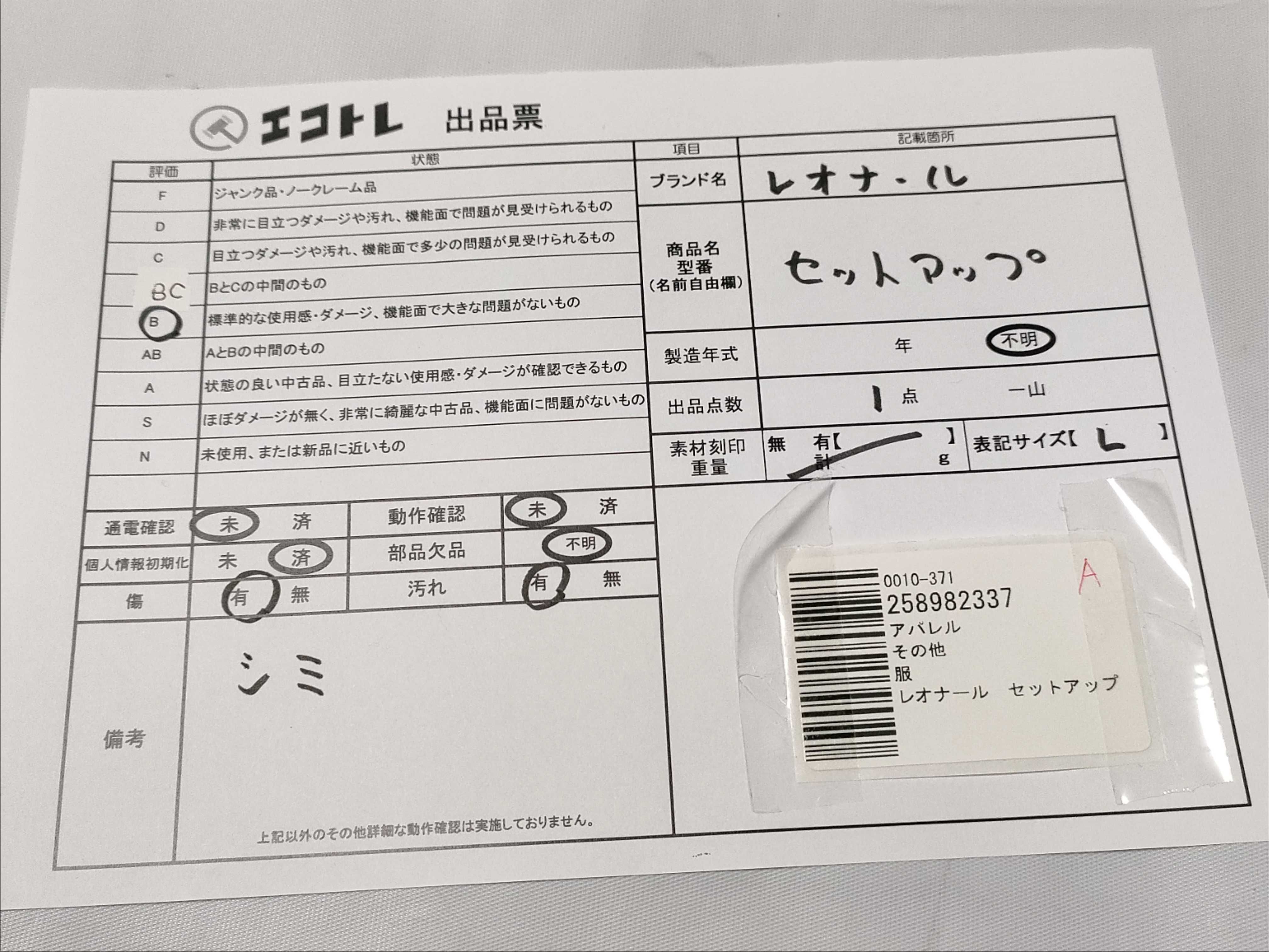 商品内容によって、JITBOXなどでの発送となる可能性がございます事ご理解下さい。年式などの商品情報詳細は写真にてご確認願います。※ご入札の際はご利用規約をよくお読みになってからのご参加お願いします。","タイプライン":"","カテゴリ":"アパレル","形状コード":"その他アパレル","付属品コード":"","シリアル・シール・型番":""