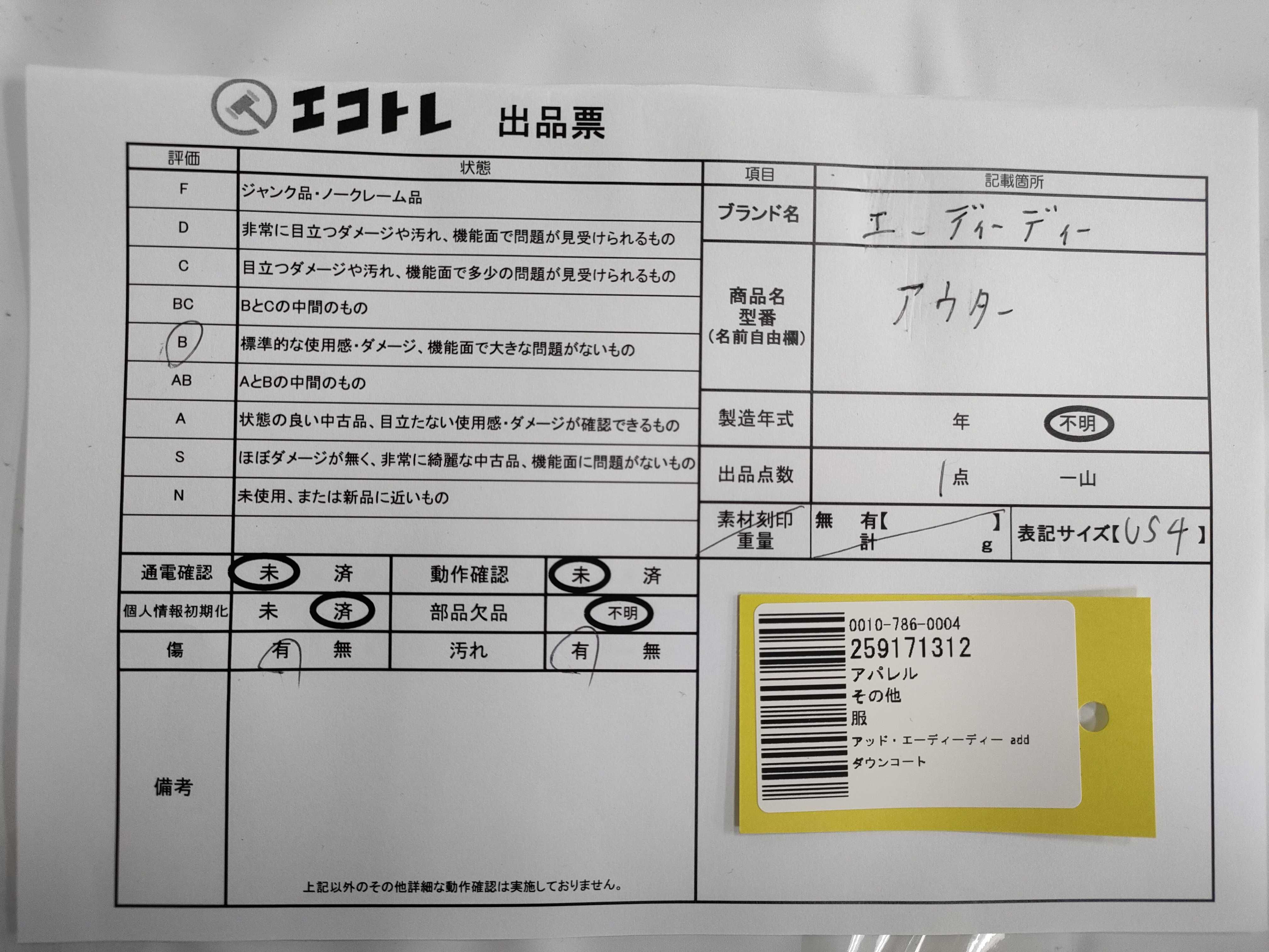 (A_0498)▼アッド・エーディーディー/add ダウンコート
