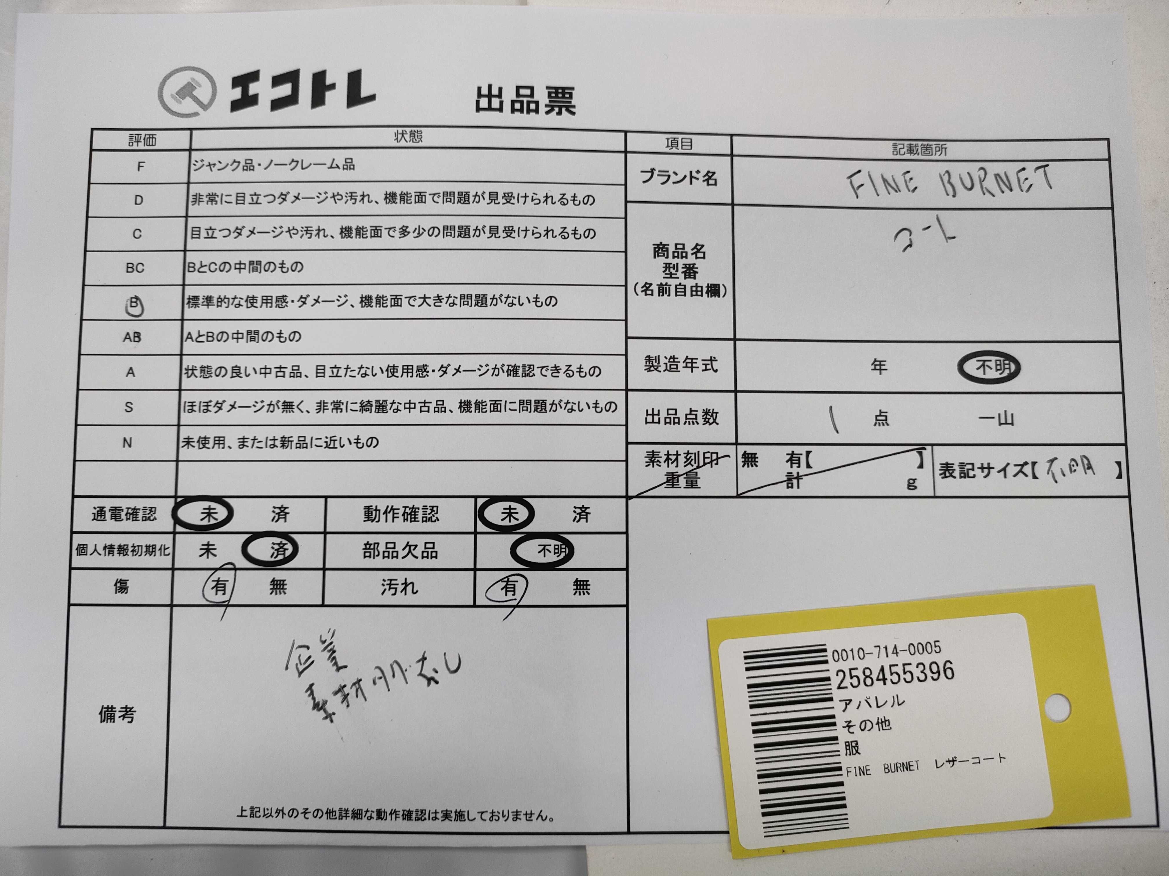 不明 【注意事項