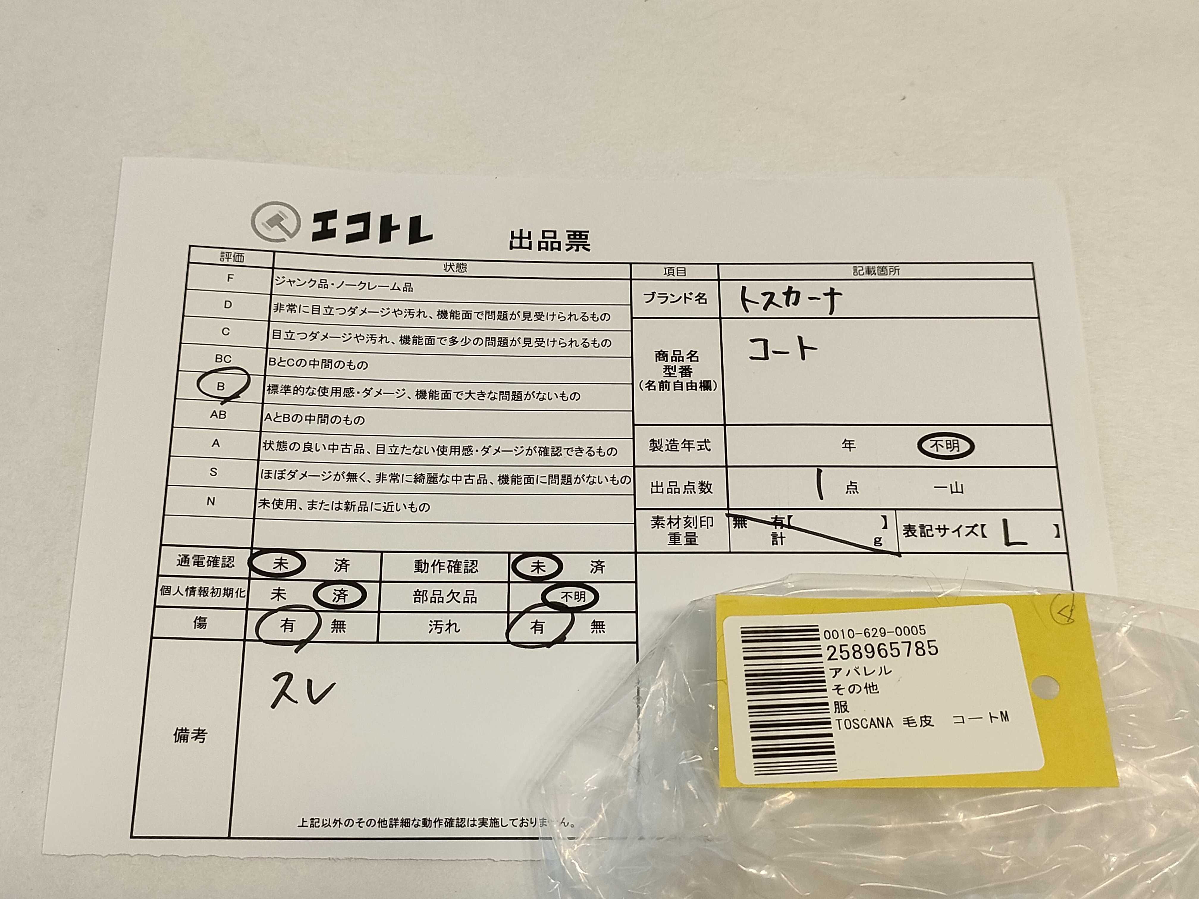 商品内容によって、JITBOXなどでの発送となる可能性がございます事ご理解下さい。年式などの商品情報詳細は写真にてご確認願います。※ご入札の際はご利用規約をよくお読みになってからのご参加お願いします。","タイプライン":"","カテゴリ":"アパレル","形状コード":"コート","付属品コード":"","シリアル・シール・型番":"M"