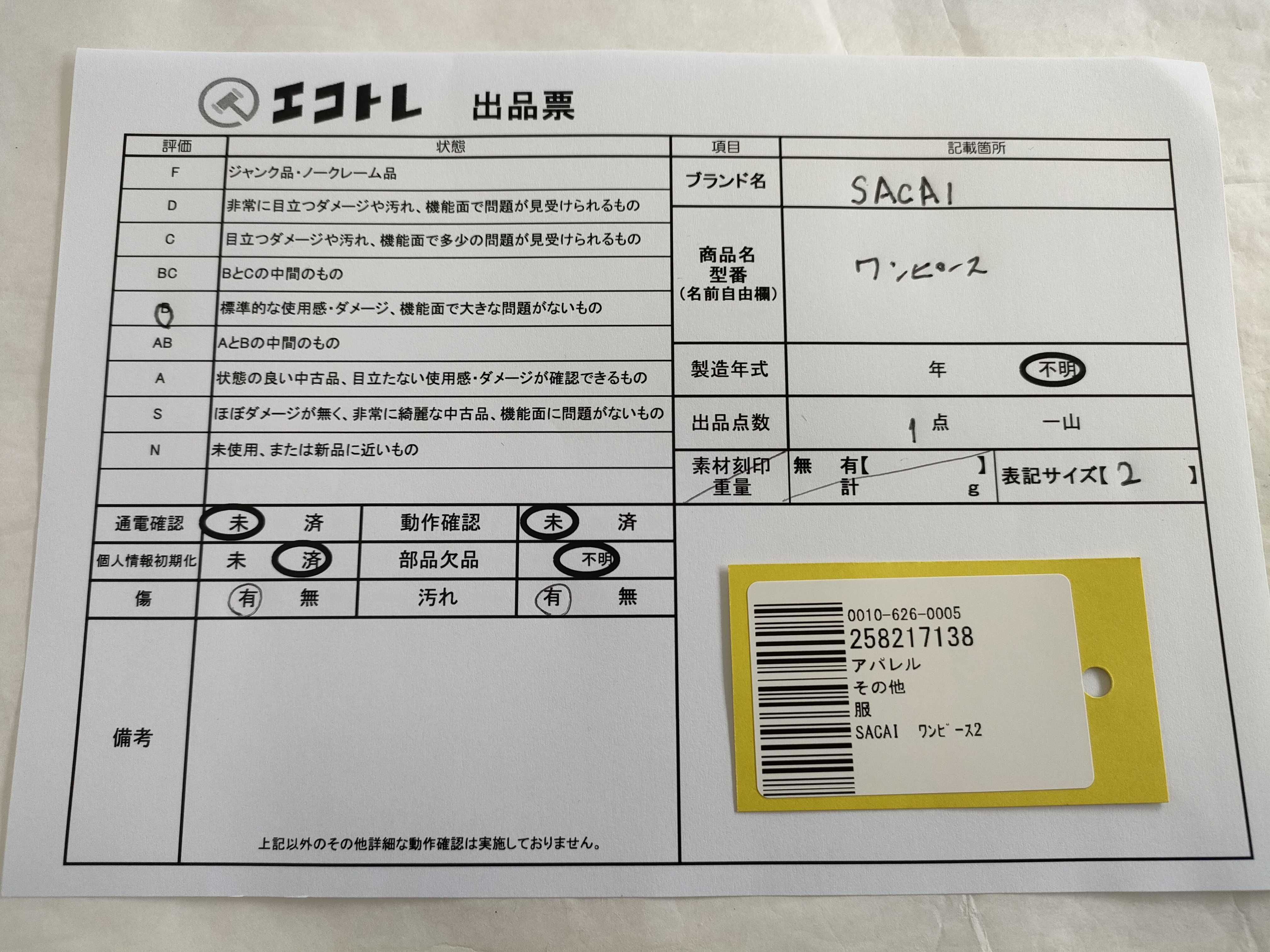 (A_0574)▼SACAI ワンピース