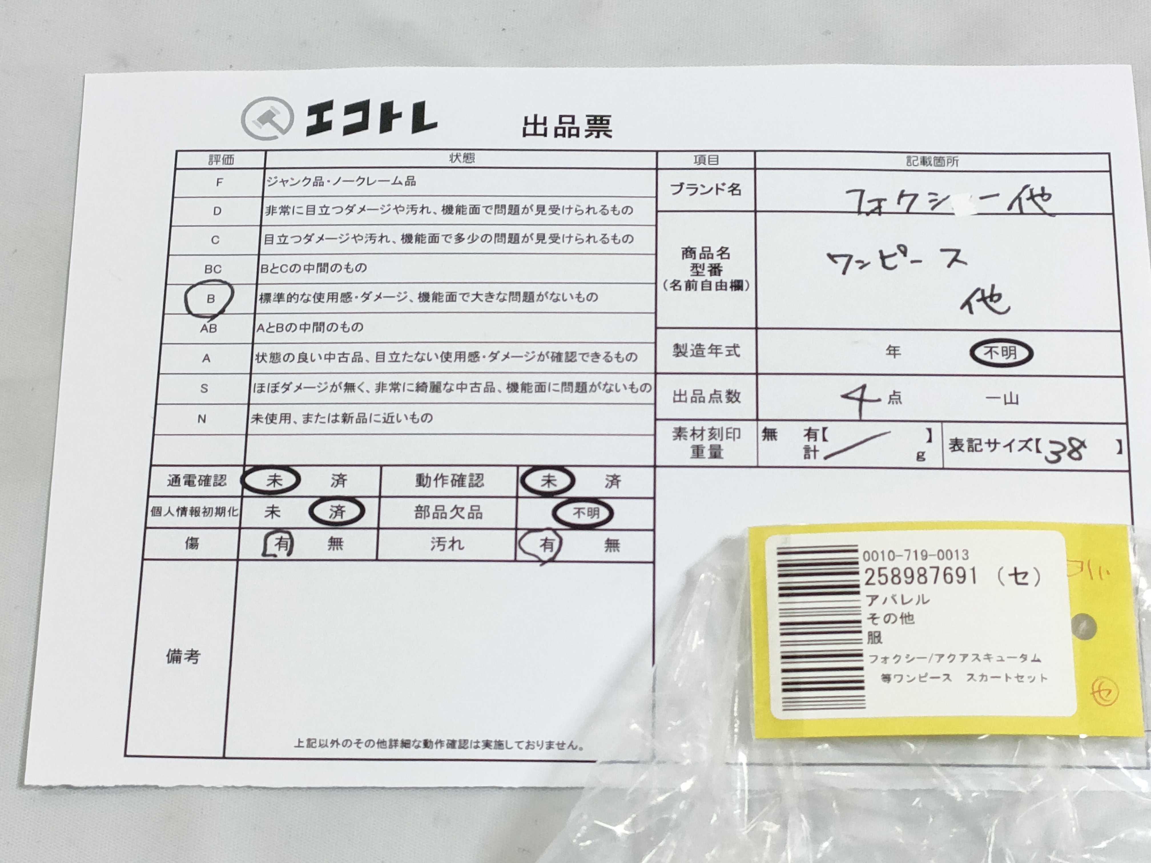 商品内容によって、JITBOXなどでの発送となる可能性がございます事ご理解下さい。年式などの商品情報詳細は写真にてご確認願います。※ご入札の際はご利用規約をよくお読みになってからのご参加お願いします。","タイプライン":"","カテゴリ":"アパレル","形状コード":"ワンピース","付属品コード":"","シリアル・シール・型番":""