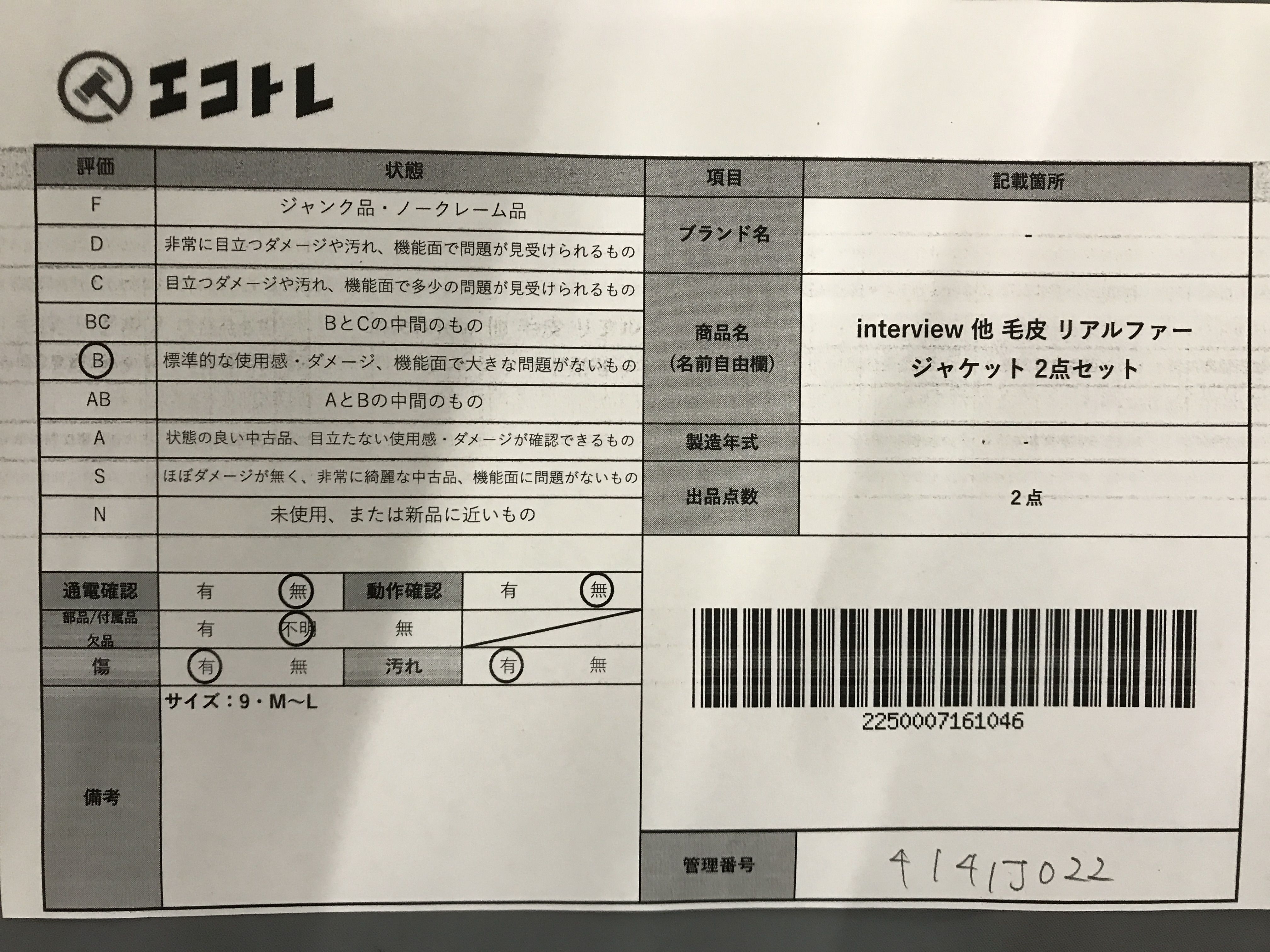 商品内容によって、JITBOXなどでの発送となる可能性がございます事ご理解下さい。年式などの商品情報詳細は写真にてご確認願います。※ご入札の際はご利用規約をよくお読みになってからのご参加お願いします。","タイプライン":"","カテゴリ":"アパレル","形状コード":"ジャケット","付属品コード":"","シリアル・シール・型番":""