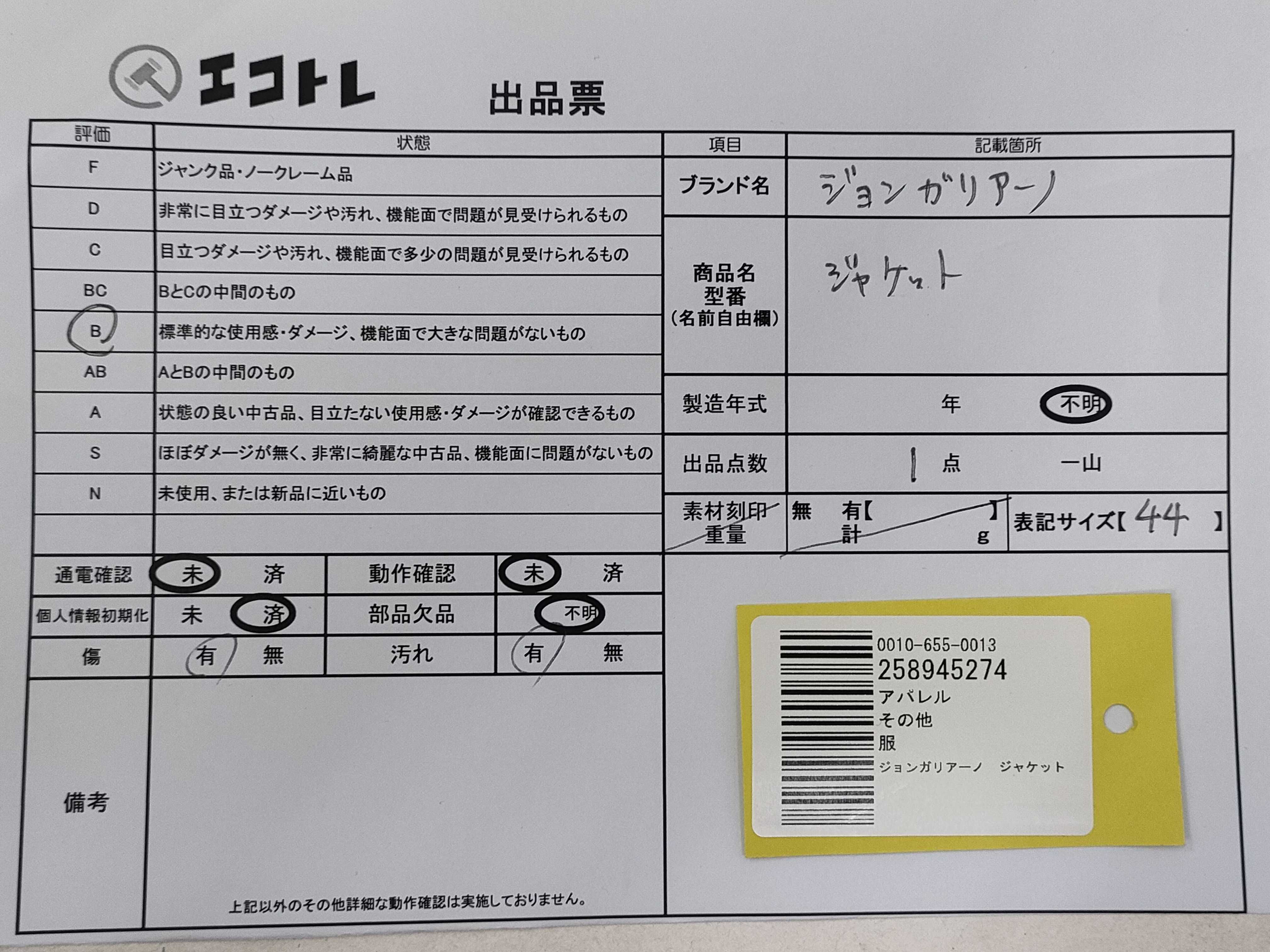 (A_0608)▼ジョンガリアーノ ジャケット