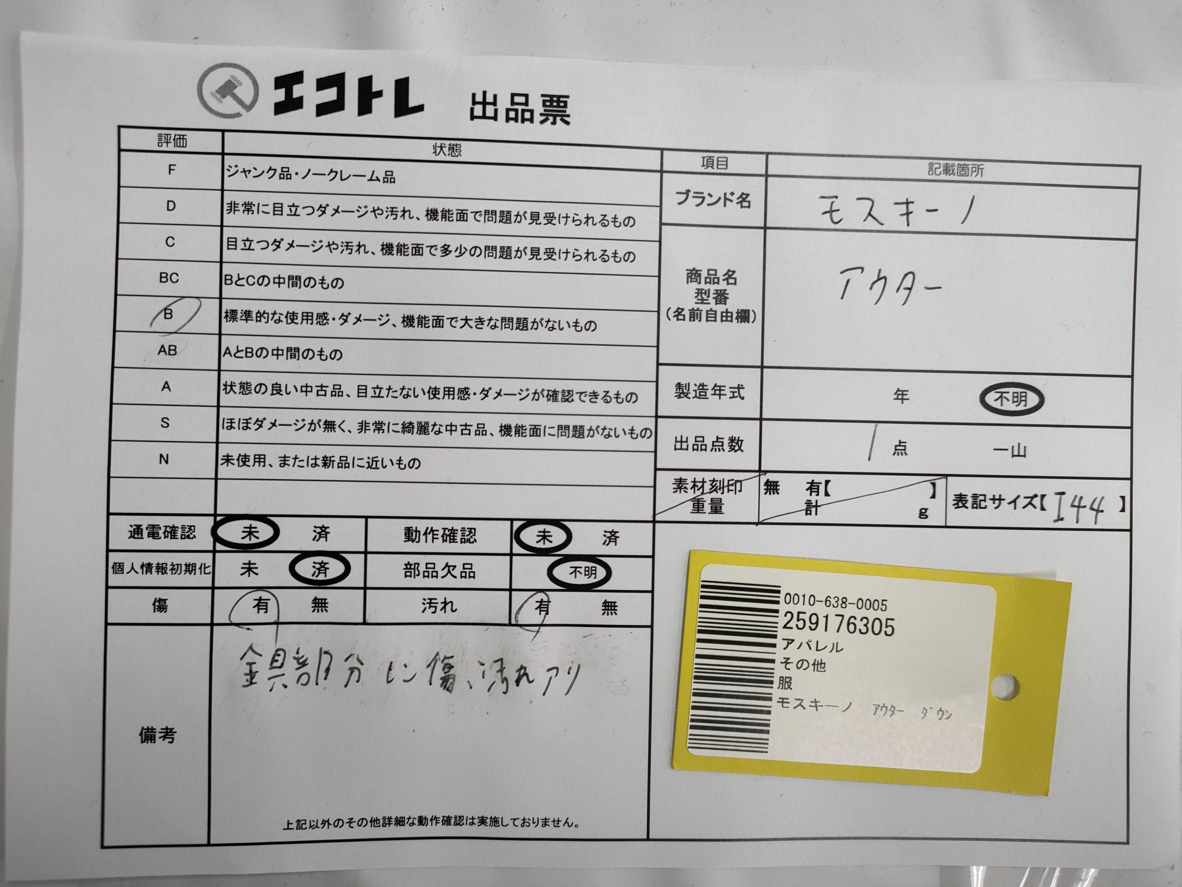 (A_0616)▼モスキーノ アウター ダウン ジャケット