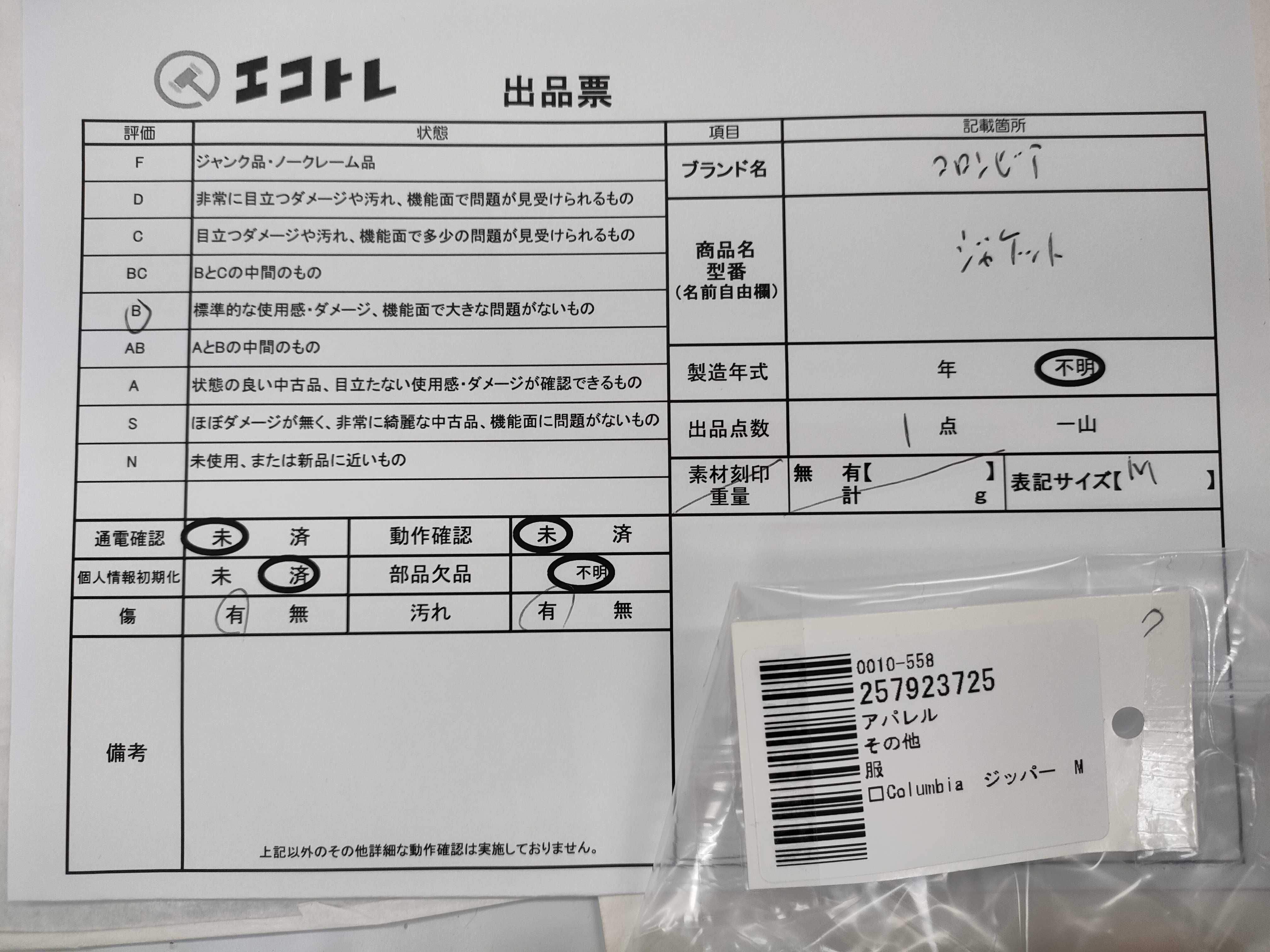 (A_0628)▼□Columbia ジッパー M ジャケット