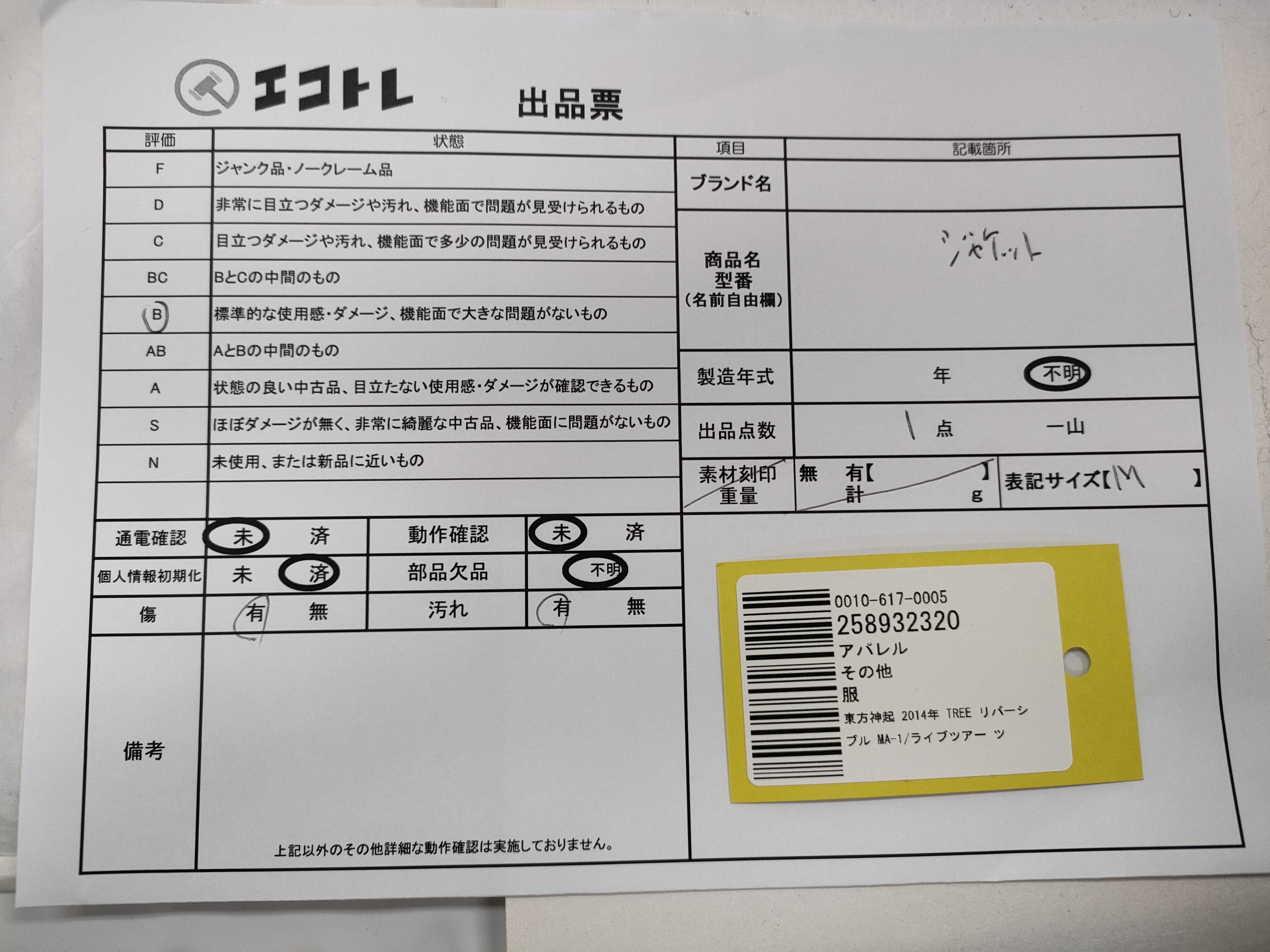 M 【注意事項
