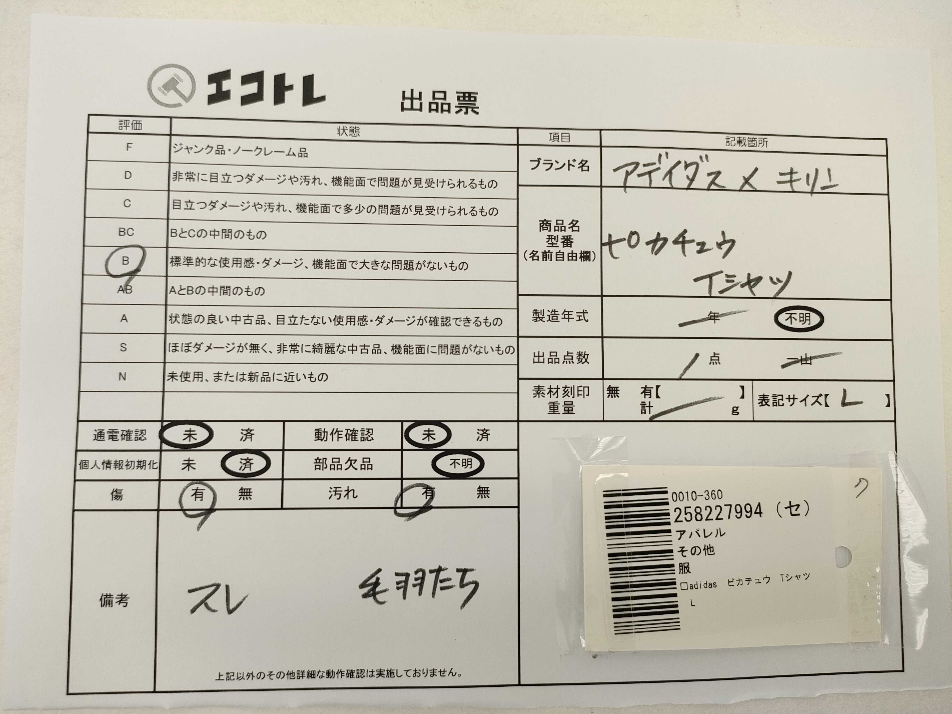 (A_0758)▼□adidas ピカチュウ Tシャツ L