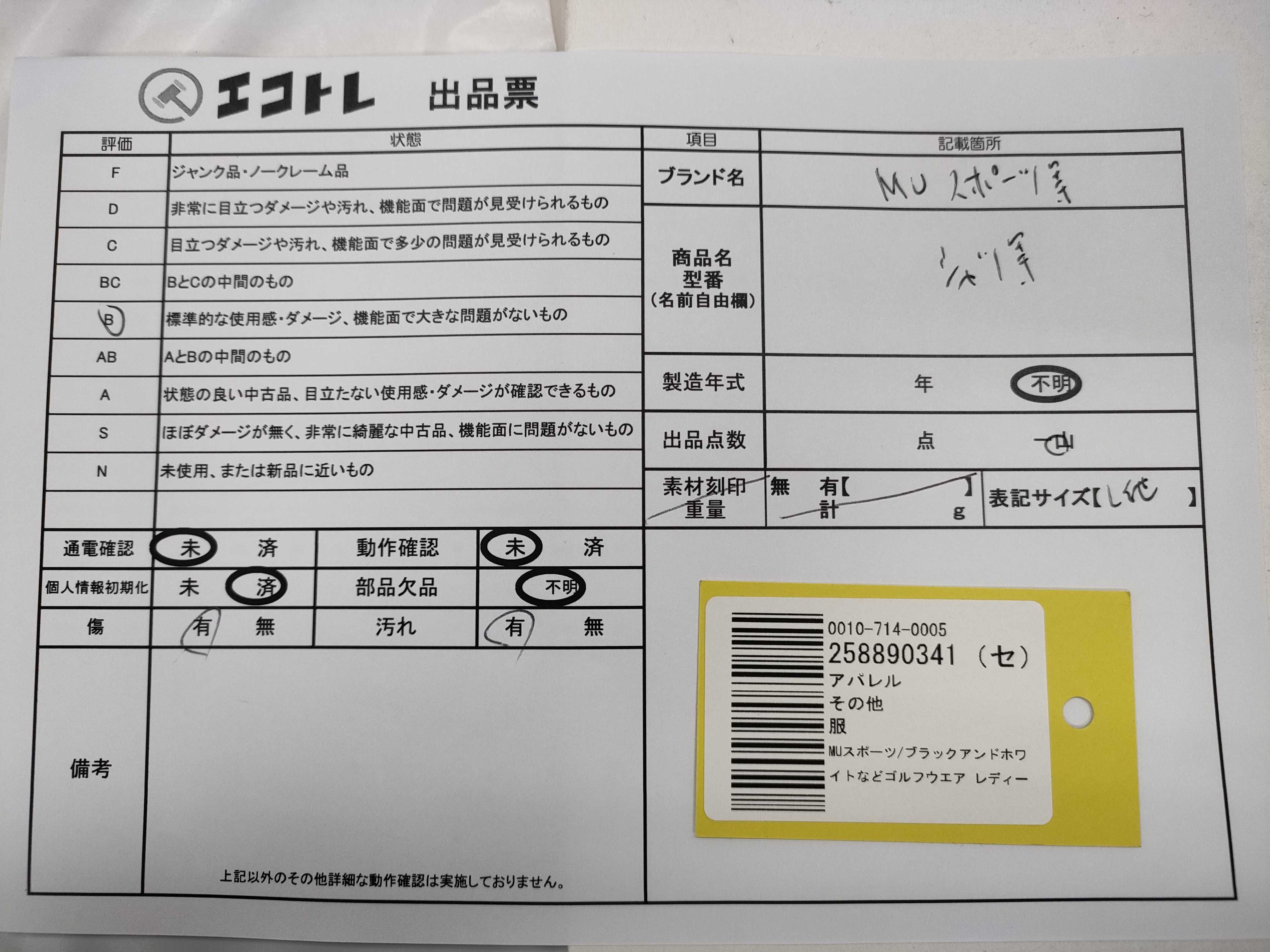 商品内容によって、JITBOXなどでの発送となる可能性がございます事ご理解下さい。年式などの商品情報詳細は写真にてご確認願います。※ご入札の際はご利用規約をよくお読みになってからのご参加お願いします。","タイプライン":"","カテゴリ":"アパレル","形状コード":"トップス","付属品コード":"","シリアル・シール・型番":""