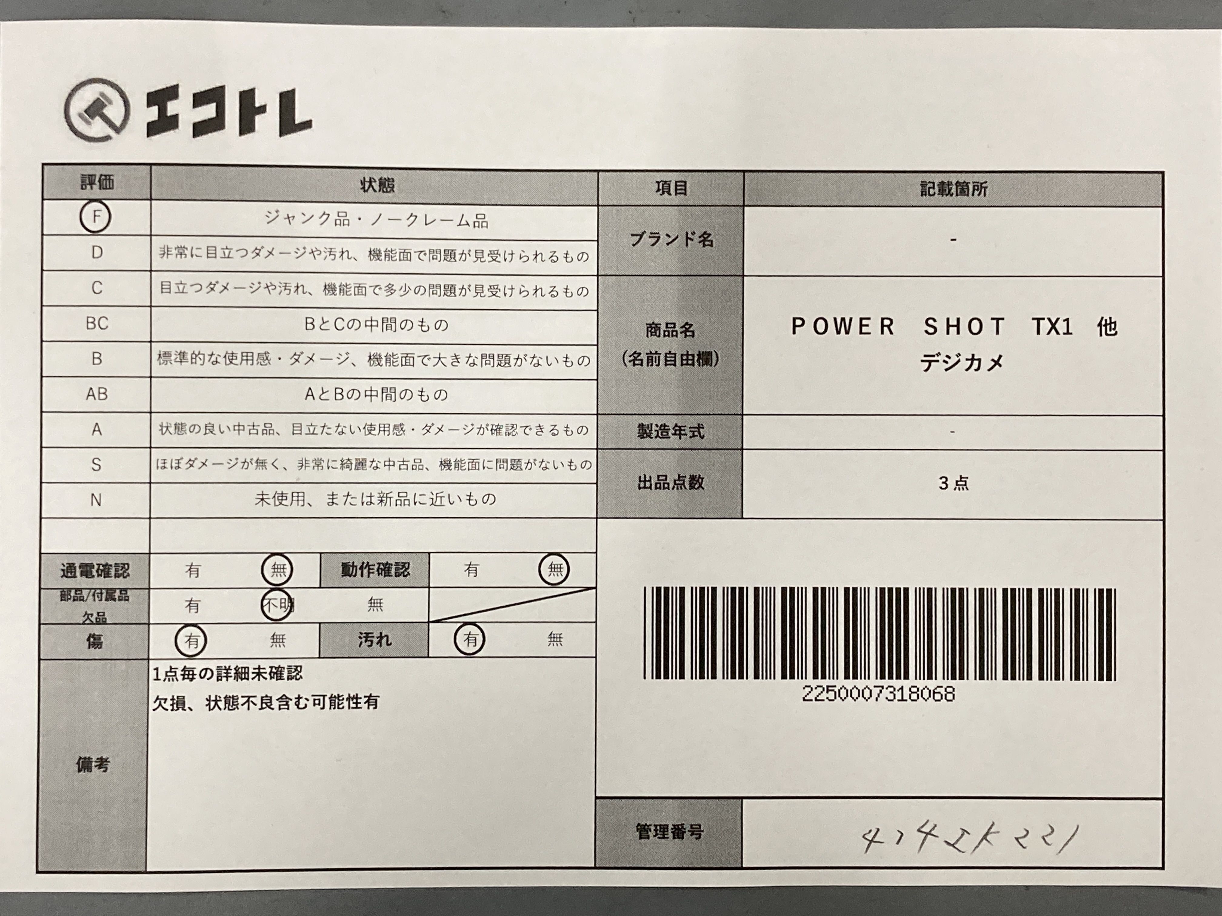 商品内容によって、JITBOXなどでの発送となる可能性がございます事ご理解下さい。年式などの商品情報詳細は写真にてご確認願います。※ご入札の際はご利用規約をよくお読みになってからのご参加お願いします。","タイプライン":"","カテゴリ":"カメラ","形状コード":"カメラ","付属品コード":"","シリアル・シール・型番":""