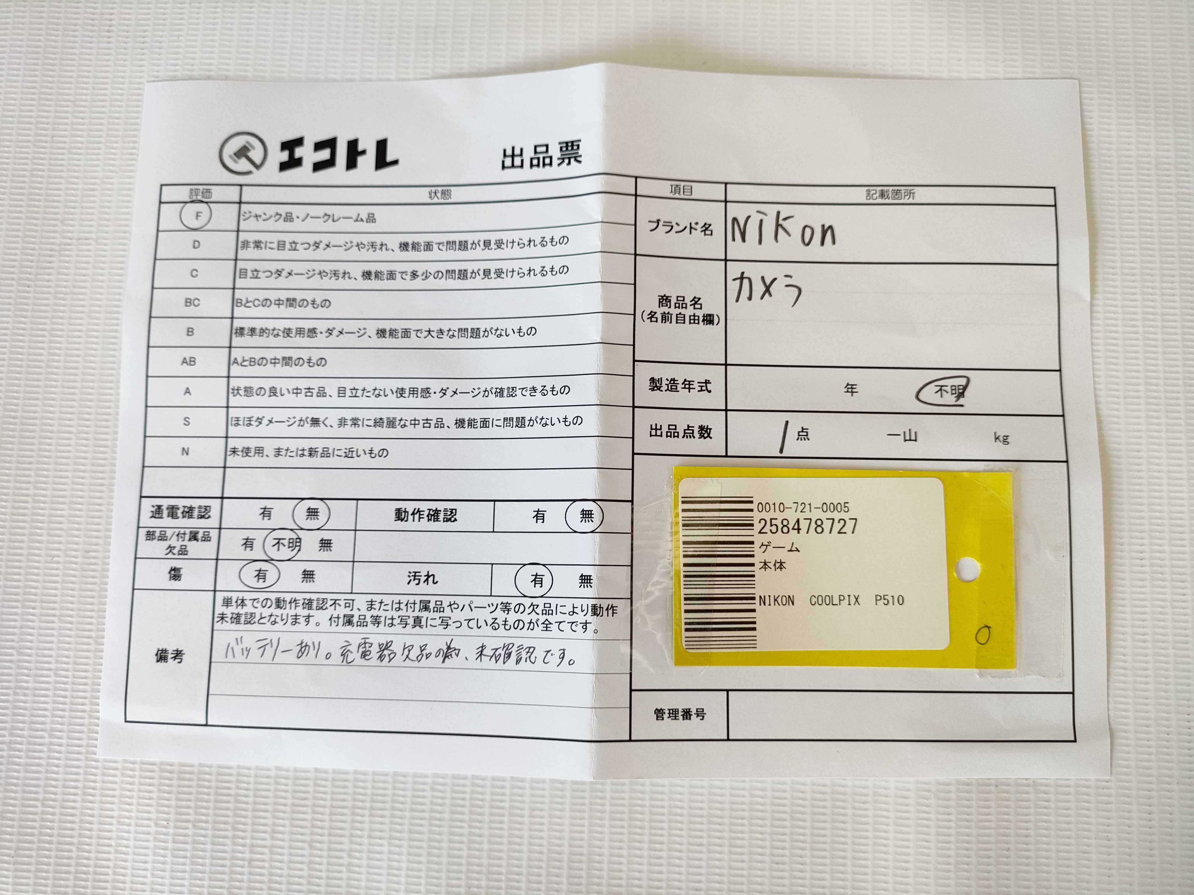 商品内容によって、JITBOXなどでの発送となる可能性がございます事ご理解下さい。年式などの商品情報詳細は写真にてご確認願います。※ご入札の際はご利用規約をよくお読みになってからのご参加お願いします。","タイプライン":"","カテゴリ":"カメラ","形状コード":"カメラ","付属品コード":"","シリアル・シール・型番":""