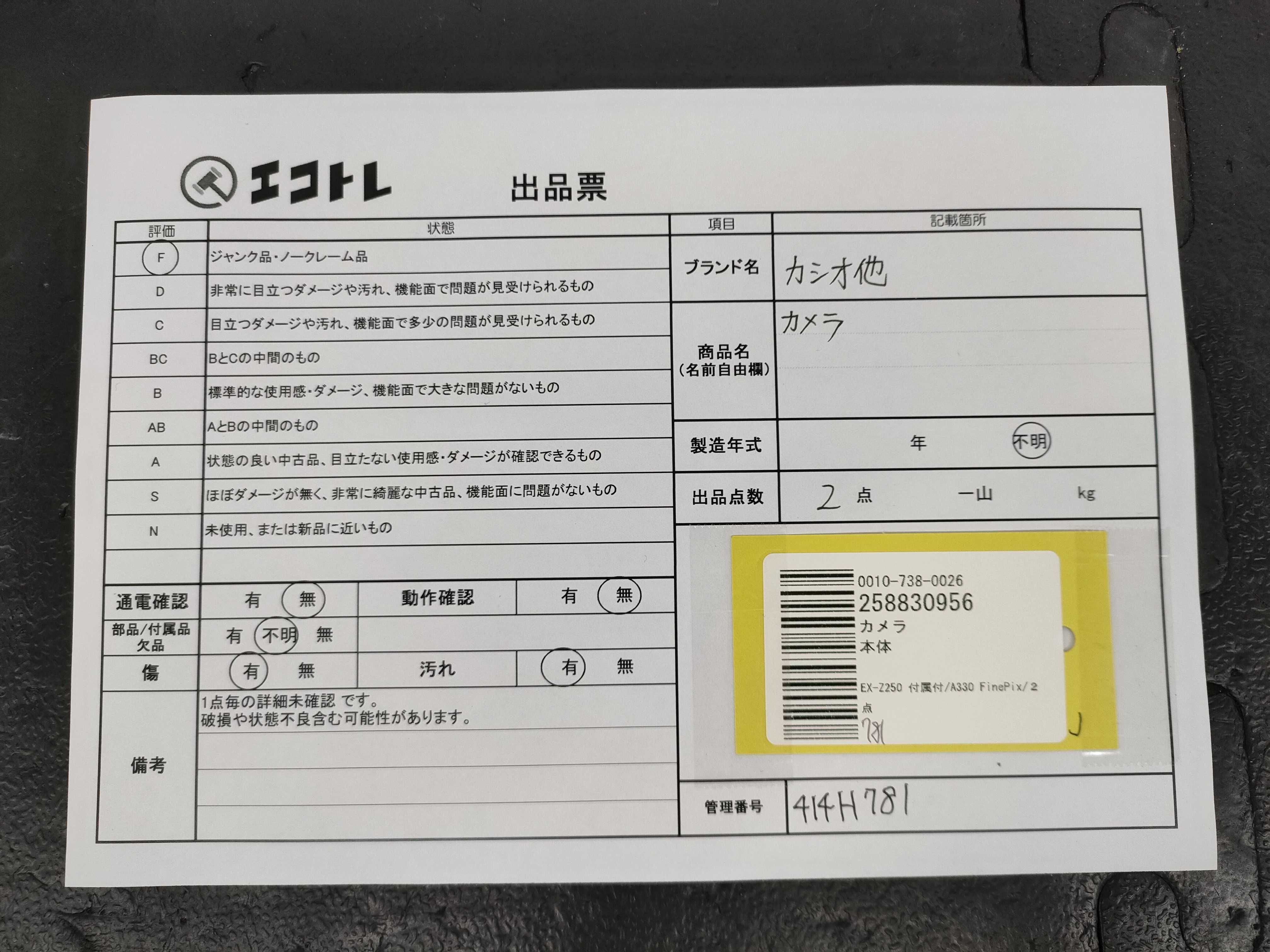 商品内容によって、JITBOXなどでの発送となる可能性がございます事ご理解下さい。年式などの商品情報詳細は写真にてご確認願います。※ご入札の際はご利用規約をよくお読みになってからのご参加お願いします。","タイプライン":"","カテゴリ":"カメラ","形状コード":"カメラ","付属品コード":"","シリアル・シール・型番":""