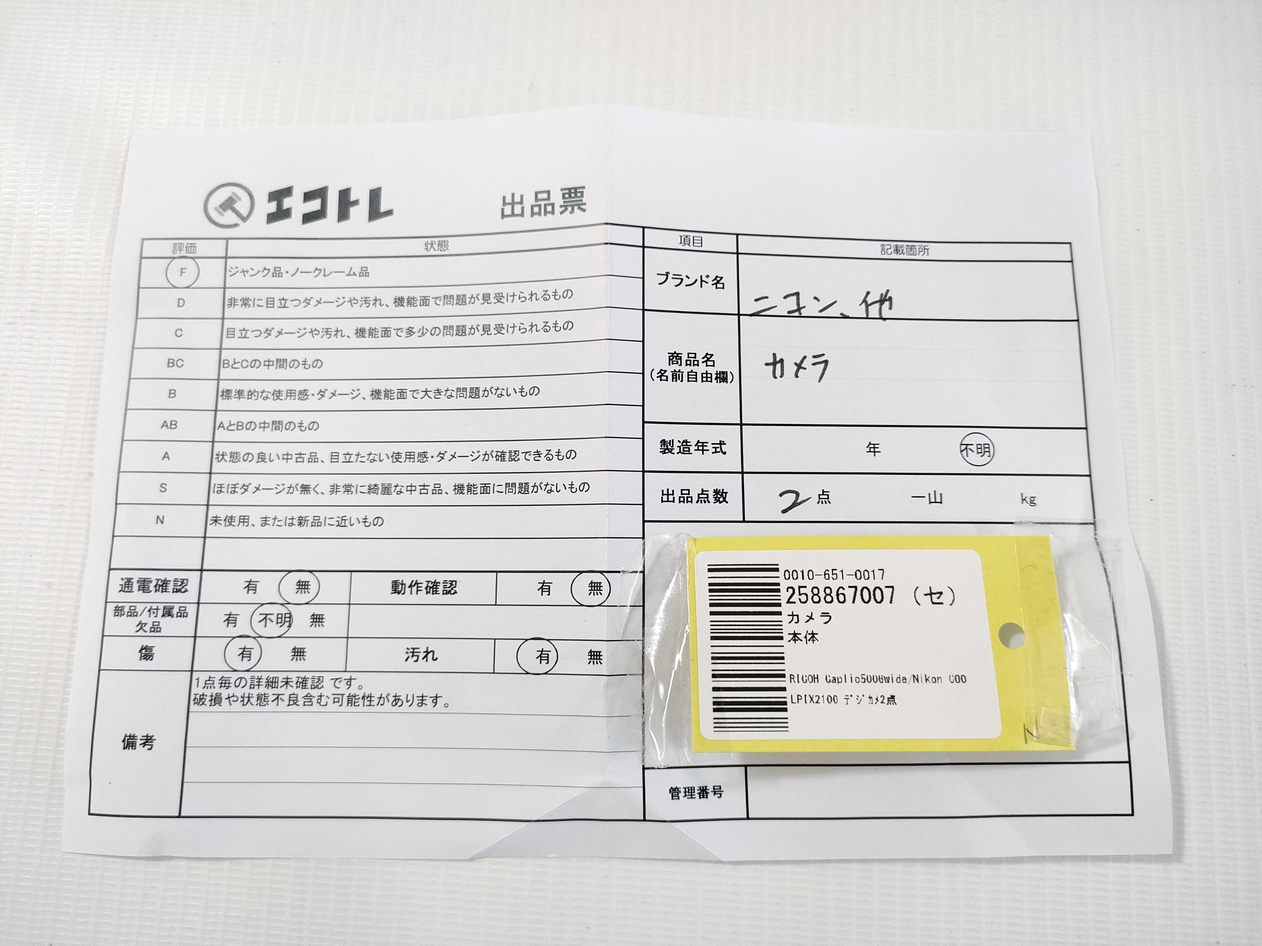 商品内容によって、JITBOXなどでの発送となる可能性がございます事ご理解下さい。年式などの商品情報詳細は写真にてご確認願います。※ご入札の際はご利用規約をよくお読みになってからのご参加お願いします。","タイプライン":"","カテゴリ":"カメラ","形状コード":"カメラ","付属品コード":"","シリアル・シール・型番":""