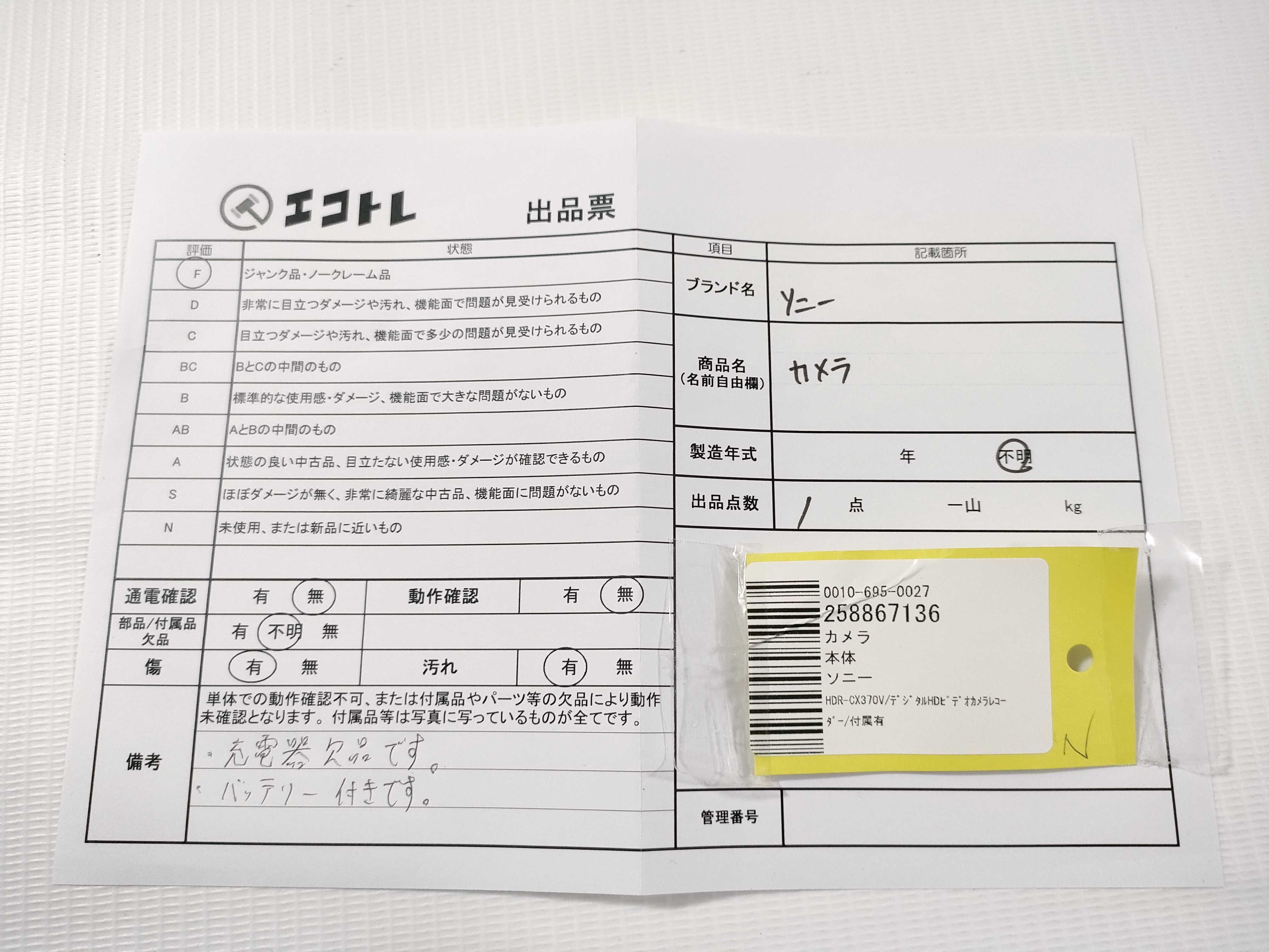 商品内容によって、JITBOXなどでの発送となる可能性がございます事ご理解下さい。年式などの商品情報詳細は写真にてご確認願います。※ご入札の際はご利用規約をよくお読みになってからのご参加お願いします。","タイプライン":"","カテゴリ":"カメラ","形状コード":"カメラ","付属品コード":"","シリアル・シール・型番":""