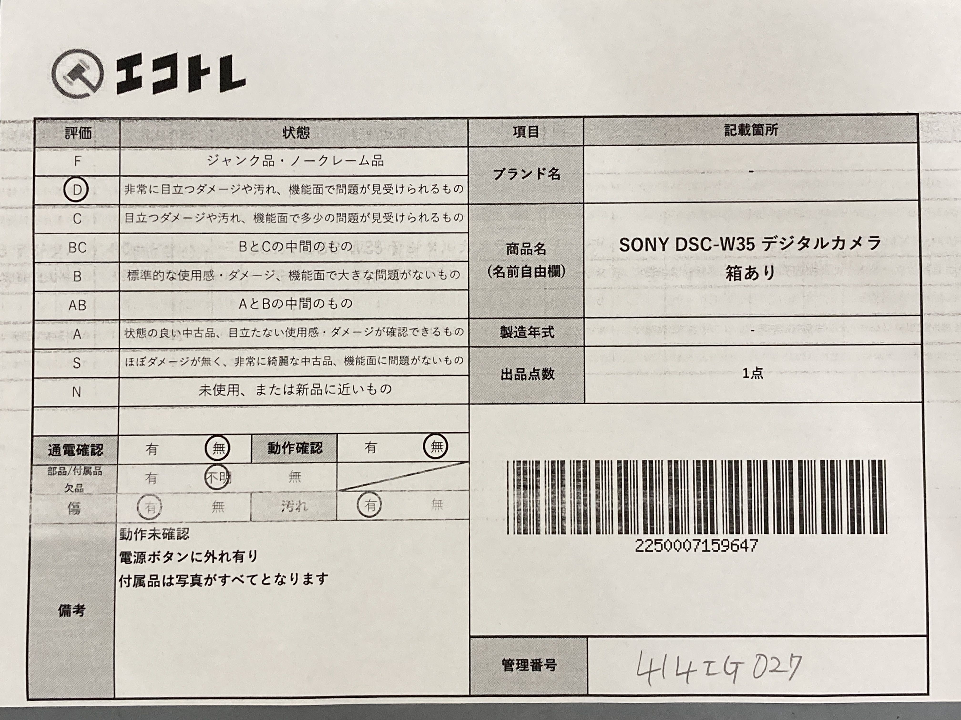 商品内容によって、JITBOXなどでの発送となる可能性がございます事ご理解下さい。年式などの商品情報詳細は写真にてご確認願います。※ご入札の際はご利用規約をよくお読みになってからのご参加お願いします。","タイプライン":"","カテゴリ":"カメラ","形状コード":"カメラ","付属品コード":"","シリアル・シール・型番":""