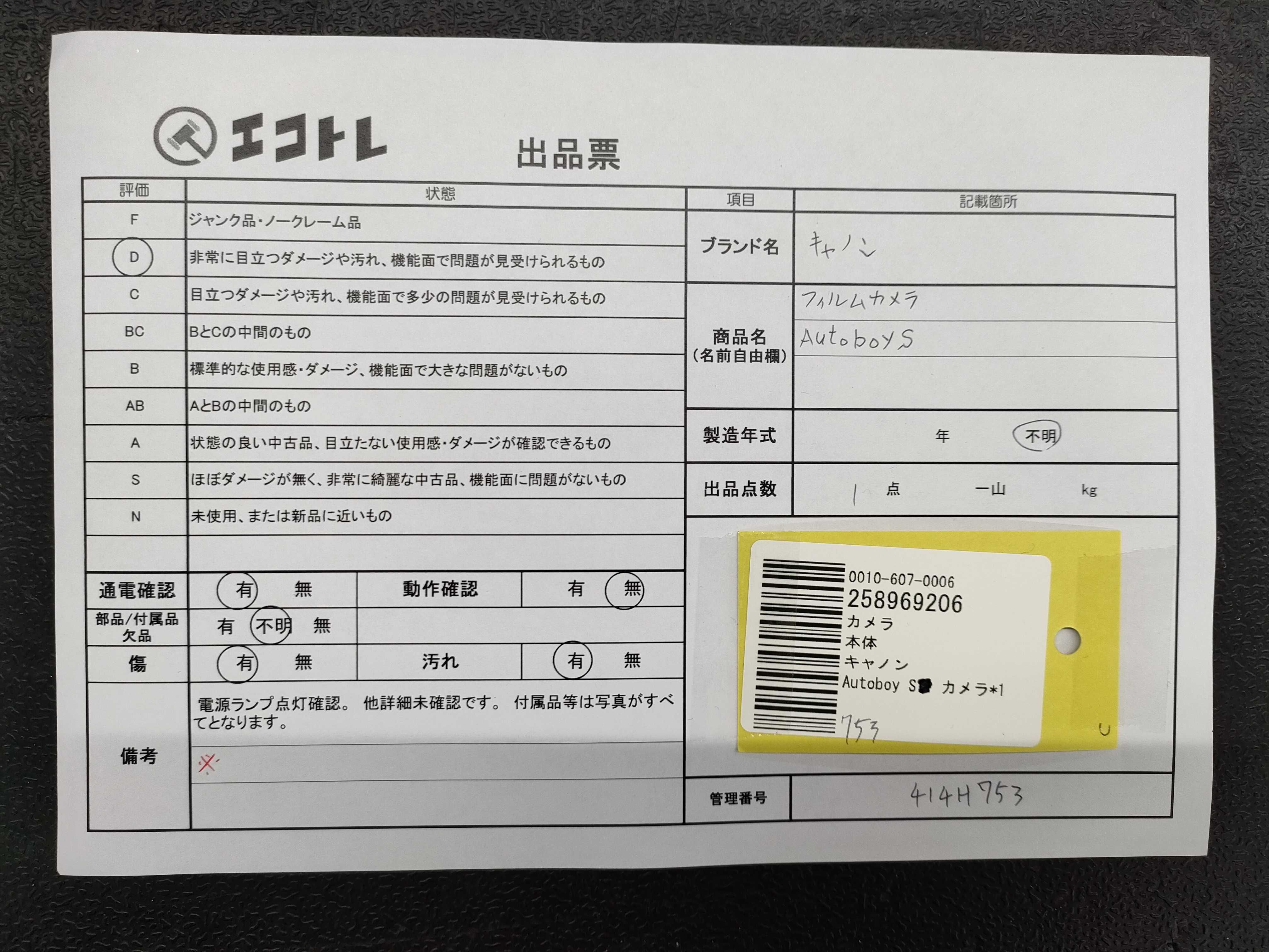 商品内容によって、JITBOXなどでの発送となる可能性がございます事ご理解下さい。年式などの商品情報詳細は写真にてご確認願います。※ご入札の際はご利用規約をよくお読みになってからのご参加お願いします。","タイプライン":"","カテゴリ":"カメラ","形状コード":"カメラ","付属品コード":"","シリアル・シール・型番":""