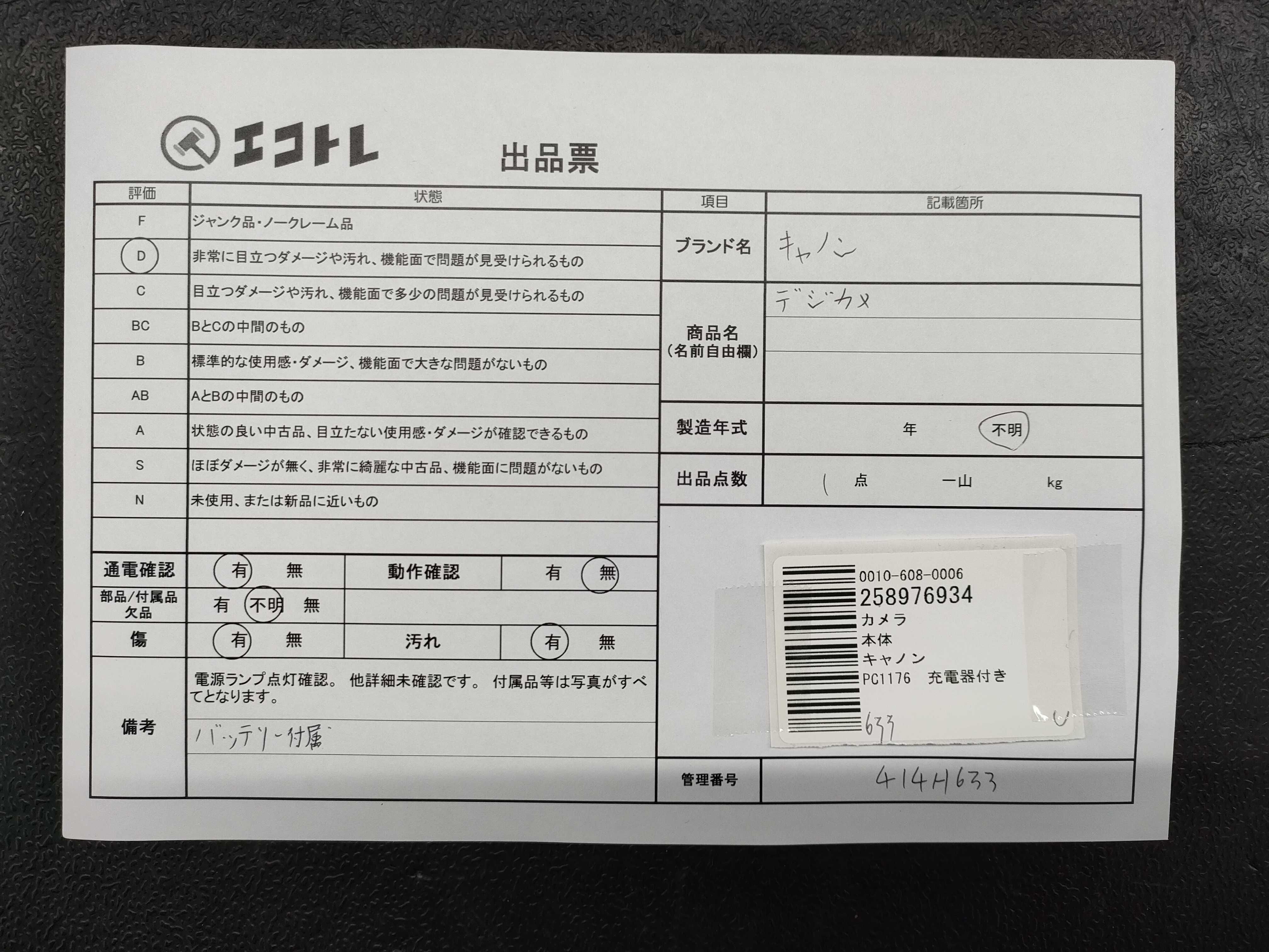 商品内容によって、JITBOXなどでの発送となる可能性がございます事ご理解下さい。年式などの商品情報詳細は写真にてご確認願います。※ご入札の際はご利用規約をよくお読みになってからのご参加お願いします。","タイプライン":"","カテゴリ":"カメラ","形状コード":"カメラ","付属品コード":"","シリアル・シール・型番":""
