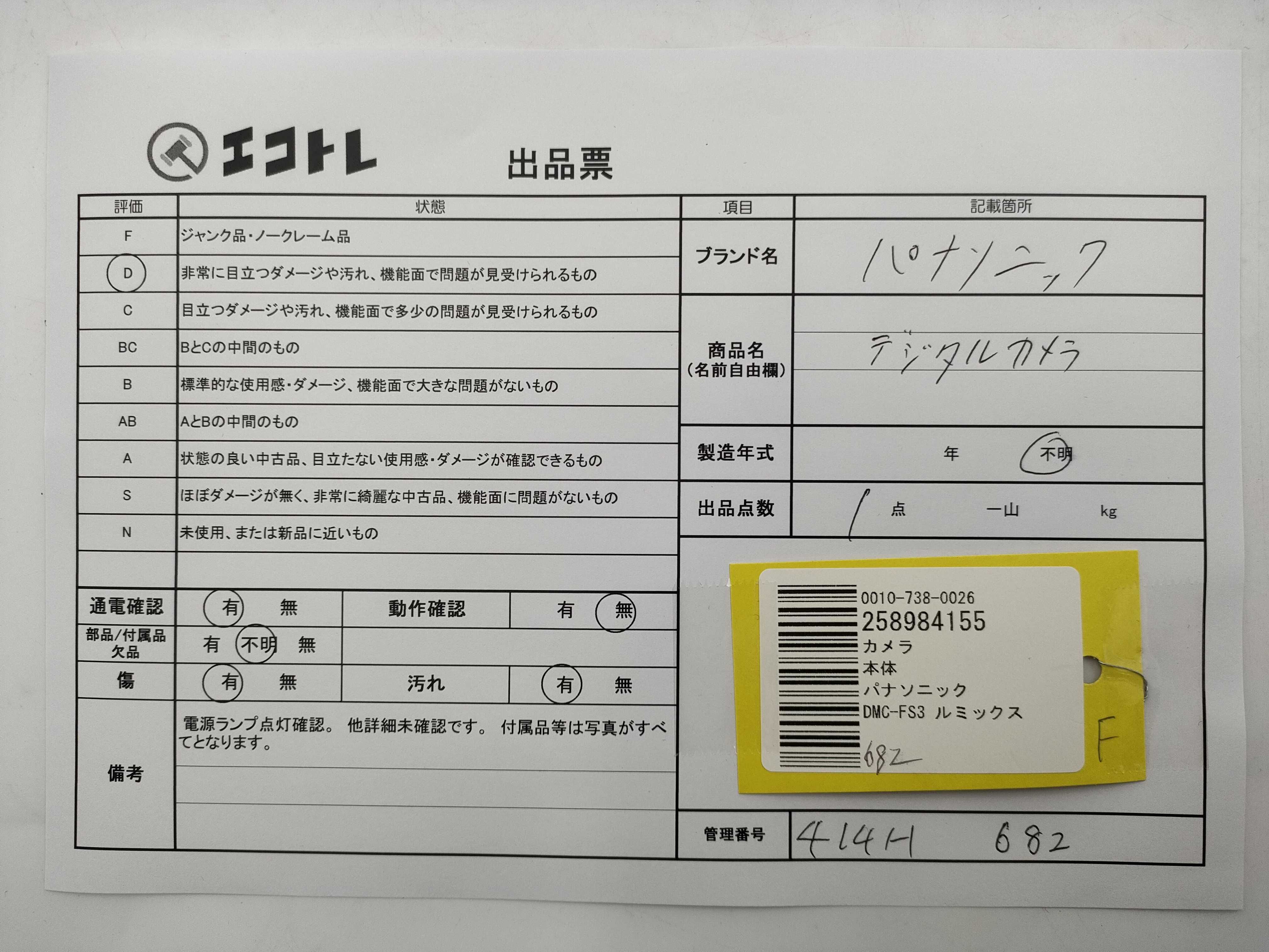 商品内容によって、JITBOXなどでの発送となる可能性がございます事ご理解下さい。年式などの商品情報詳細は写真にてご確認願います。※ご入札の際はご利用規約をよくお読みになってからのご参加お願いします。","タイプライン":"","カテゴリ":"カメラ","形状コード":"カメラ","付属品コード":"","シリアル・シール・型番":""