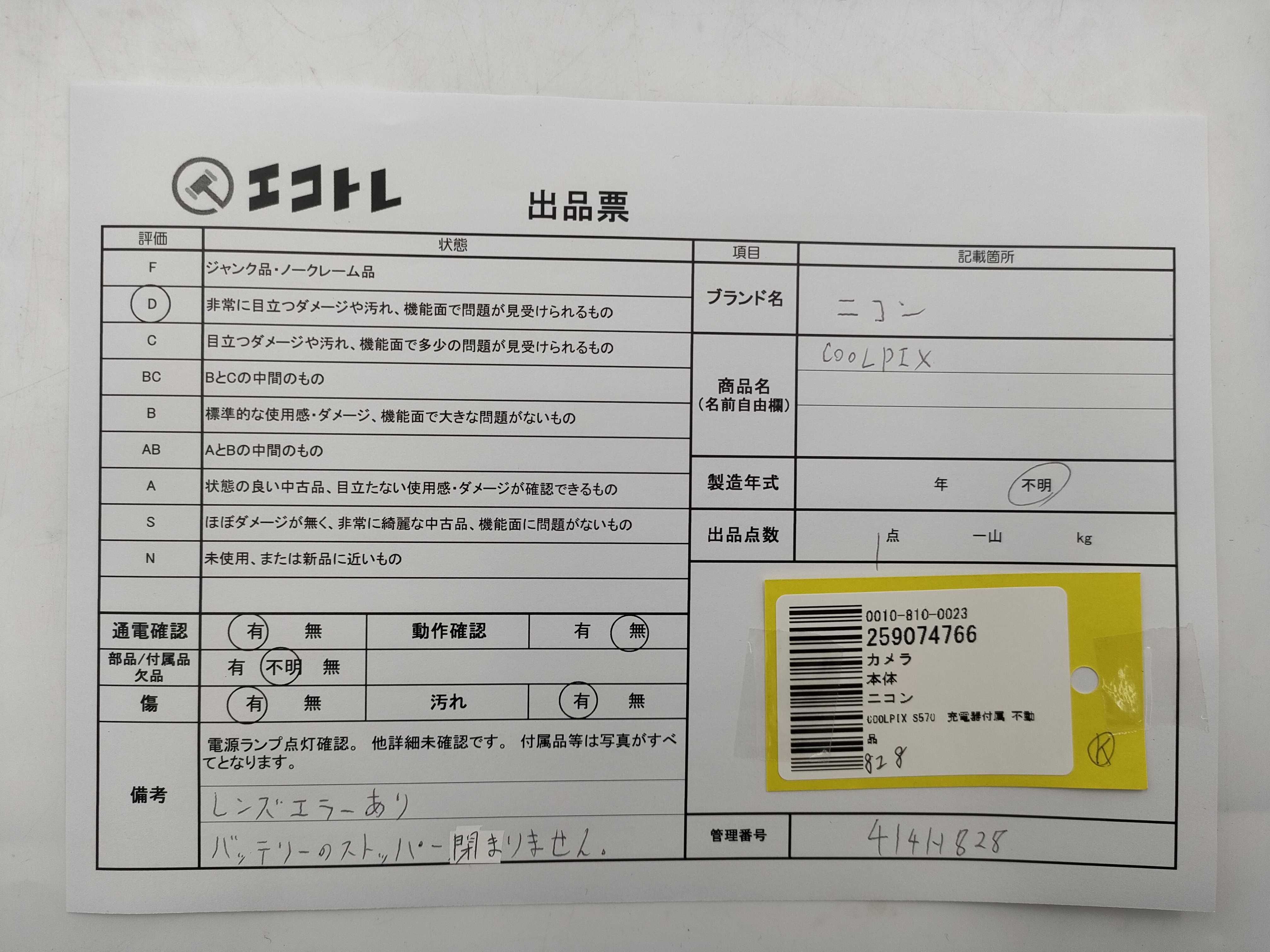 商品内容によって、JITBOXなどでの発送となる可能性がございます事ご理解下さい。年式などの商品情報詳細は写真にてご確認願います。※ご入札の際はご利用規約をよくお読みになってからのご参加お願いします。","タイプライン":"","カテゴリ":"カメラ","形状コード":"カメラ","付属品コード":"","シリアル・シール・型番":""