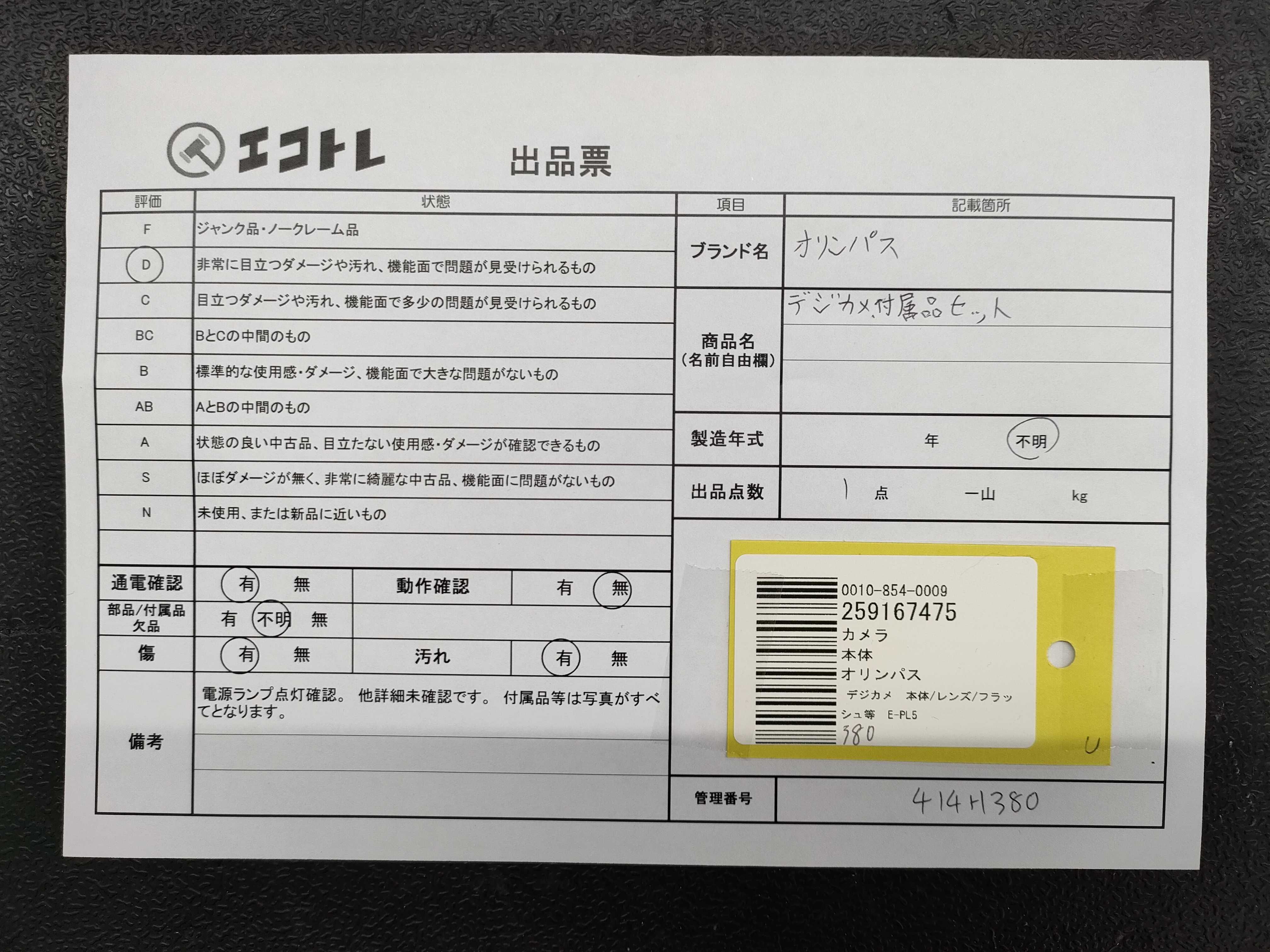 商品内容によって、JITBOXなどでの発送となる可能性がございます事ご理解下さい。年式などの商品情報詳細は写真にてご確認願います。※ご入札の際はご利用規約をよくお読みになってからのご参加お願いします。","タイプライン":"","カテゴリ":"カメラ","形状コード":"カメラ","付属品コード":"","シリアル・シール・型番":""