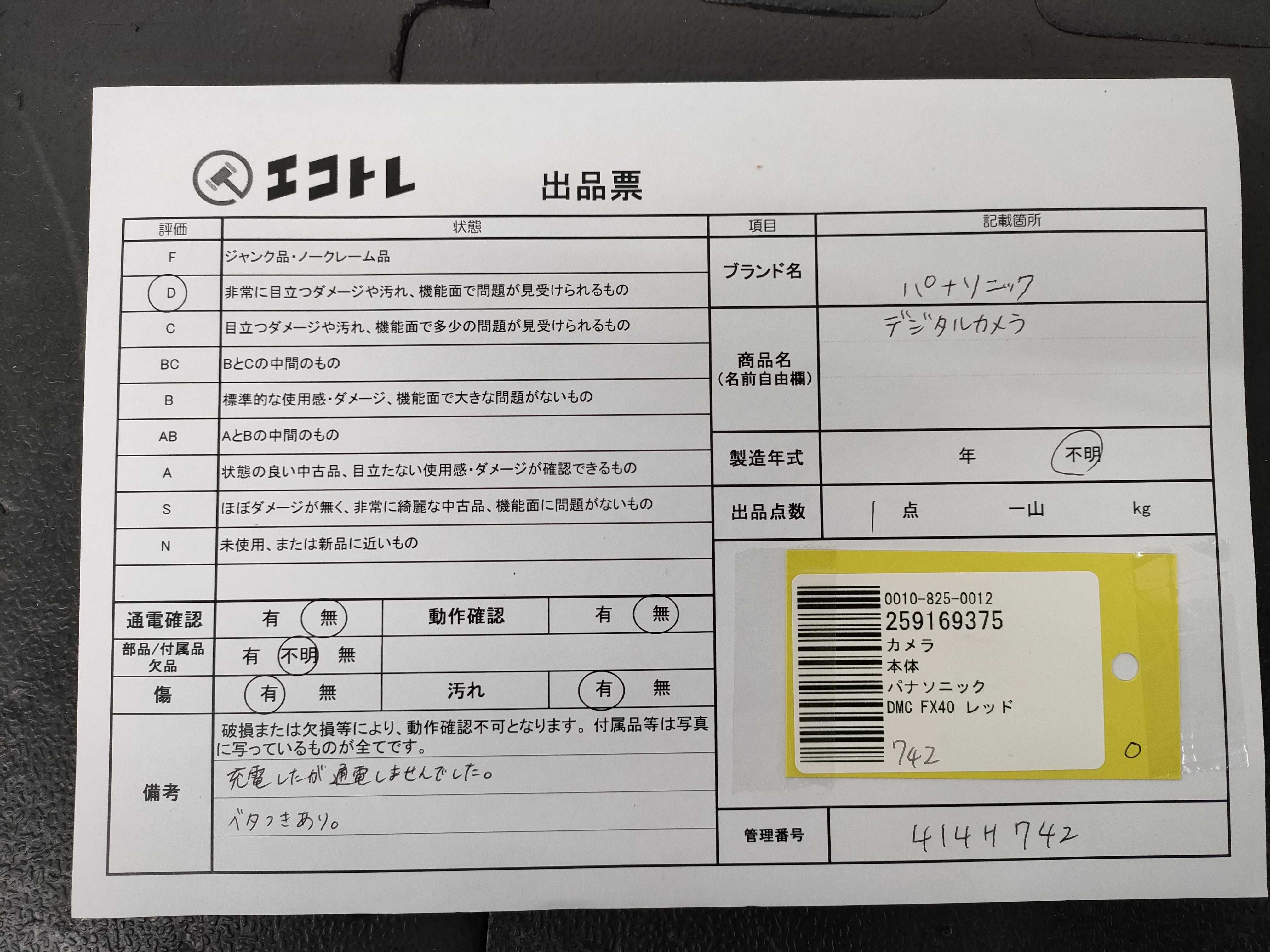 商品内容によって、JITBOXなどでの発送となる可能性がございます事ご理解下さい。年式などの商品情報詳細は写真にてご確認願います。※ご入札の際はご利用規約をよくお読みになってからのご参加お願いします。","タイプライン":"","カテゴリ":"カメラ","形状コード":"カメラ","付属品コード":"","シリアル・シール・型番":""