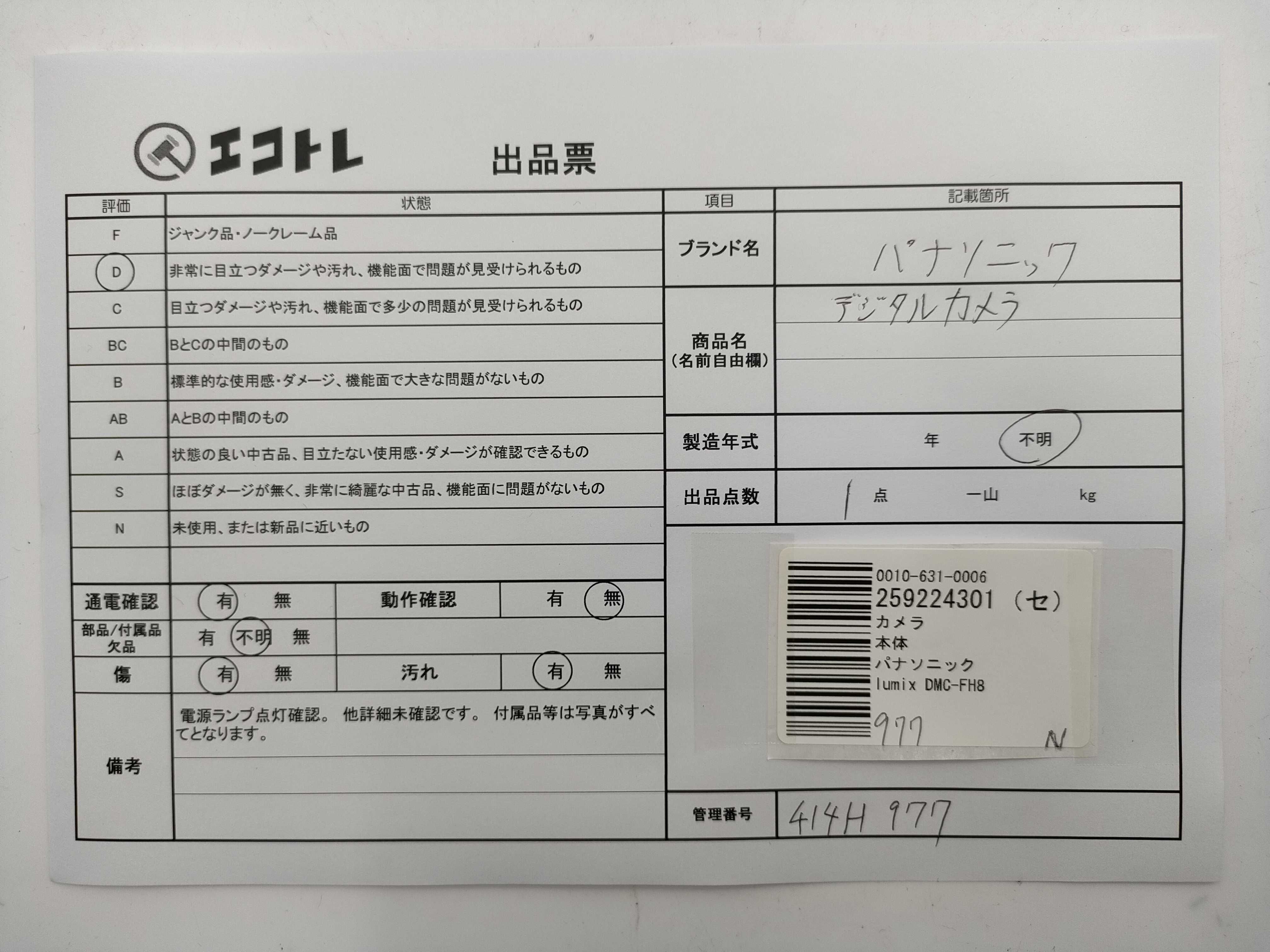 商品内容によって、JITBOXなどでの発送となる可能性がございます事ご理解下さい。年式などの商品情報詳細は写真にてご確認願います。※ご入札の際はご利用規約をよくお読みになってからのご参加お願いします。","タイプライン":"","カテゴリ":"カメラ","形状コード":"カメラ","付属品コード":"","シリアル・シール・型番":""