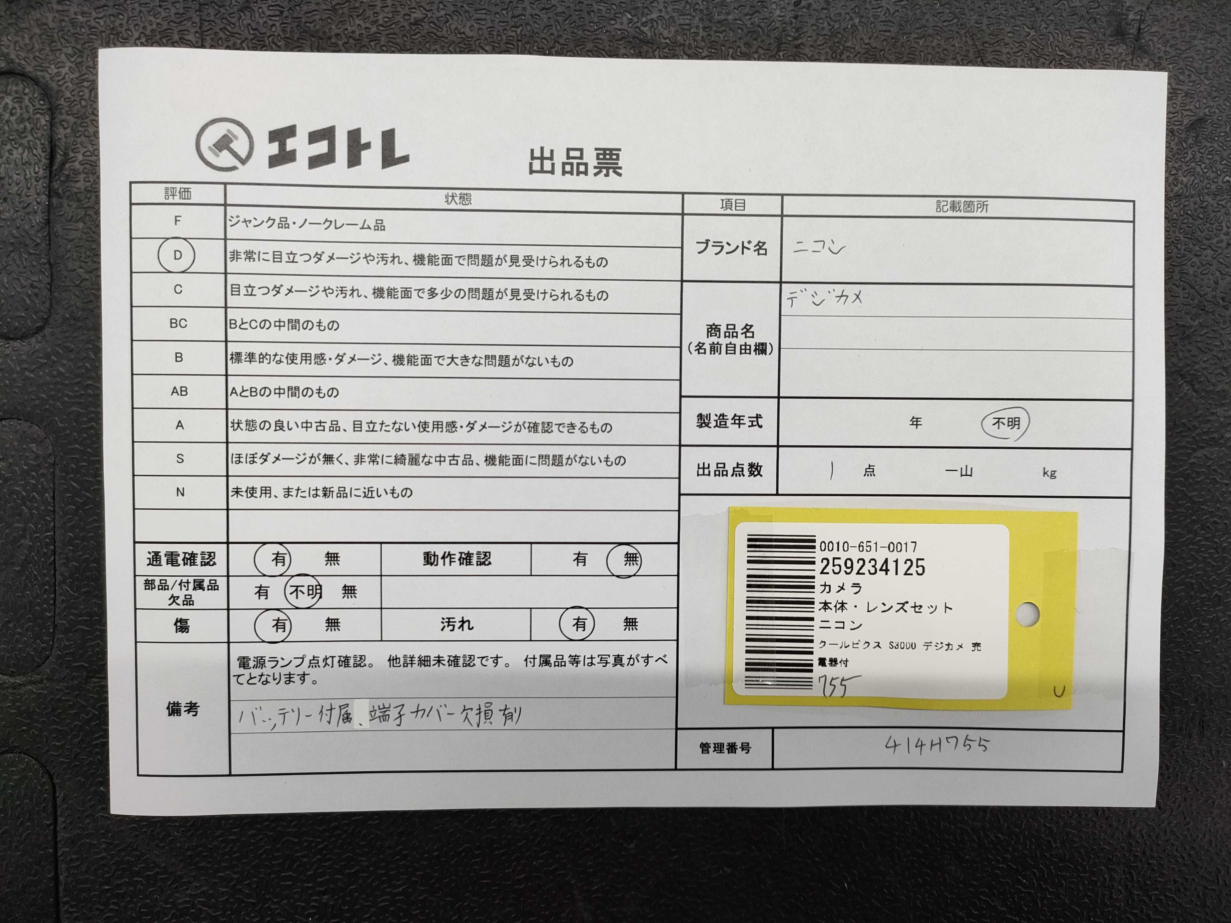 商品内容によって、JITBOXなどでの発送となる可能性がございます事ご理解下さい。年式などの商品情報詳細は写真にてご確認願います。※ご入札の際はご利用規約をよくお読みになってからのご参加お願いします。","タイプライン":"","カテゴリ":"カメラ","形状コード":"カメラ","付属品コード":"","シリアル・シール・型番":""