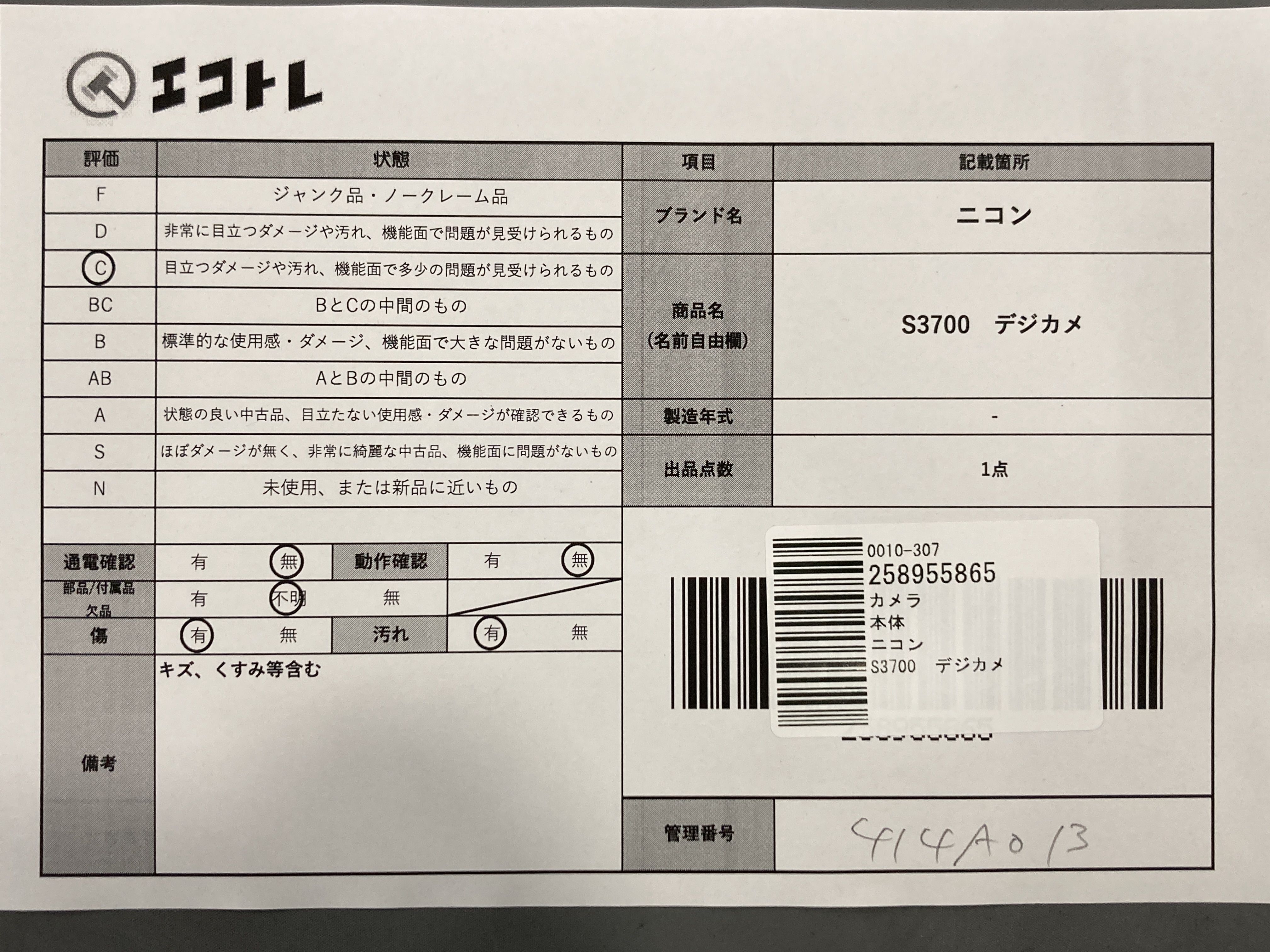 商品内容によって、JITBOXなどでの発送となる可能性がございます事ご理解下さい。年式などの商品情報詳細は写真にてご確認願います。※ご入札の際はご利用規約をよくお読みになってからのご参加お願いします。","タイプライン":"","カテゴリ":"カメラ","形状コード":"カメラ","付属品コード":"","シリアル・シール・型番":""